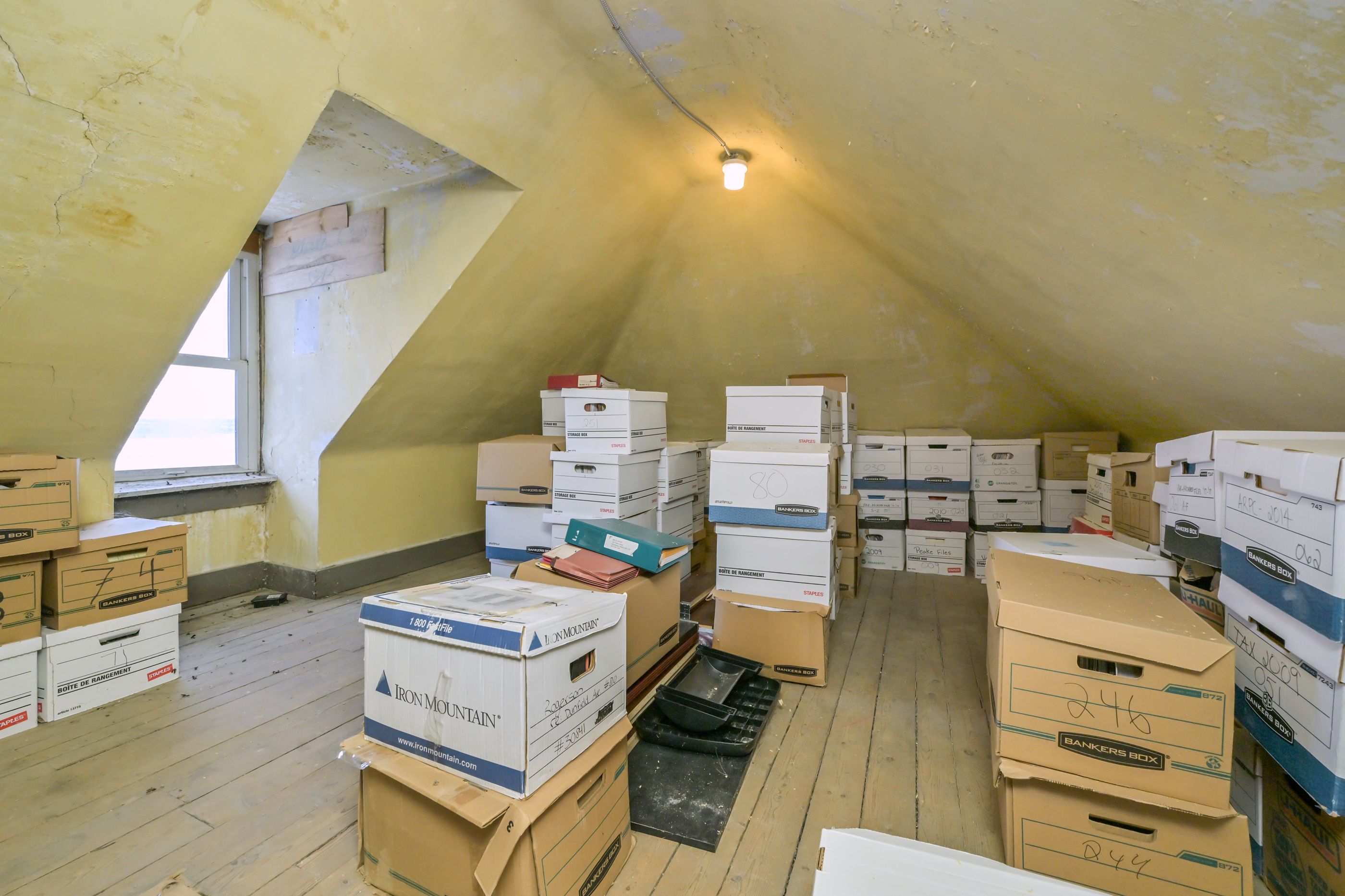 • Large attic space available for storage or potential finishing.