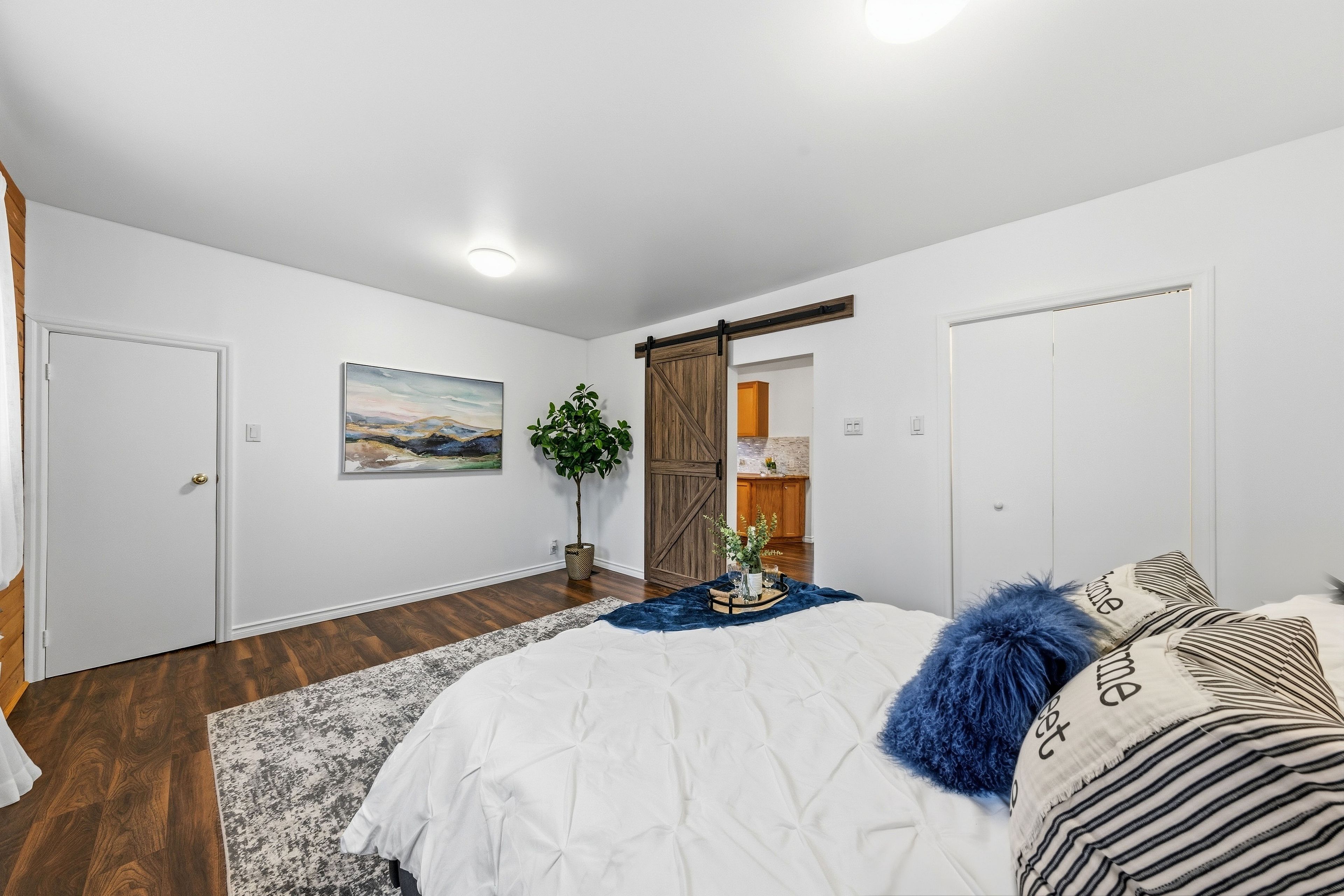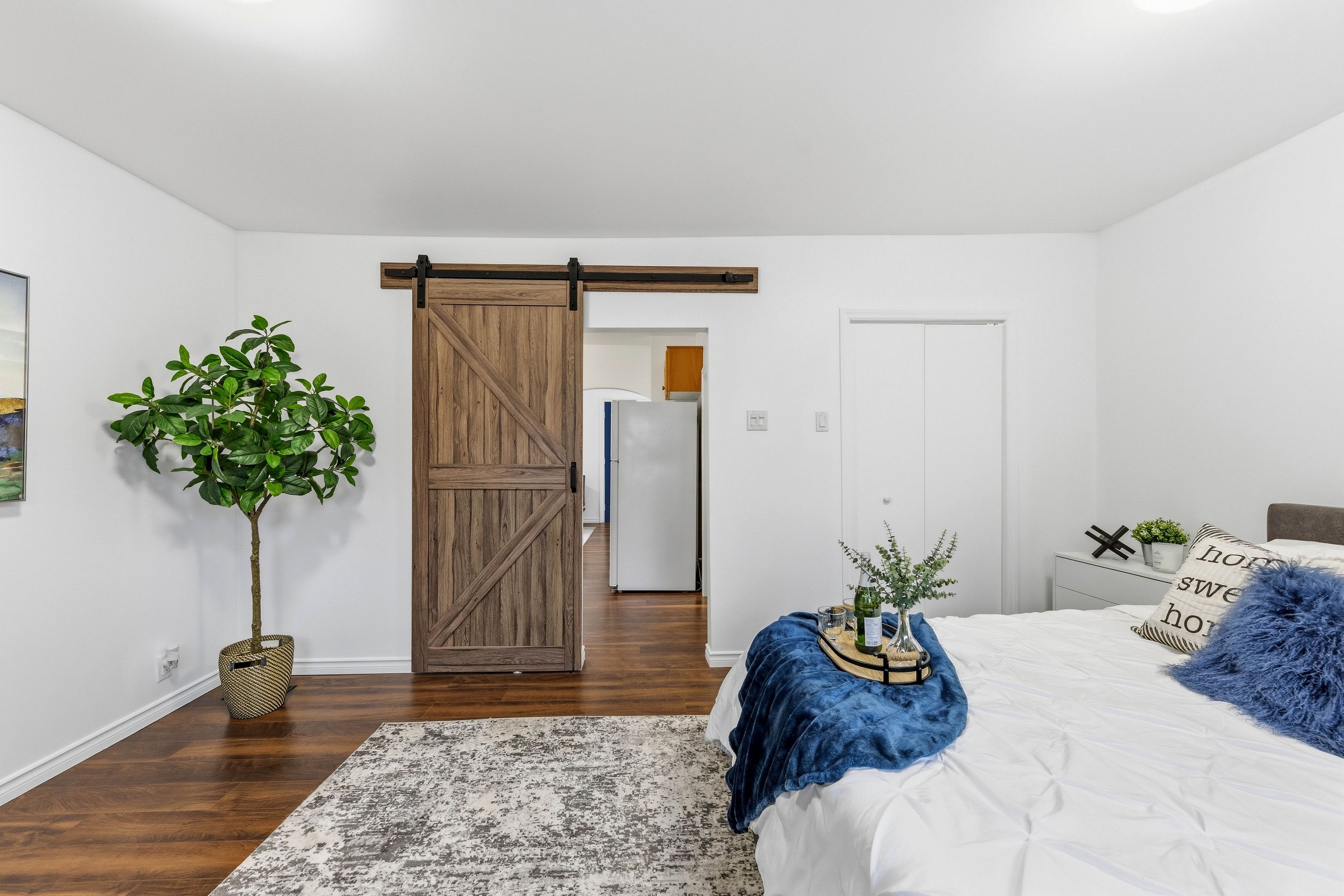 • Updated kitchen and comfortable primary bedroom with ample closet space.