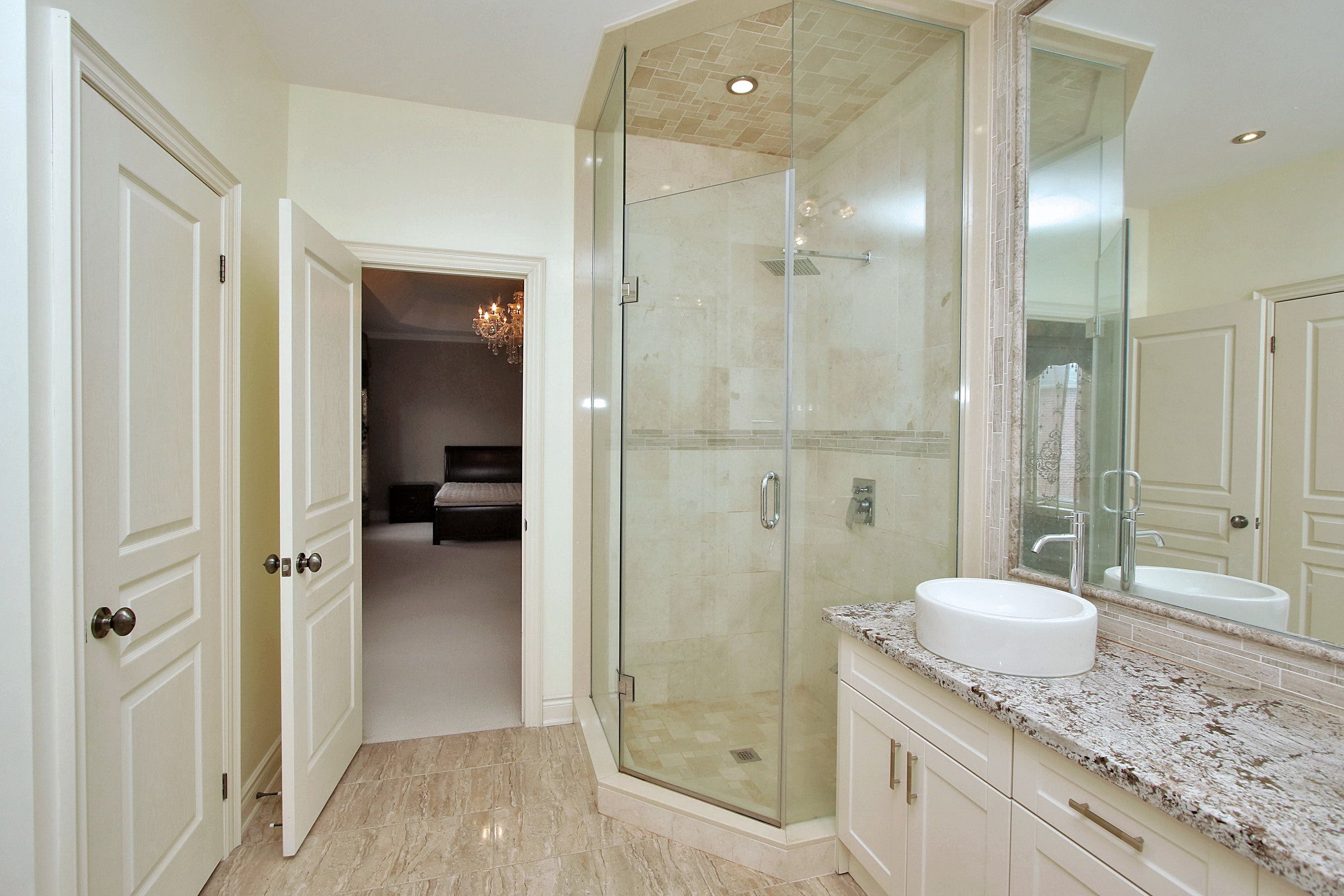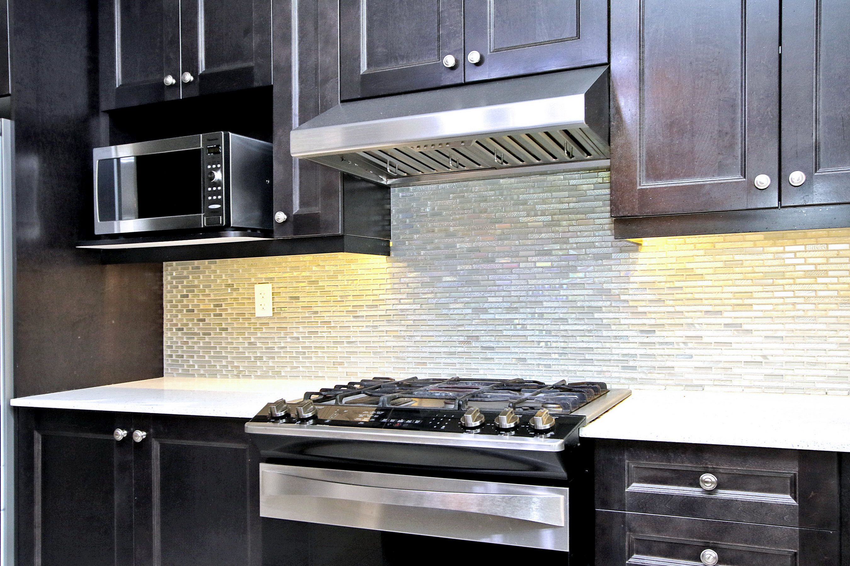 • Open concept kitchen with granite countertop and island for easy cooking.