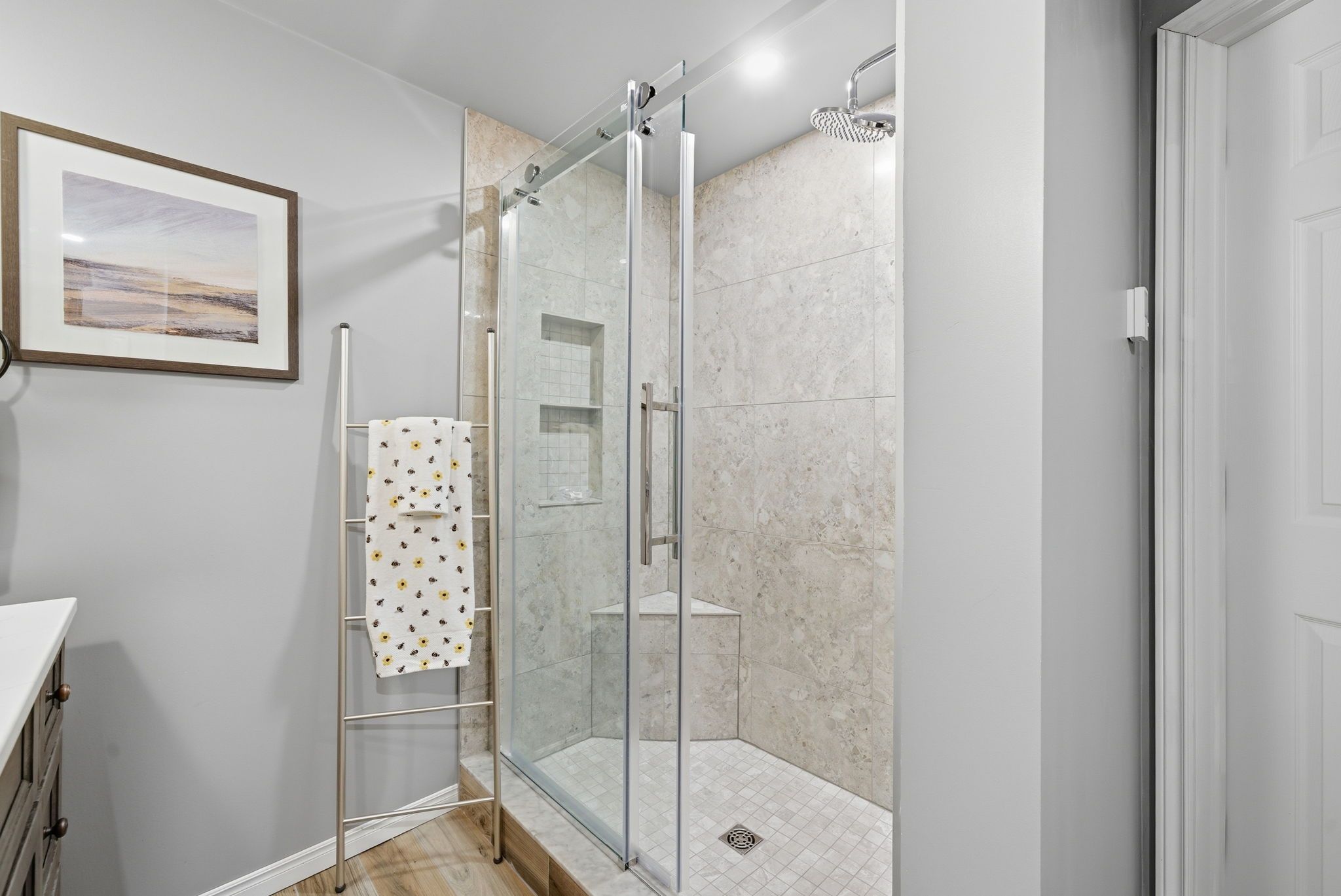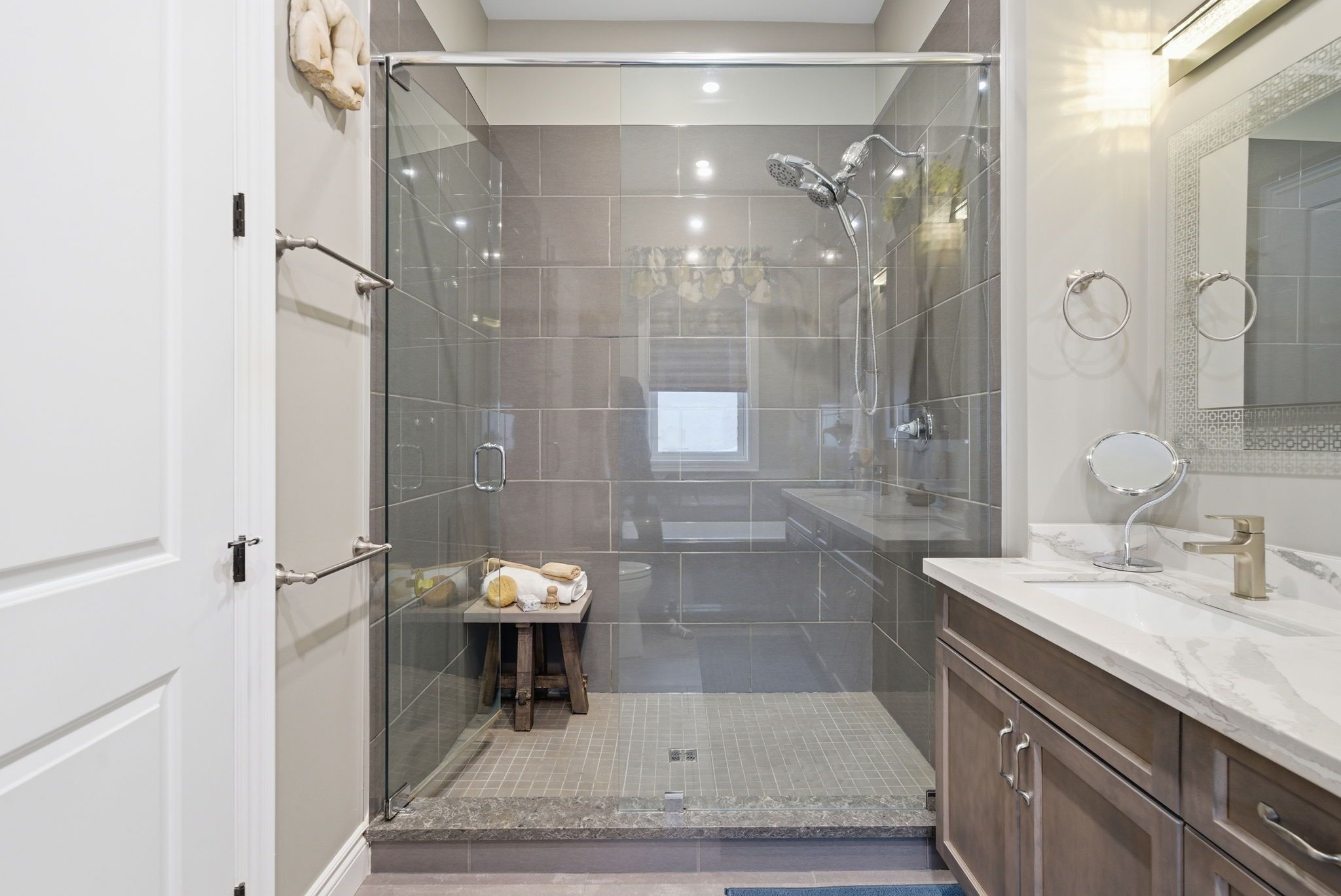 • Finished lower level includes extra living space, a second fireplace, and heated floors.