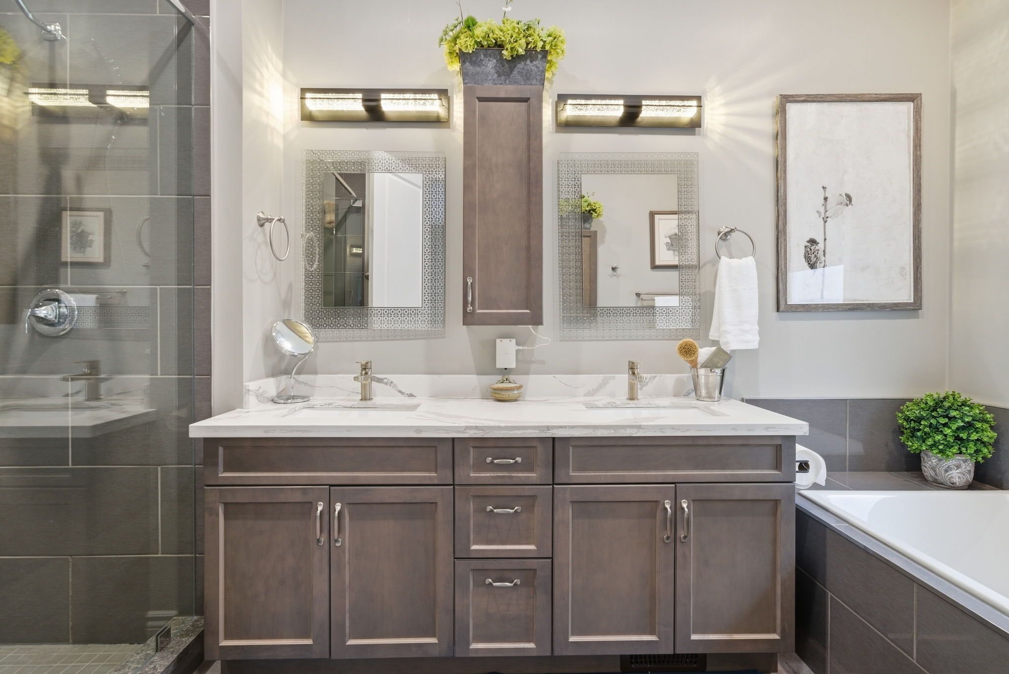 • Primary suite offers a spa-inspired ensuite with custom closets for relaxation.