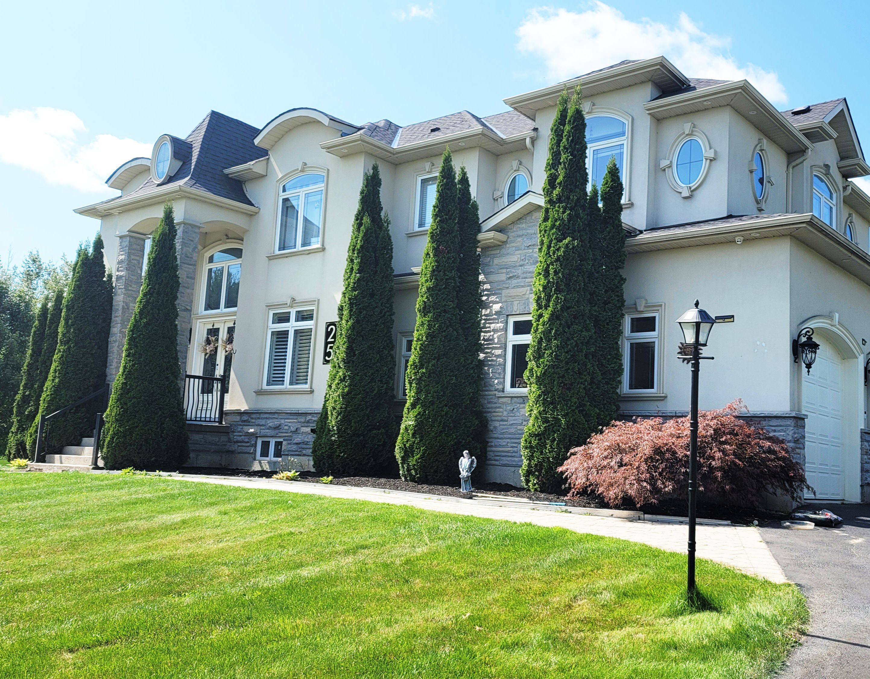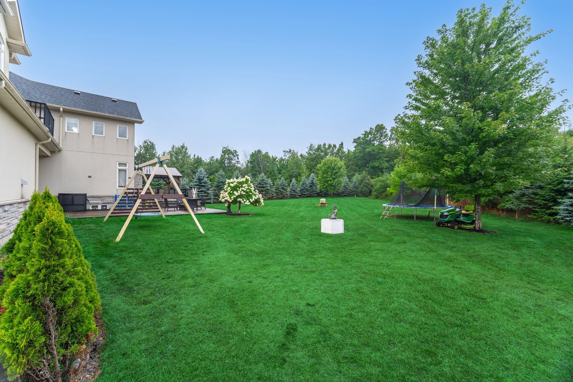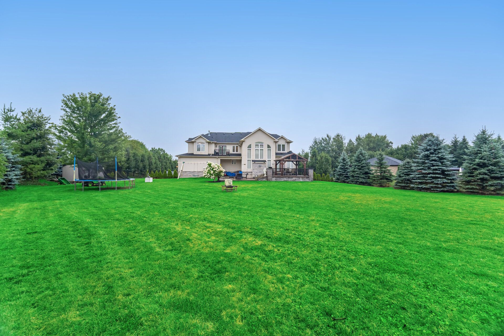 Set on just over 1. 3 acres in the prestigious estate subdivision of east garafraxa/orangeville, surrounded by luxury homes, this stunning 2-storey residence offers over 5,000 sq ft of finished living space to include a very spacious finished basement. Featuring 4+1 bedrooms and 4 1/2 bathrooms, this home boasts exceptional design and thoughtful upgrades throughout. Step into the impressive great room with soaring 17-foot coffered ceilings and expansive windows that fill the space with natural light. A spacious den provides a perfect home office or library. The chefs kitchen is a true showstopper, complete with upgraded stainless steel appliances (2022), a large center island, a servery, and a generous breakfast area with walkout access to the wrap-around patio ideal for entertaining. Upstairs, you'll find four spacious bedrooms, including a luxurious primary suite with private balcony access and spa-like ensuite. Three full bathrooms serve the upper level, ensuring comfort and convenience for the whole family. The spacious professionally finished basement includes a large recreation room, an additional bedroom space, and a full bathroom perfect for extended family, guests, or home gym/theatre use. Outdoors, enjoy a private, landscaped yard equipped with an in-ground sprinkler system, ample driveway parking, and a heated, insulated 3-car garage. Additional highlights include california shutters throughout and a new furnace and a/c (dec 2024). This meticulously maintained property showcases pride of ownership. Move in and enjoy luxury country living just minutes from orangeville.