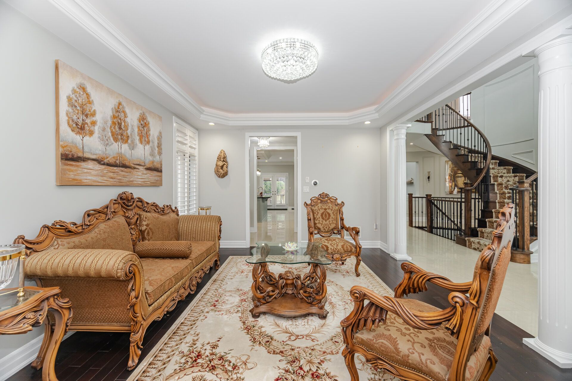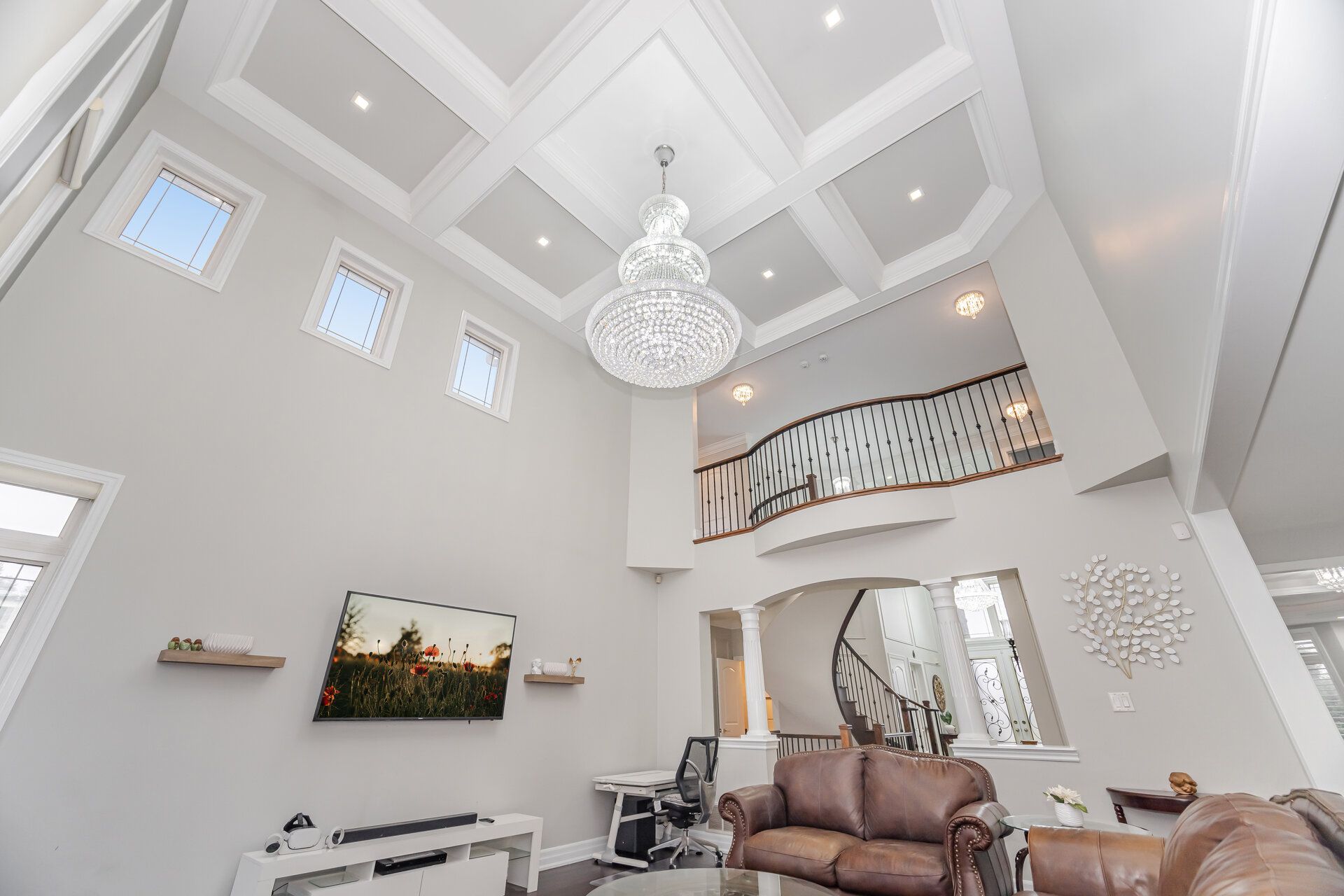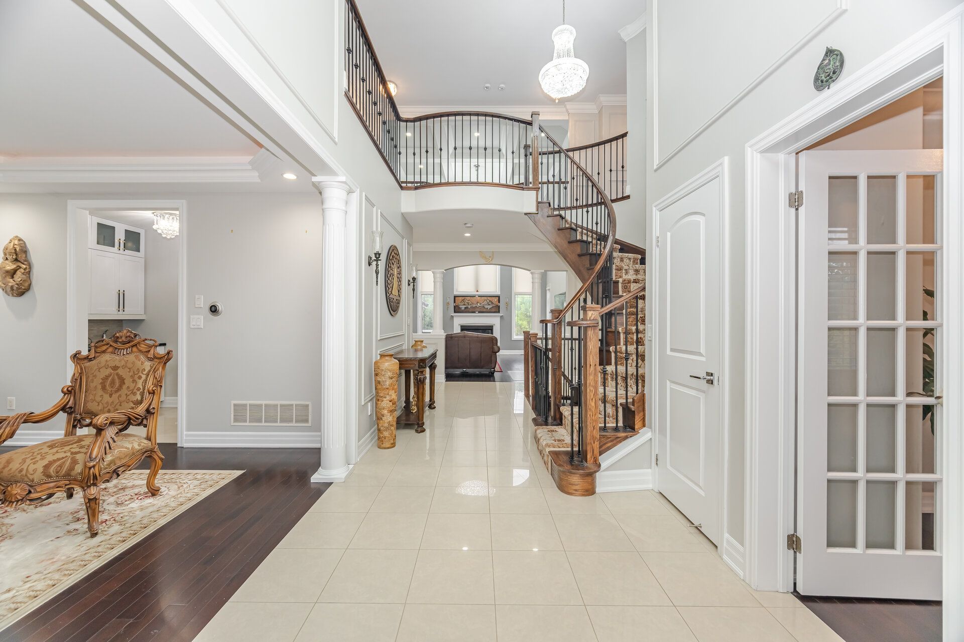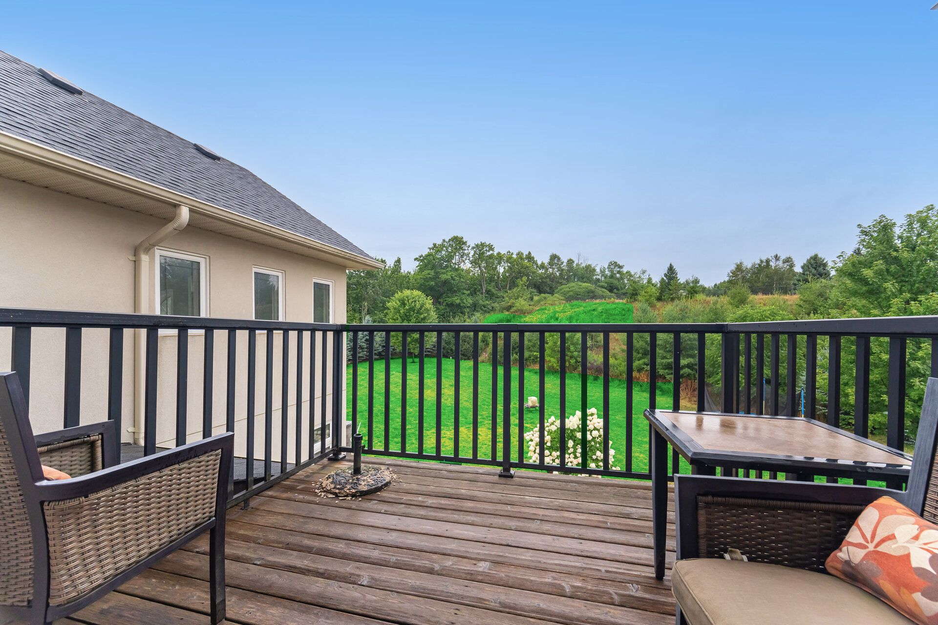 Set on just over 1. 3 acres in the prestigious estate subdivision of east garafraxa/orangeville, surrounded by luxury homes, this stunning 2-storey residence offers over 5,000 sq ft of finished living space to include a very spacious finished basement. Featuring 4+1 bedrooms and 4 1/2 bathrooms, this home boasts exceptional design and thoughtful upgrades throughout. Step into the impressive great room with soaring 17-foot coffered ceilings and expansive windows that fill the space with natural light. A spacious den provides a perfect home office or library. The chefs kitchen is a true showstopper, complete with upgraded stainless steel appliances (2022), a large center island, a servery, and a generous breakfast area with walkout access to the wrap-around patio ideal for entertaining. Upstairs, you'll find four spacious bedrooms, including a luxurious primary suite with private balcony access and spa-like ensuite. Three full bathrooms serve the upper level, ensuring comfort and convenience for the whole family. The spacious professionally finished basement includes a large recreation room, an additional bedroom space, and a full bathroom perfect for extended family, guests, or home gym/theatre use. Outdoors, enjoy a private, landscaped yard equipped with an in-ground sprinkler system, ample driveway parking, and a heated, insulated 3-car garage. Additional highlights include california shutters throughout and a new furnace and a/c (dec 2024). This meticulously maintained property showcases pride of ownership. Move in and enjoy luxury country living just minutes from orangeville.