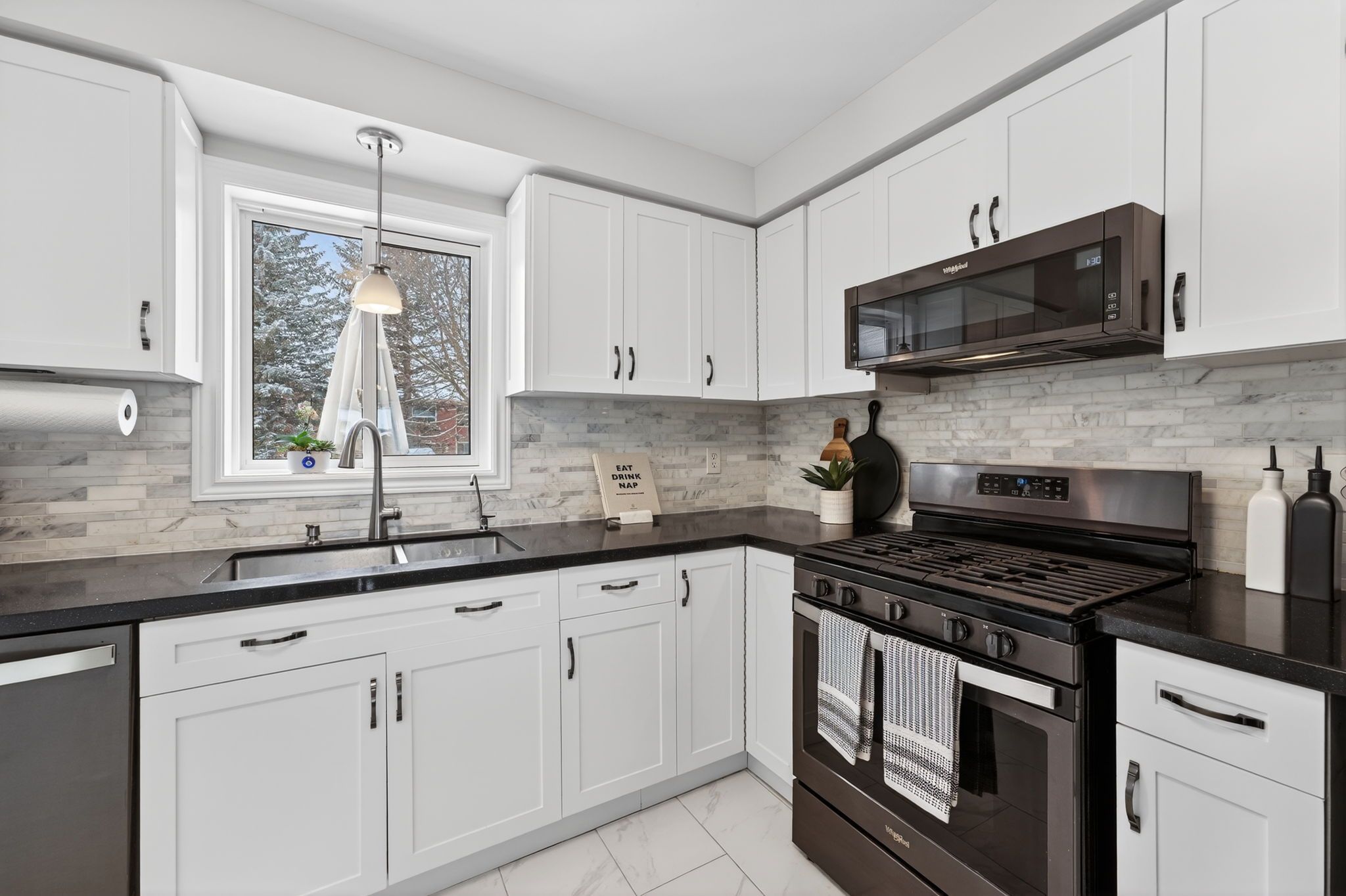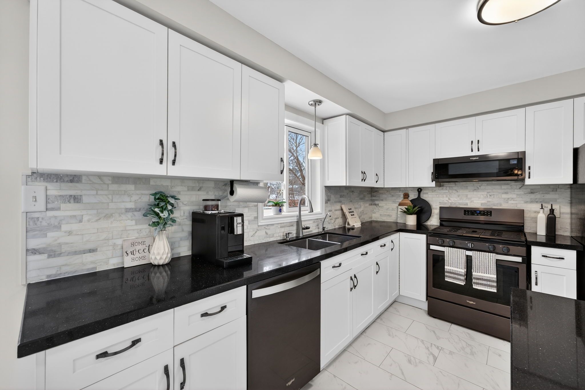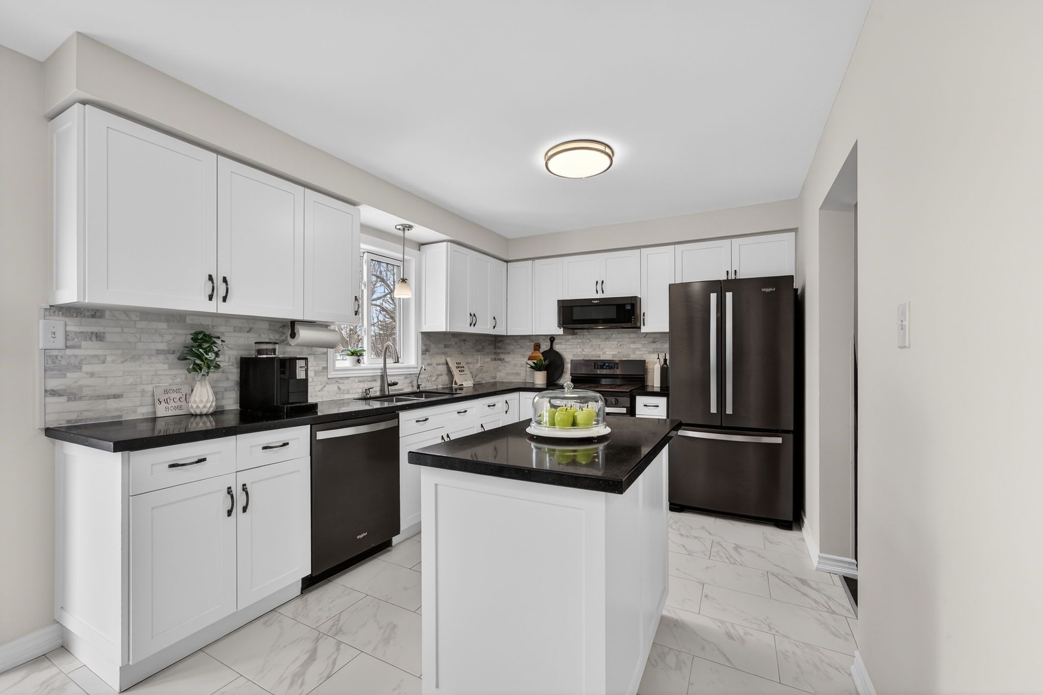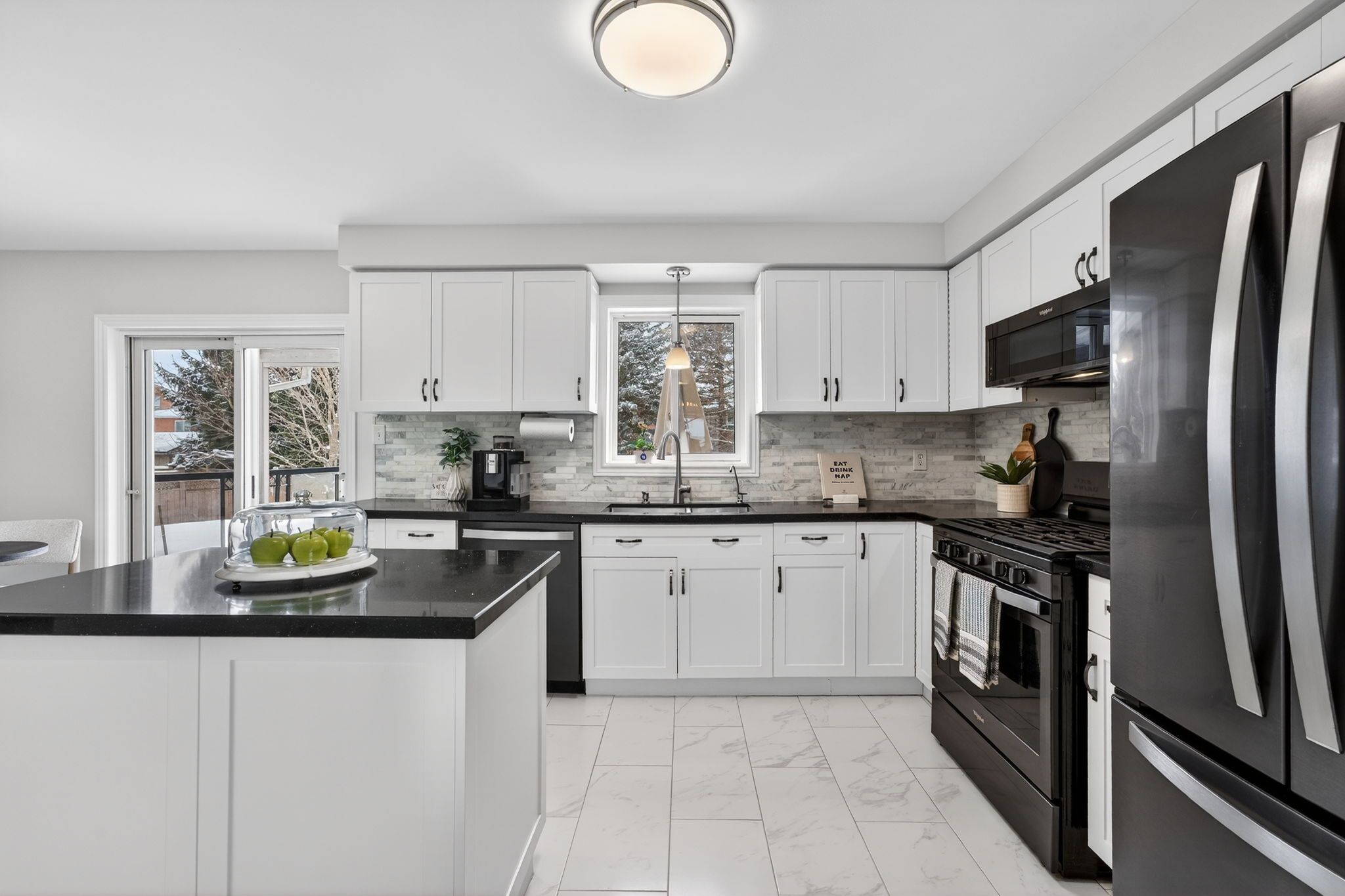 Welcome to this beautifully maintained 4-bedroom, 2-storey home, situated on a quiet cul-de-sac in a family friendly neighbourhood. This home features a 2-car garage with direct access and a very functional, well-laid-out floor plan. The main floor offers a formal living room and formal dining room, along with a bright eat-in kitchen featuring an island, stone countertops, and s/s appliances including a gas stove. The kitchen overlooks a large family room, creating a comfortable space for everyday living and entertaining. The upper level includes a spacious primary bedroom with a walk-in closet and a 3-piece ensuite with glass shower, along with well-sized secondary bedrooms. The finished basement provides additional living space with a large rec area, extra bedroom, and cold room, offering flexibility for guests, a home office, or family use. The kitchen walks out to a large rear deck with beautiful glass railings, overlooking a huge fully fenced backyard featuring a gas line for bbq and a hot tub, making it ideal for outdoor living and entertaining. Located close to schools, parks, and local amenities, this home is set in a quiet, established neighbourhood ideal for families.