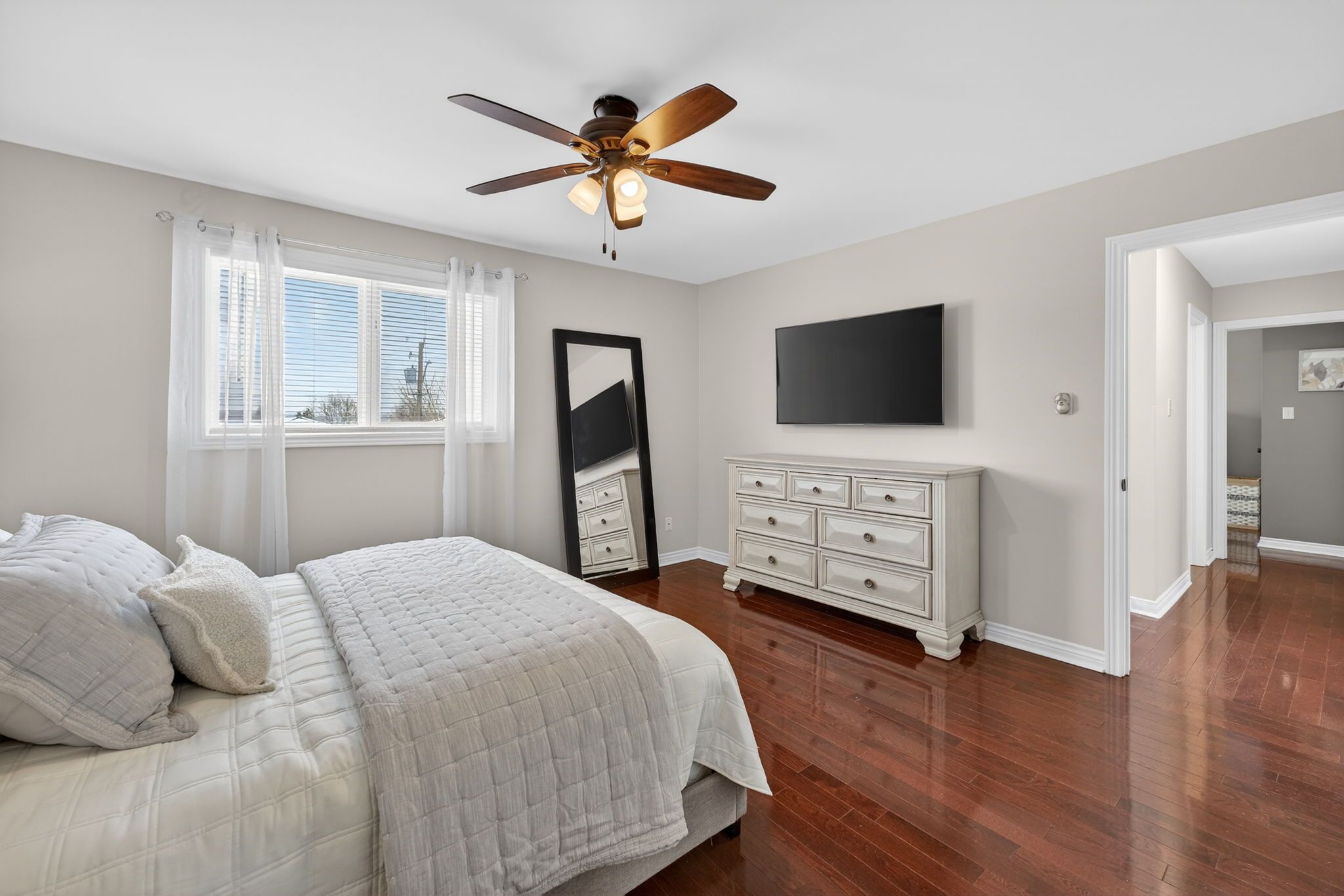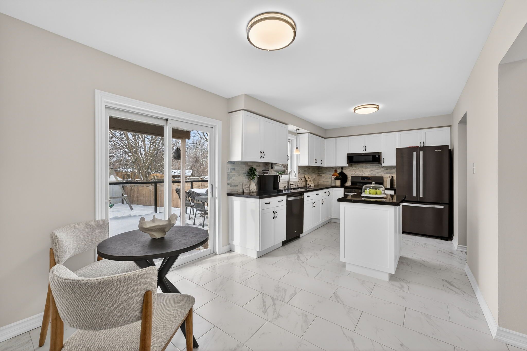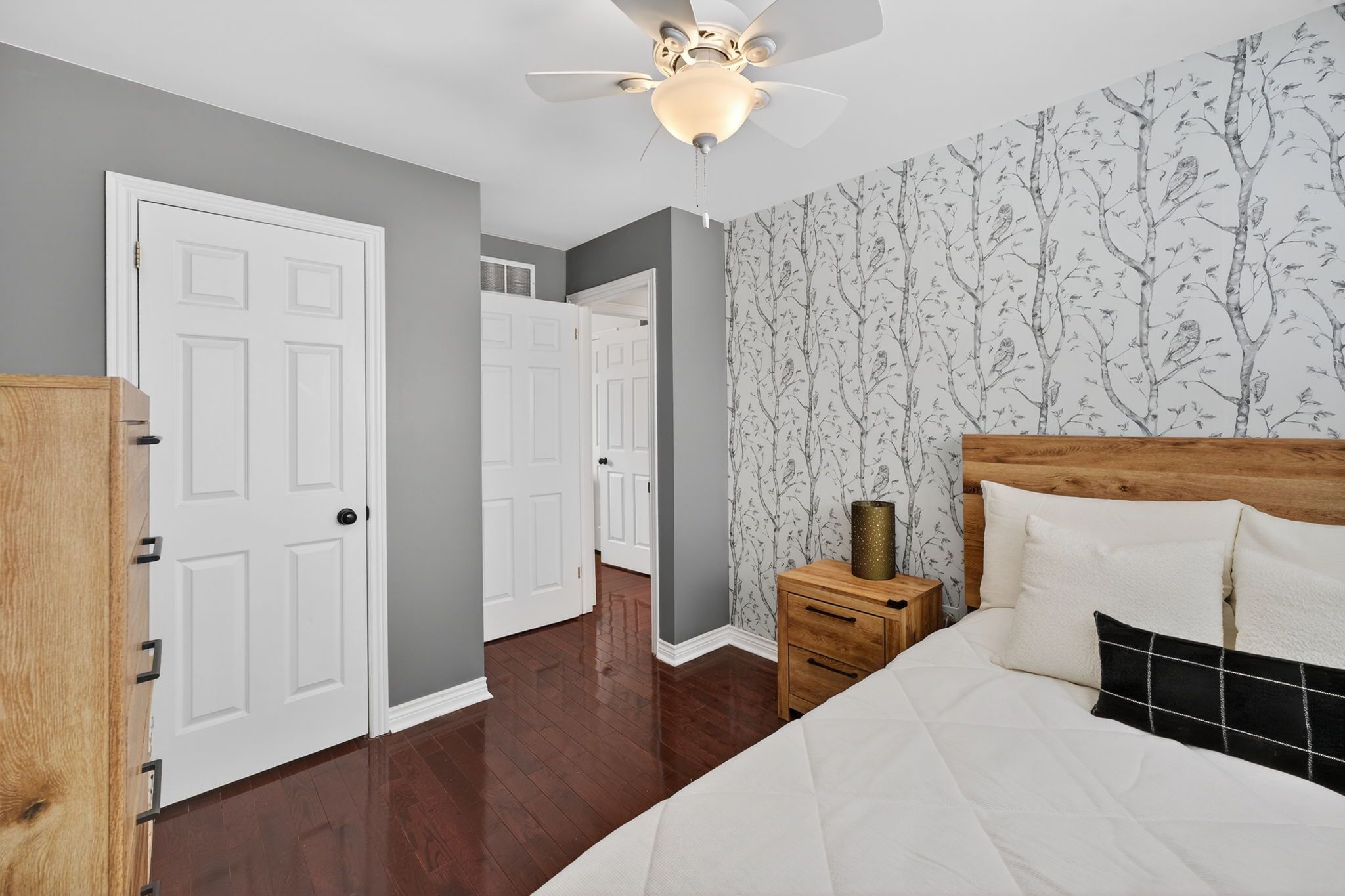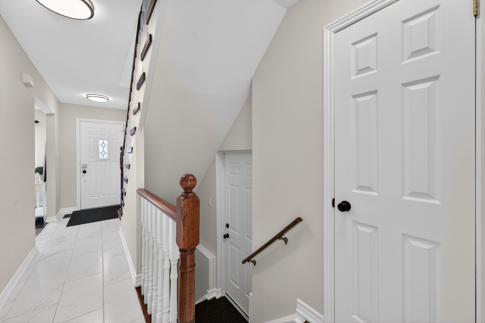 Welcome to this beautifully maintained 4-bedroom, 2-storey home, situated on a quiet cul-de-sac in a family friendly neighbourhood. This home features a 2-car garage with direct access and a very functional, well-laid-out floor plan. The main floor offers a formal living room and formal dining room, along with a bright eat-in kitchen featuring an island, stone countertops, and s/s appliances including a gas stove. The kitchen overlooks a large family room, creating a comfortable space for everyday living and entertaining. The upper level includes a spacious primary bedroom with a walk-in closet and a 3-piece ensuite with glass shower, along with well-sized secondary bedrooms. The finished basement provides additional living space with a large rec area, extra bedroom, and cold room, offering flexibility for guests, a home office, or family use. The kitchen walks out to a large rear deck with beautiful glass railings, overlooking a huge fully fenced backyard featuring a gas line for bbq and a hot tub, making it ideal for outdoor living and entertaining. Located close to schools, parks, and local amenities, this home is set in a quiet, established neighbourhood ideal for families.