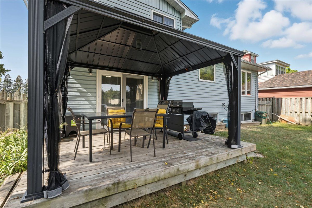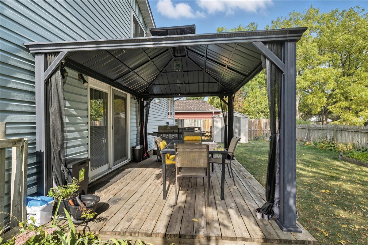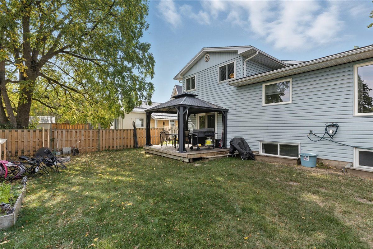 Welcome to your next home a delightful 4-level side-split nestled on a tranquil, tree-lined street. This inviting residence is an exceptional retreat for families or anyone seeking comfort and convenience. Large picture windows floods the open living and dining rooms with light. The three bedrooms provide restful retreats for the whole family, each with ample closet space and natural light. Three bathrooms including a convenient powder room and two full baths. A unique floor plan that offers flexibility and privacy for relaxation, hosting, and daily life. The basement includes a freshly updated rec room perfect for lively gatherings, movie nights, or a bright, safe play area for children. The attached 2-car garage provides direct access from the house and offer space for vehicle, hobbies, or extra storage. Step outside to the rear yard that includes a wood deck, ideal for summer barbeques and lazy afternoons. The charming gazebo invites outdoor dining for peaceful moments. Situated in a desirable neighbourhood, this home is close to schools, shops, and restaurants everything you need just minutes away. Commuters will love the quick access to hwy 401 and close proximity to cambridge and kitchener. Don't miss your chance to call this charming, move-in-ready property your own.