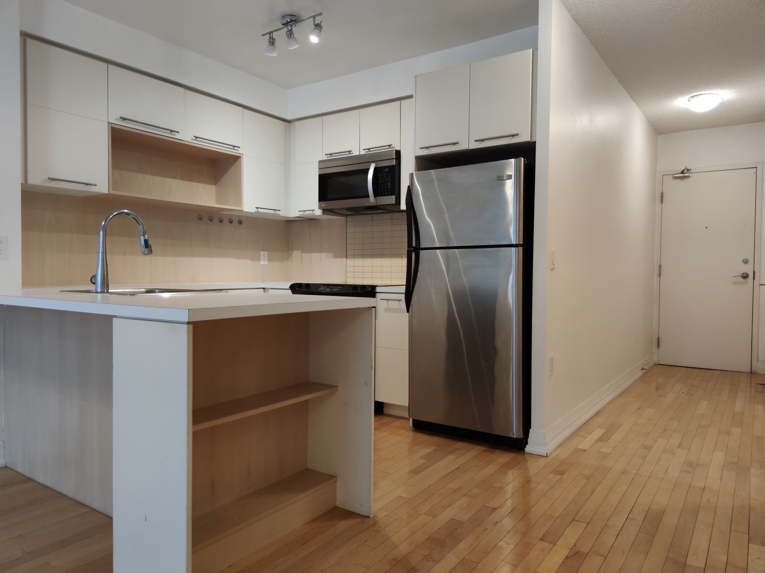 • Modern features include stainless steel appliances and hardwood flooring.