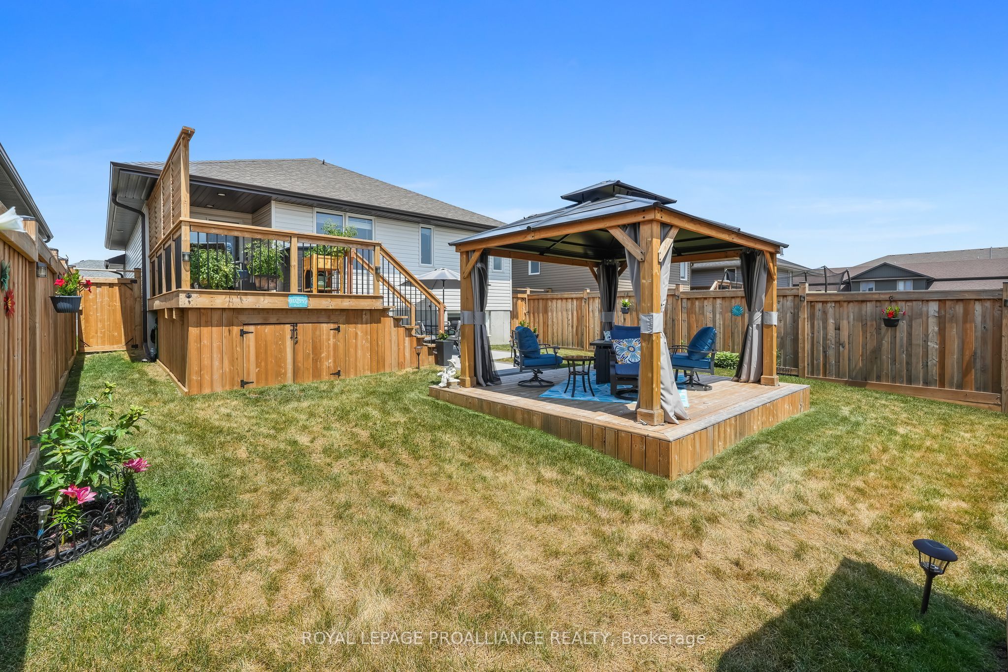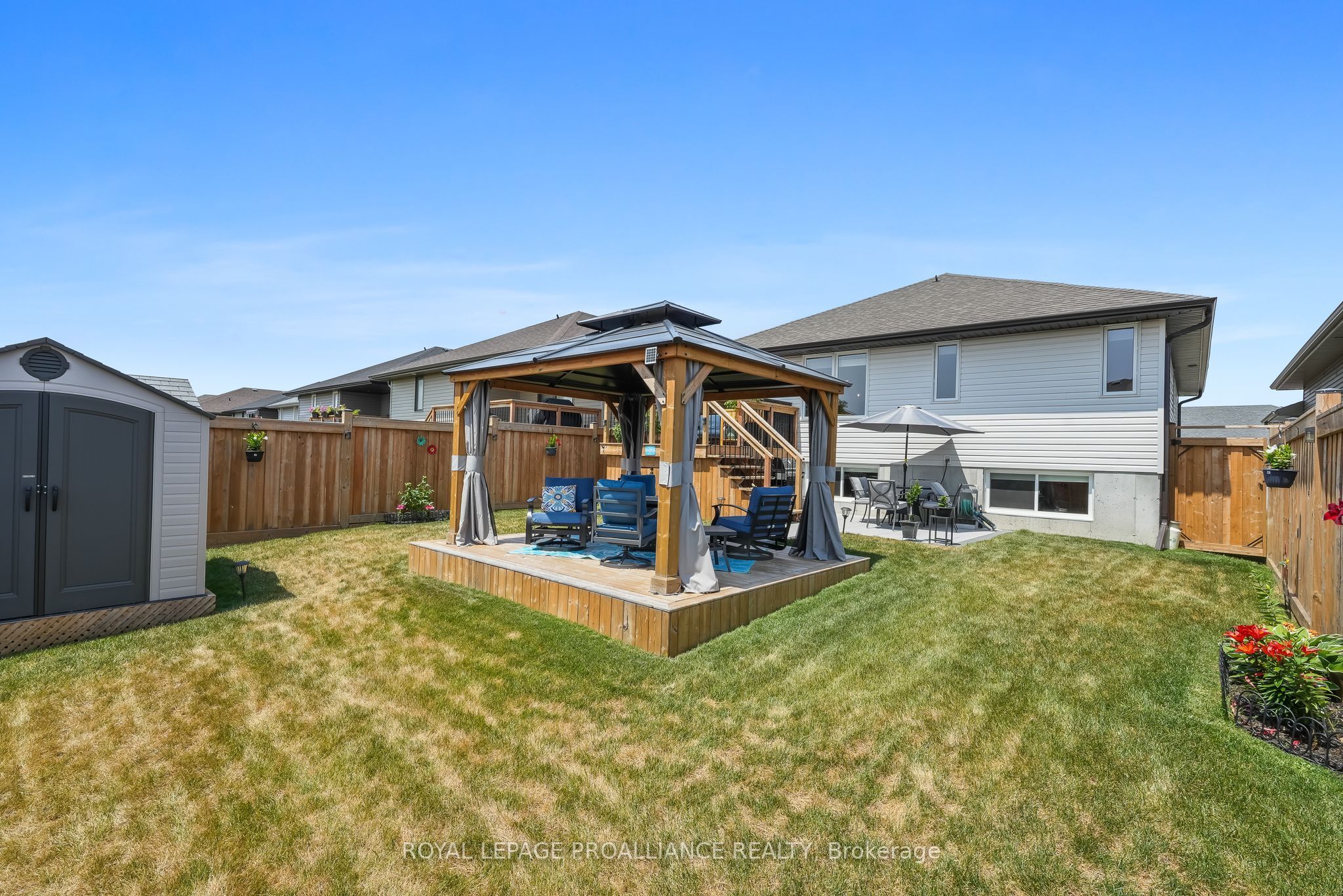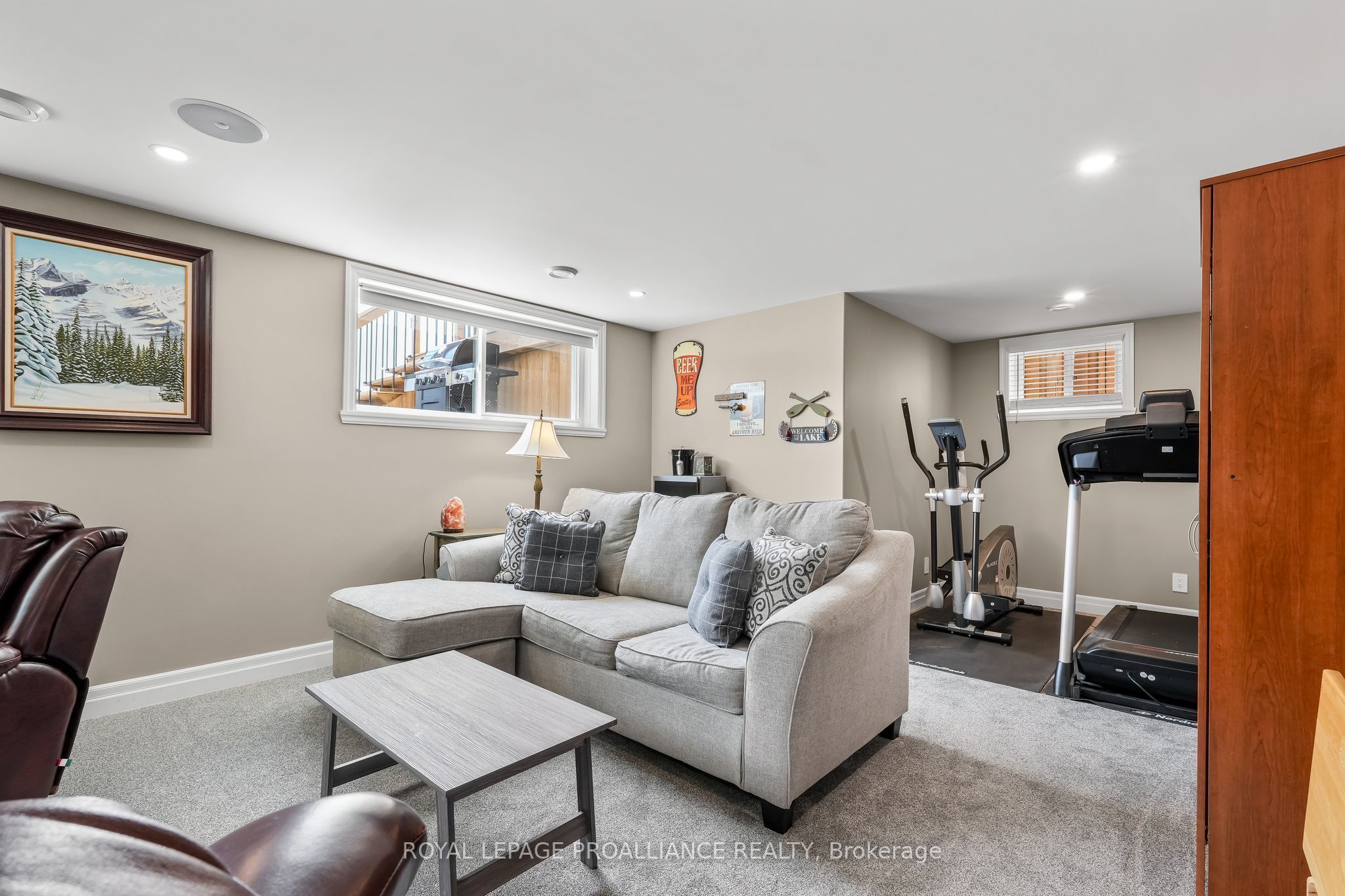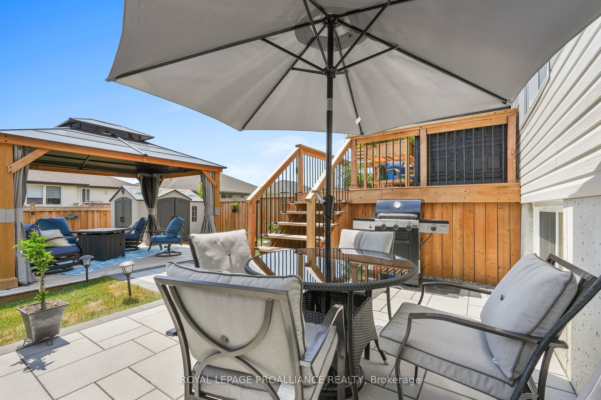 Welcome to 25 cedar park crescent! This impeccably cared-for home with over 1700 sq ft of finished space offers modern living in a desirable quinte west neighbourhood. Step into the generous front entryway and continue to the open-concept main floor layout. The sun-filled kitchen, dining and living areas are ideal for entertaining, with large south-facing windows that fill the space with natural light. The kitchen is a chef's dream, complete with quartz countertops, loads of ceiling-height cabinetry, stainless steel appliances, a pantry and a center island with a breakfast bar. Step out from the dining area onto the expansive & upgraded partially covered rear deck, complete with a custom privacy louver system, perfect for relaxing or entertaining outdoors. The fully fenced backyard has been professionally landscaped and includes a massive wooden gazebo and patio area for al fresco dining or quiet evenings under the stars. The main floor features two large bedrooms, a 4-piece bath with ensuite privilege from the primary bedroom plus stylish & durable laminate flooring. Downstairs, the fully finished lower level is the ultimate retreat with a cozy gas fireplace and built in speakers in the oversized rec room... Perfect for movie night or relaxing after a long day with a book. A third bedroom can double as a guest room or home office, with a convenient full 4-piece bathroom located just beside. The laundry room includes a sink for added functionality and ease with daily tasks. Enjoy direct entry from the attached garage into the foyer, perfect for busy days and easy unloading. Located in a quiet, friendly neighbourhood walkable to schools, parks and everyday amenities. Just a short drive to downtown trenton, conservation trails, marina, batawa ski hill, the bay of quinte for boating and ice fishing in the winter, and all that prince edward county has to offer, including wineries, breweries, and stunning white sand beaches!