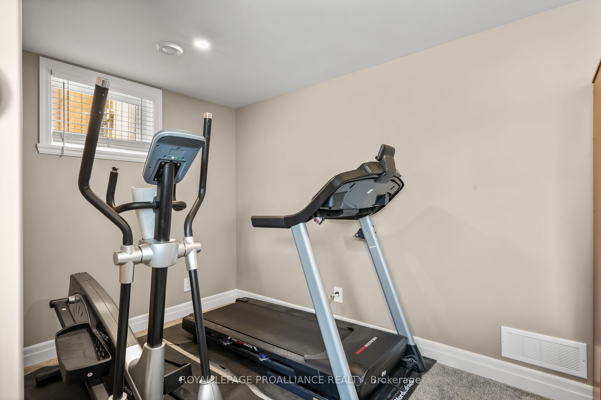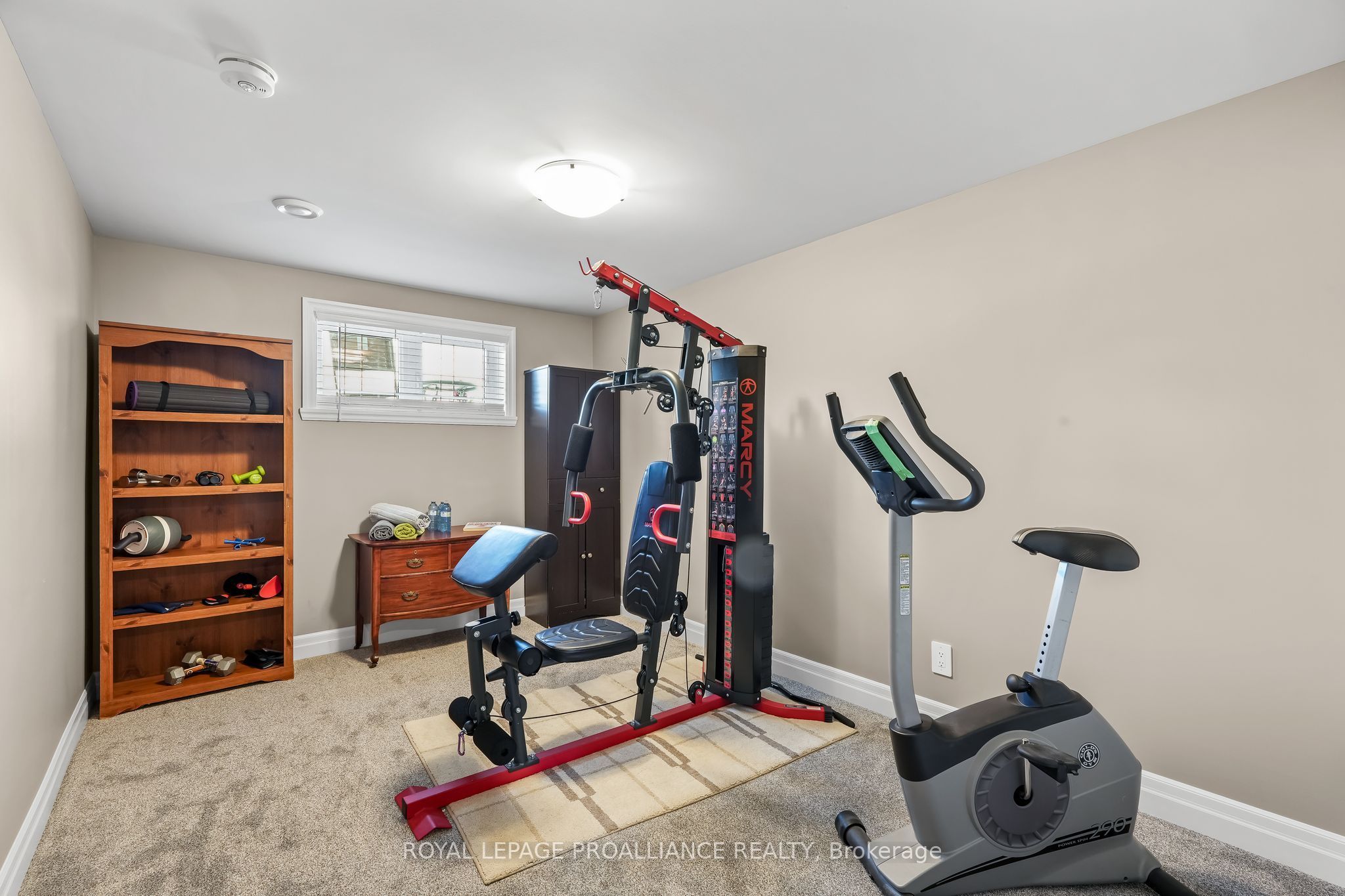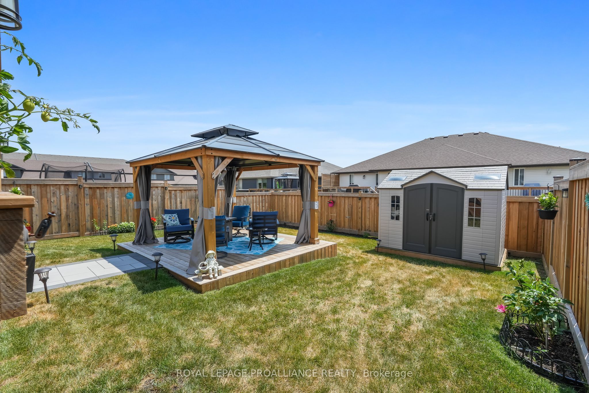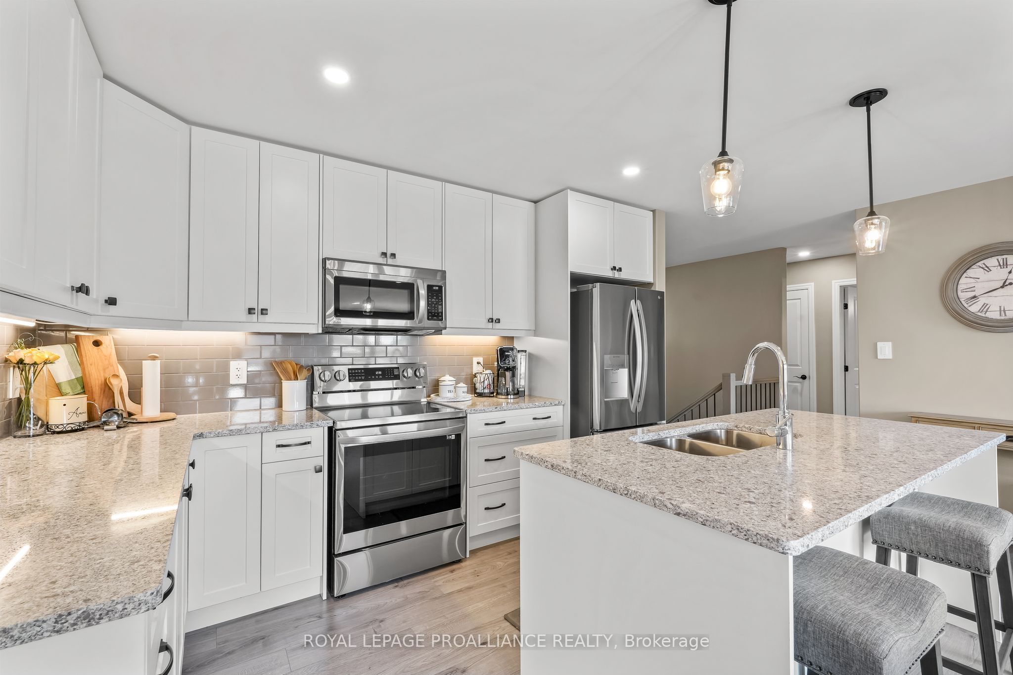 Welcome to 25 cedar park crescent! This impeccably cared-for home with over 1700 sq ft of finished space offers modern living in a desirable quinte west neighbourhood. Step into the generous front entryway and continue to the open-concept main floor layout. The sun-filled kitchen, dining and living areas are ideal for entertaining, with large south-facing windows that fill the space with natural light. The kitchen is a chef's dream, complete with quartz countertops, loads of ceiling-height cabinetry, stainless steel appliances, a pantry and a center island with a breakfast bar. Step out from the dining area onto the expansive & upgraded partially covered rear deck, complete with a custom privacy louver system, perfect for relaxing or entertaining outdoors. The fully fenced backyard has been professionally landscaped and includes a massive wooden gazebo and patio area for al fresco dining or quiet evenings under the stars. The main floor features two large bedrooms, a 4-piece bath with ensuite privilege from the primary bedroom plus stylish & durable laminate flooring. Downstairs, the fully finished lower level is the ultimate retreat with a cozy gas fireplace and built in speakers in the oversized rec room... Perfect for movie night or relaxing after a long day with a book. A third bedroom can double as a guest room or home office, with a convenient full 4-piece bathroom located just beside. The laundry room includes a sink for added functionality and ease with daily tasks. Enjoy direct entry from the attached garage into the foyer, perfect for busy days and easy unloading. Located in a quiet, friendly neighbourhood walkable to schools, parks and everyday amenities. Just a short drive to downtown trenton, conservation trails, marina, batawa ski hill, the bay of quinte for boating and ice fishing in the winter, and all that prince edward county has to offer, including wineries, breweries, and stunning white sand beaches!