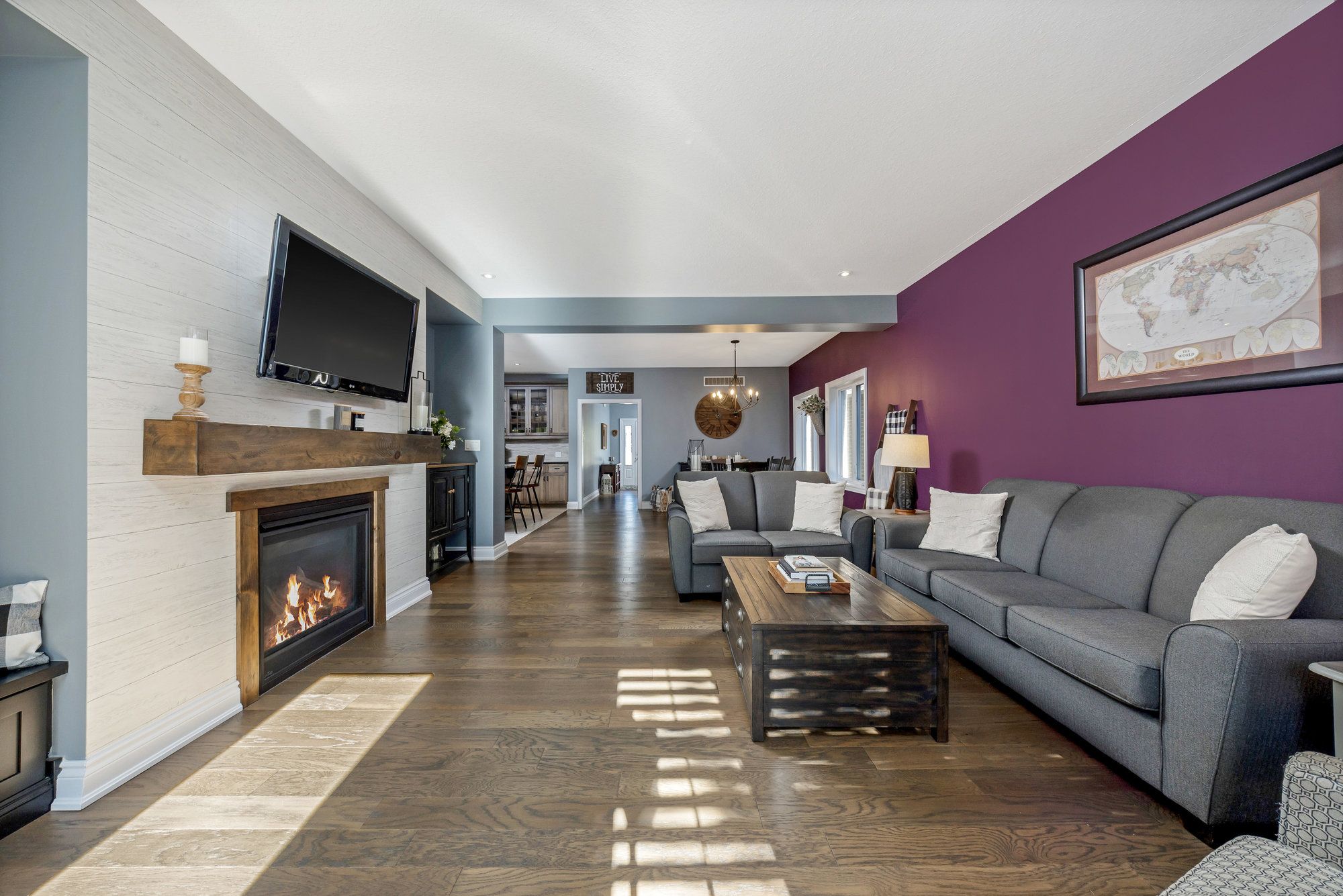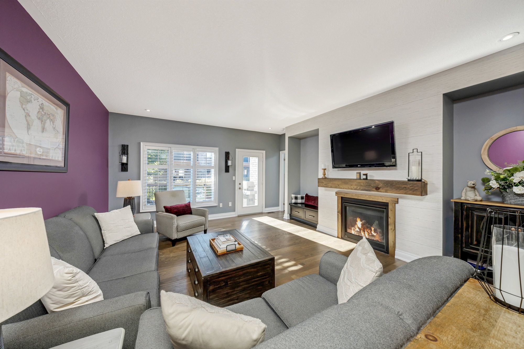 • Cozy lower-level rec room with additional gas fireplace.