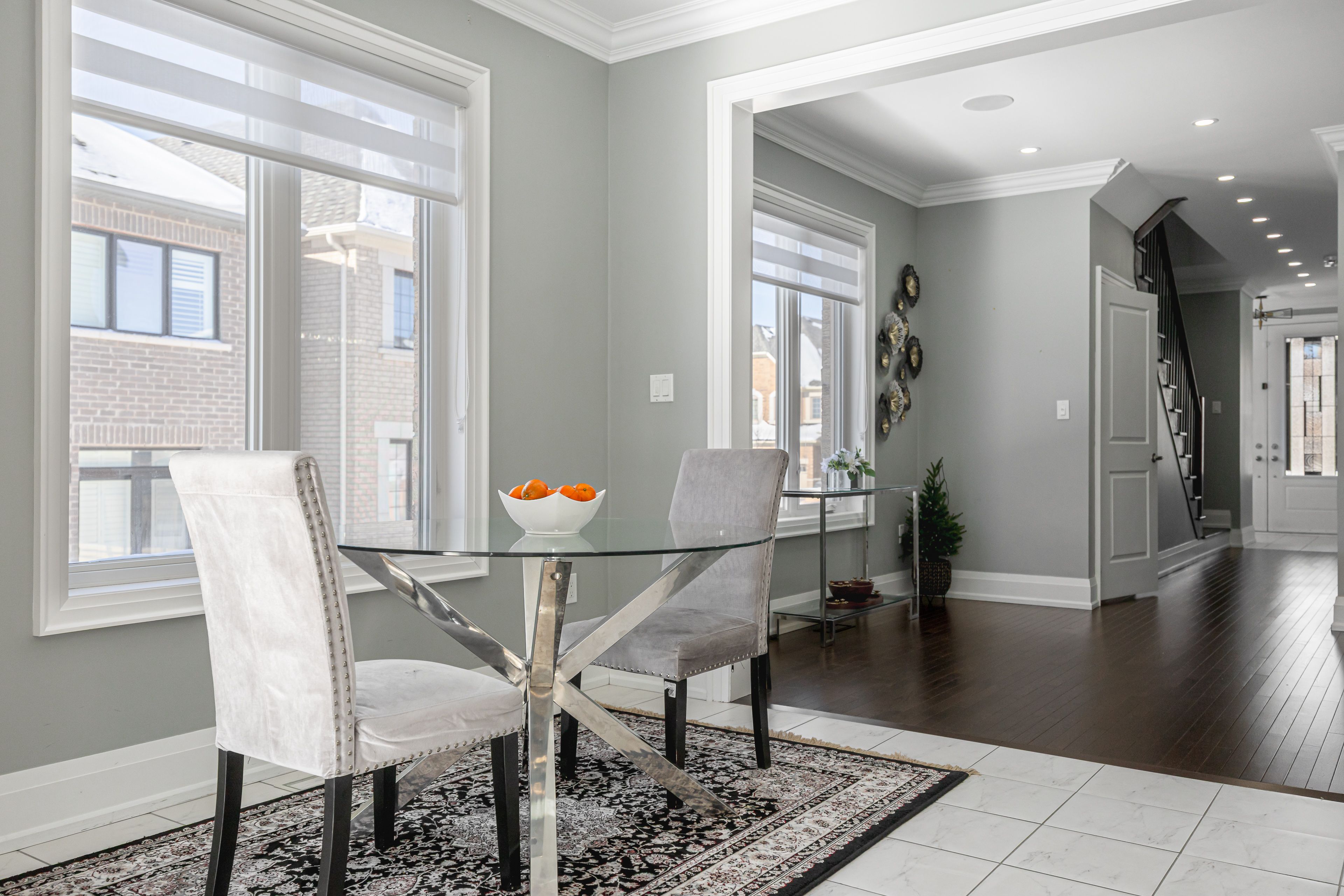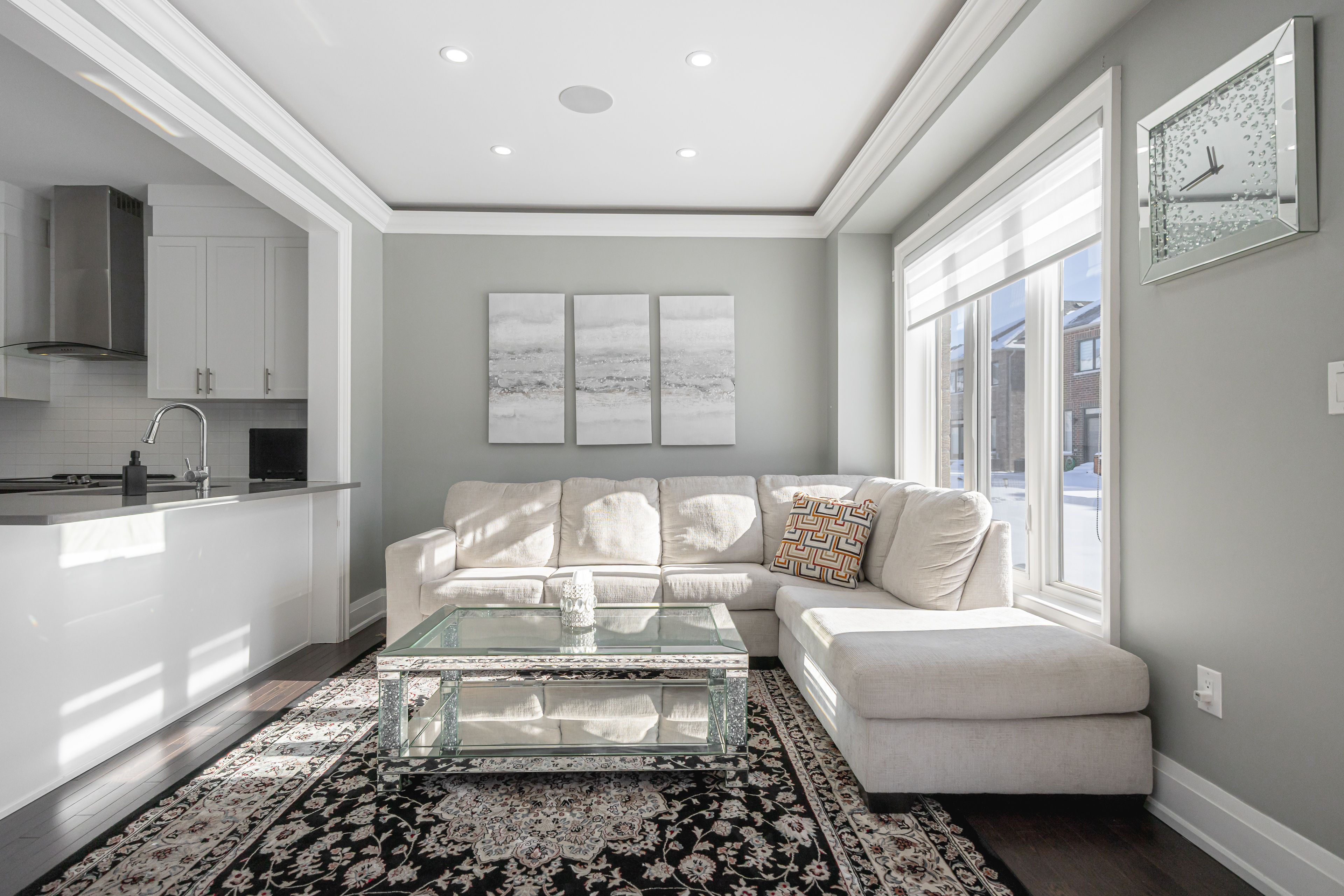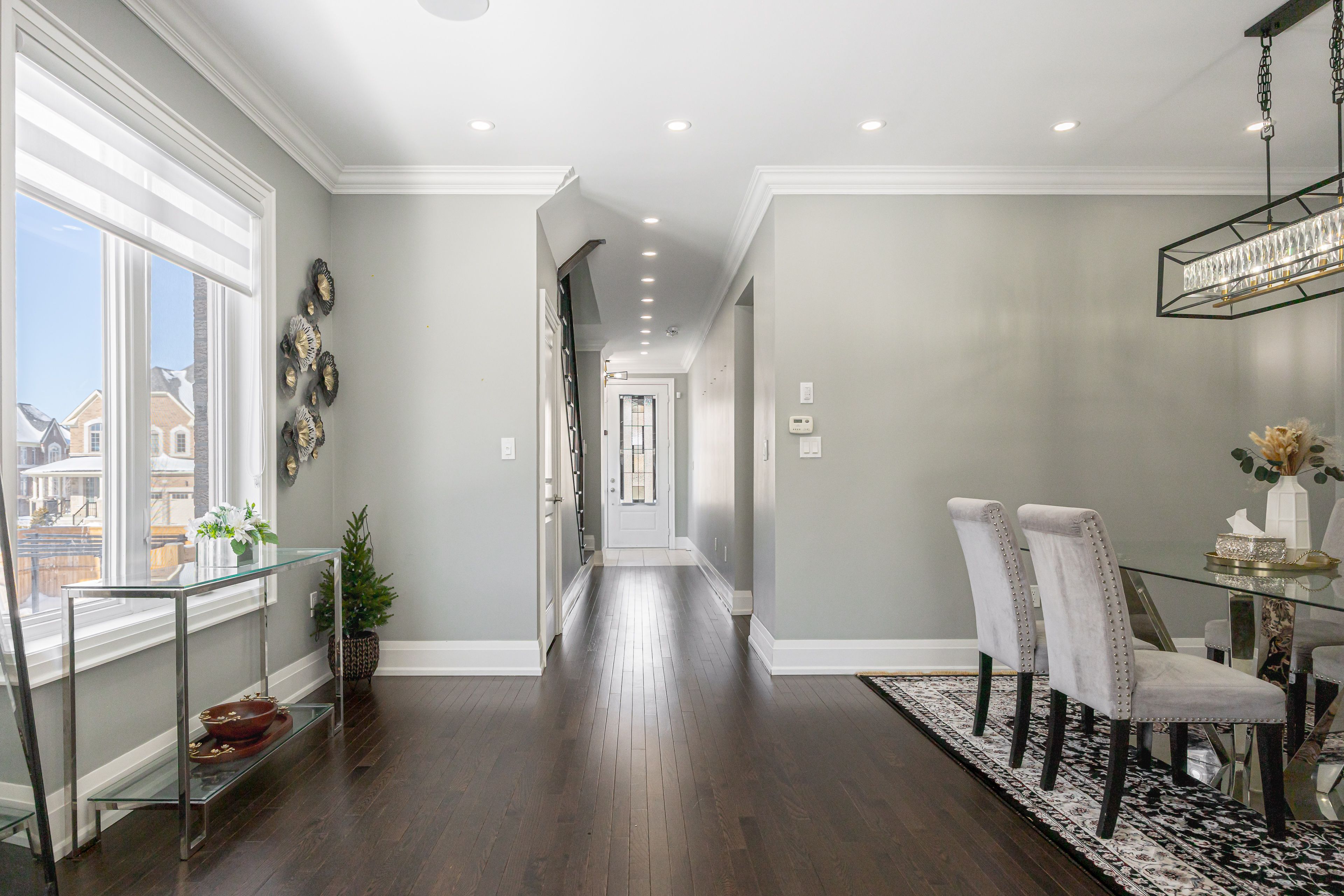 Well-maintained 4+1 bedroom, 4-bath detached home in a sought-after whitby neighbourhood. Bright and functional layout featuring 9-foot ceilings on the main floor, crown moulding, custom feature walls, and a cozy gas fireplace. Interior and exterior pot lights throughout. Upgraded kitchen with quartz countertops, stainless steel appliances, and ample cabinetry, complemented by a whole-home audio system. Spacious primary bedroom with two custom closet organizers. Upper-level laundry room with built-in cabinetry. All bedrooms include custom closet organizers. Finished basement with recreation space and a full bathroom, offering potential for a future suite with addition of a side entrance and kitchenette. Professionally finished stone interlock in front and backyard with a private patio. Attached garage and ample storage. Located close to schools, parks, shopping, transit, and heber down conservation area. Ideal family home in a quiet, established community.