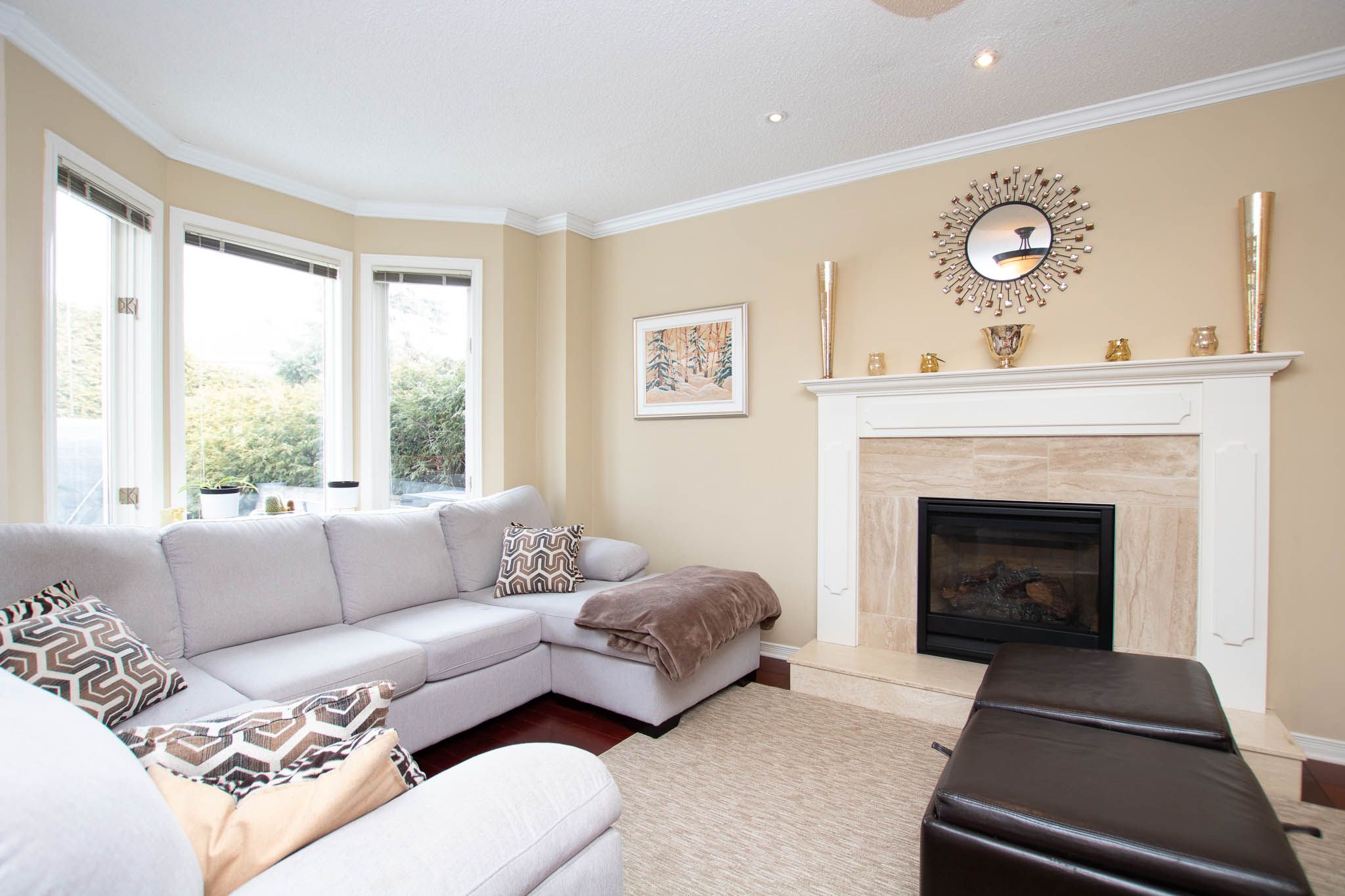 • Sunken living room with cozy fireplace for relaxed gatherings.