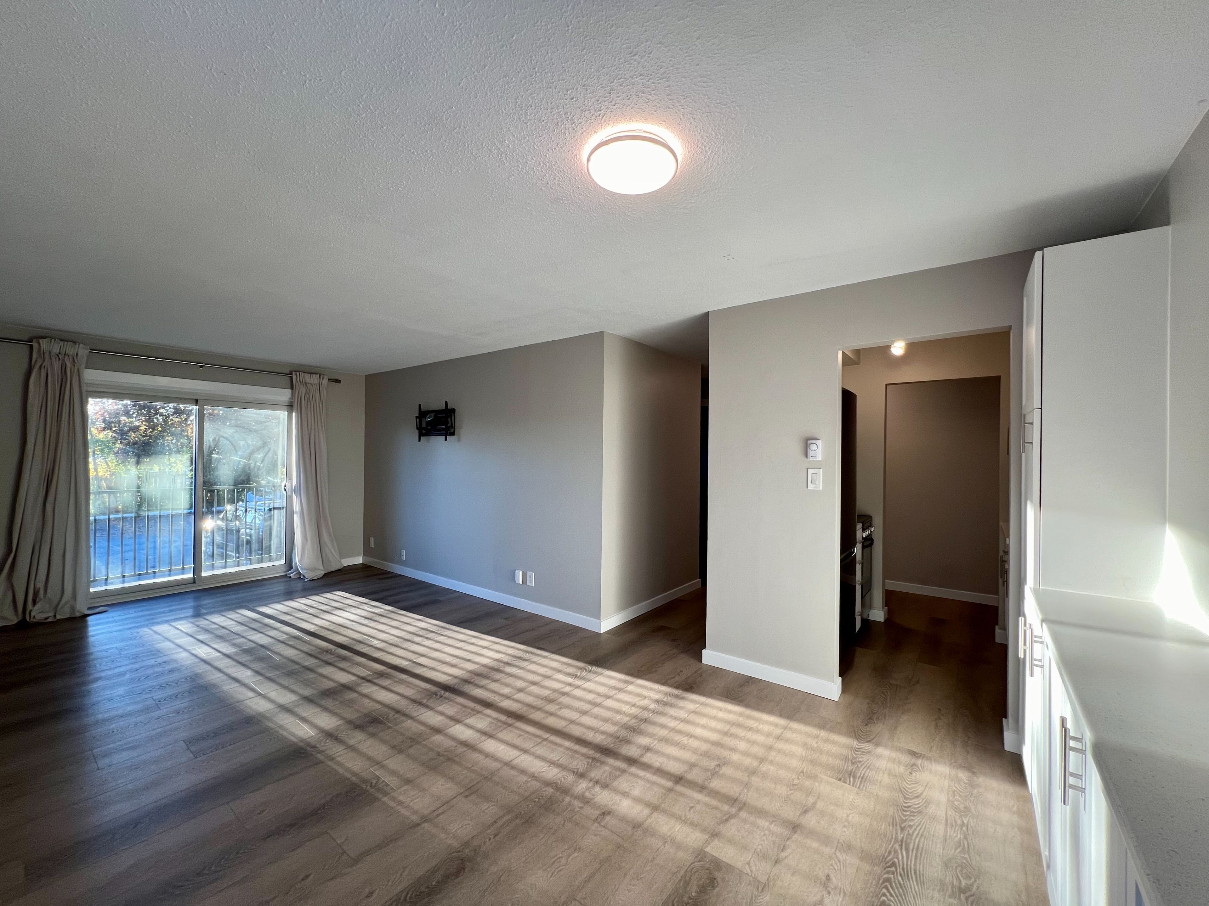 • Open living and dining area with plenty of natural light and a private balcony.
