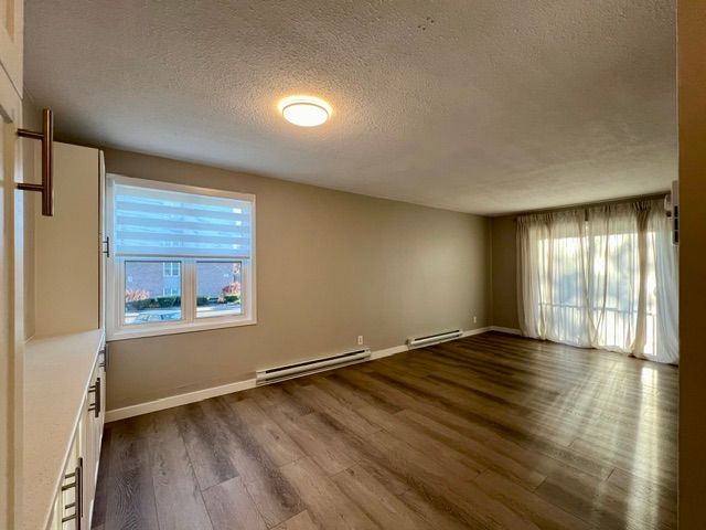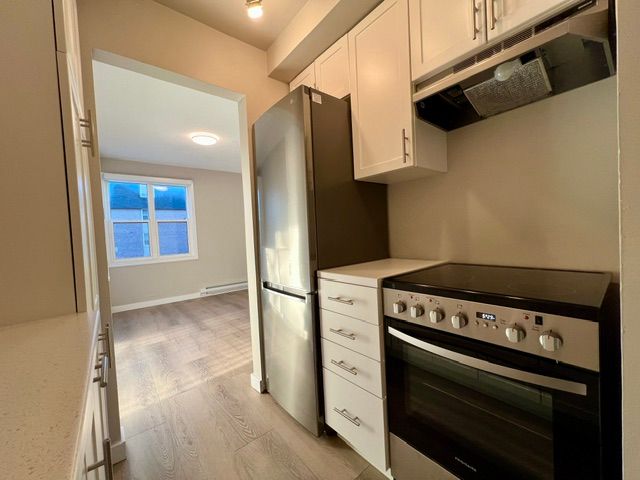 Monthly rent $1950. Landlord offering the 13th month free rent with a 13-month lease agreement. Free month provided as a promotional rent incentive. Welcome to this beautifully renovated (2022) and spacious 2-bedroom, 1-bath condo for lease in the heart of belleville, ideally located near n front st & college st e. This bright southwest-facing unit features an open-concept living and dining area with walk-out to a large private balcony, offering plenty of natural light throughout. The updated kitchen showcases a new backsplash, newer appliances, and ample cabinetry. Additional 2022 upgrades include laminate flooring, modern trims and doors, updated light fixtures, baseboard heating, and a refreshed bathroom complete with new bathtub, vanity, and toilet. The unit includes an ensuite locker/storage room and one surface parking space. Situated in a secure, well-maintained building on a quiet street with on-site superintendent, residents enjoy shared card-operated laundry on the lower level, storage lockers (first come, first serve), and additional assigned parking available at extra cost (subject to availability). Conveniently located close to public transit and within walking distance to groceries, restaurants, and everyday amenities. Tenant responsible for hydro/heat. Available immediately.