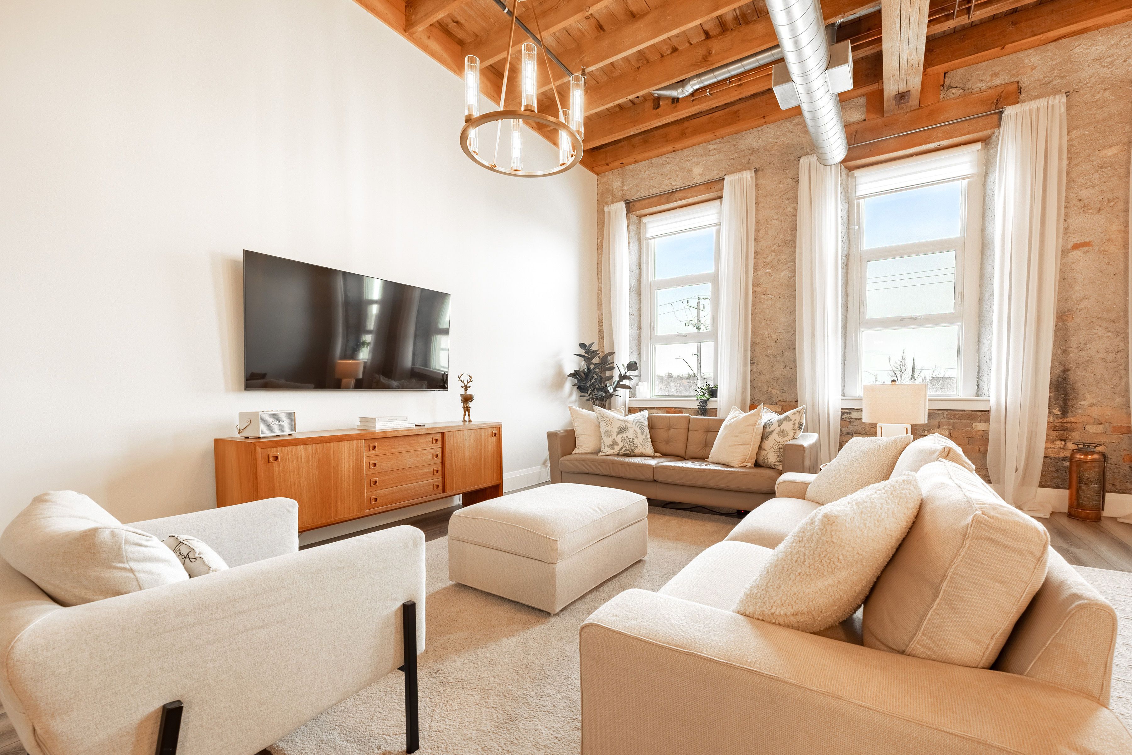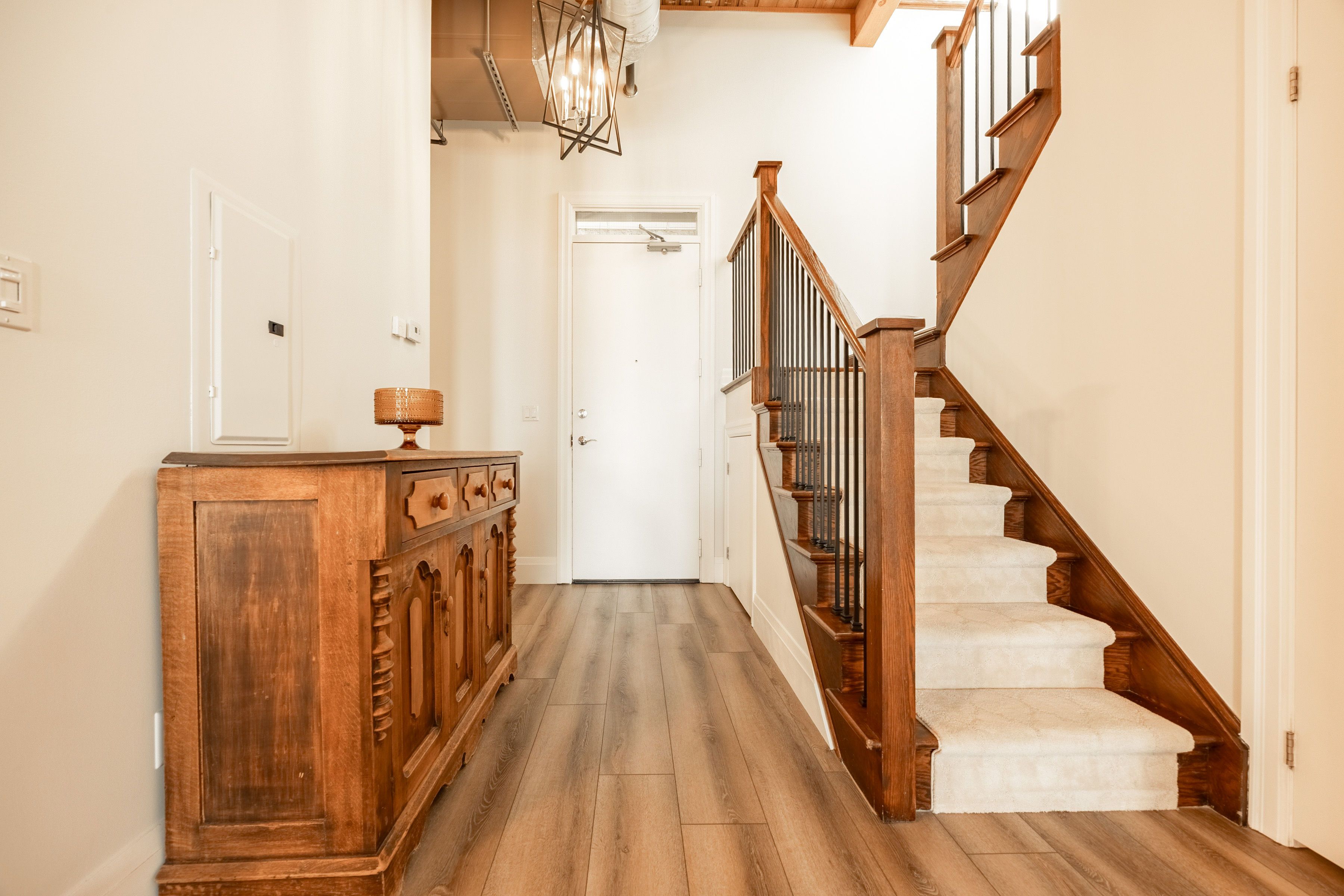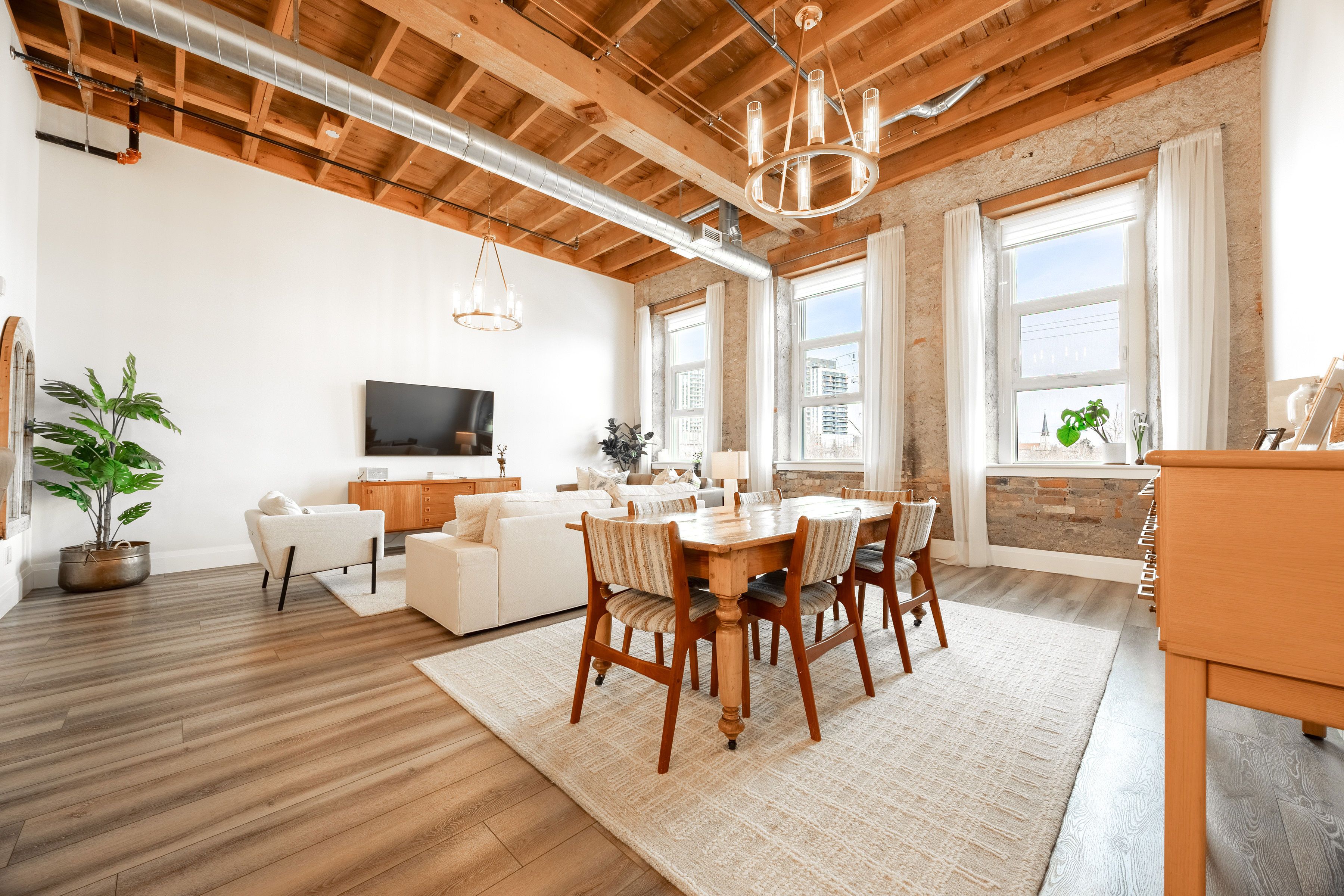 • Spacious two-storey penthouse with large windows and high ceilings.