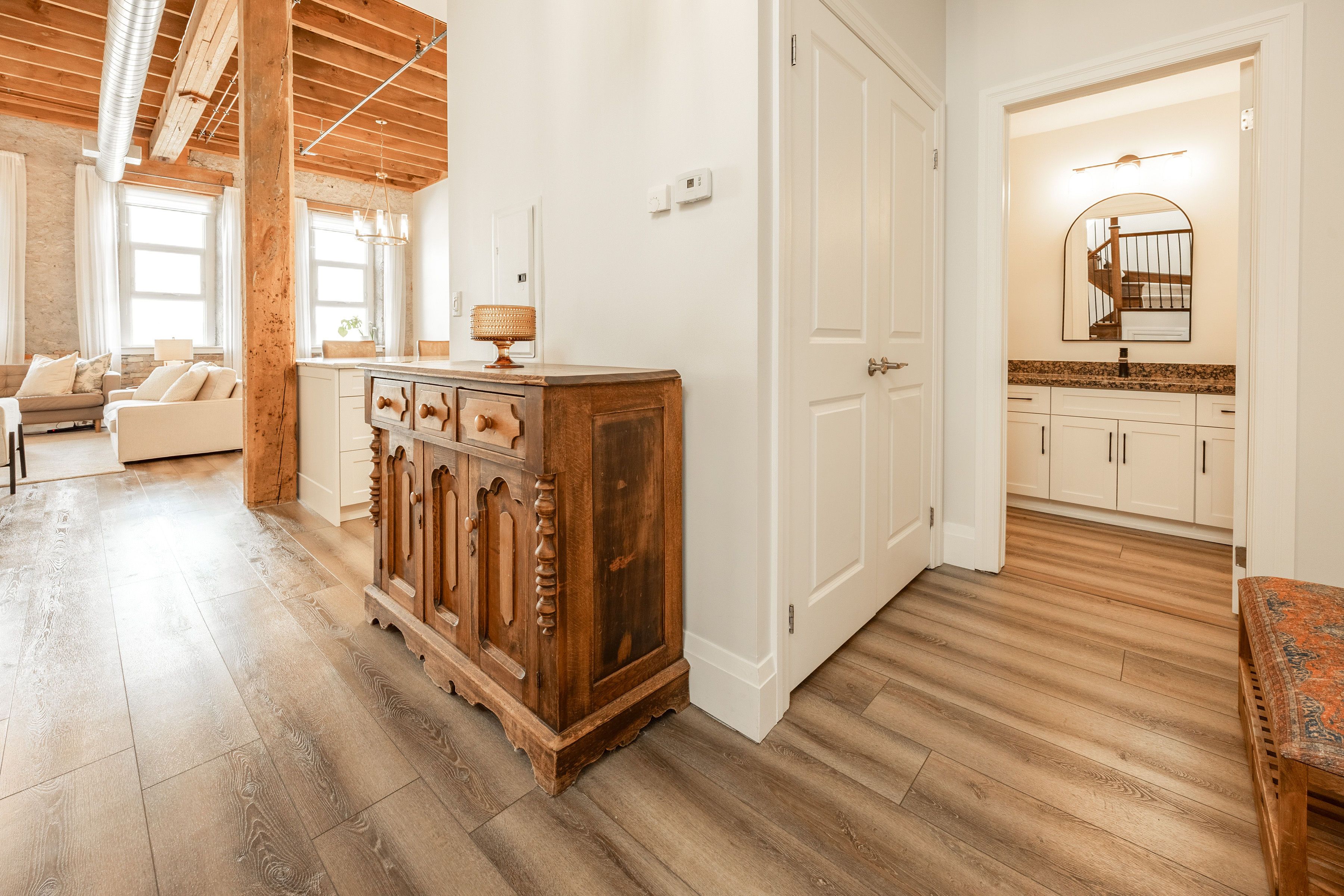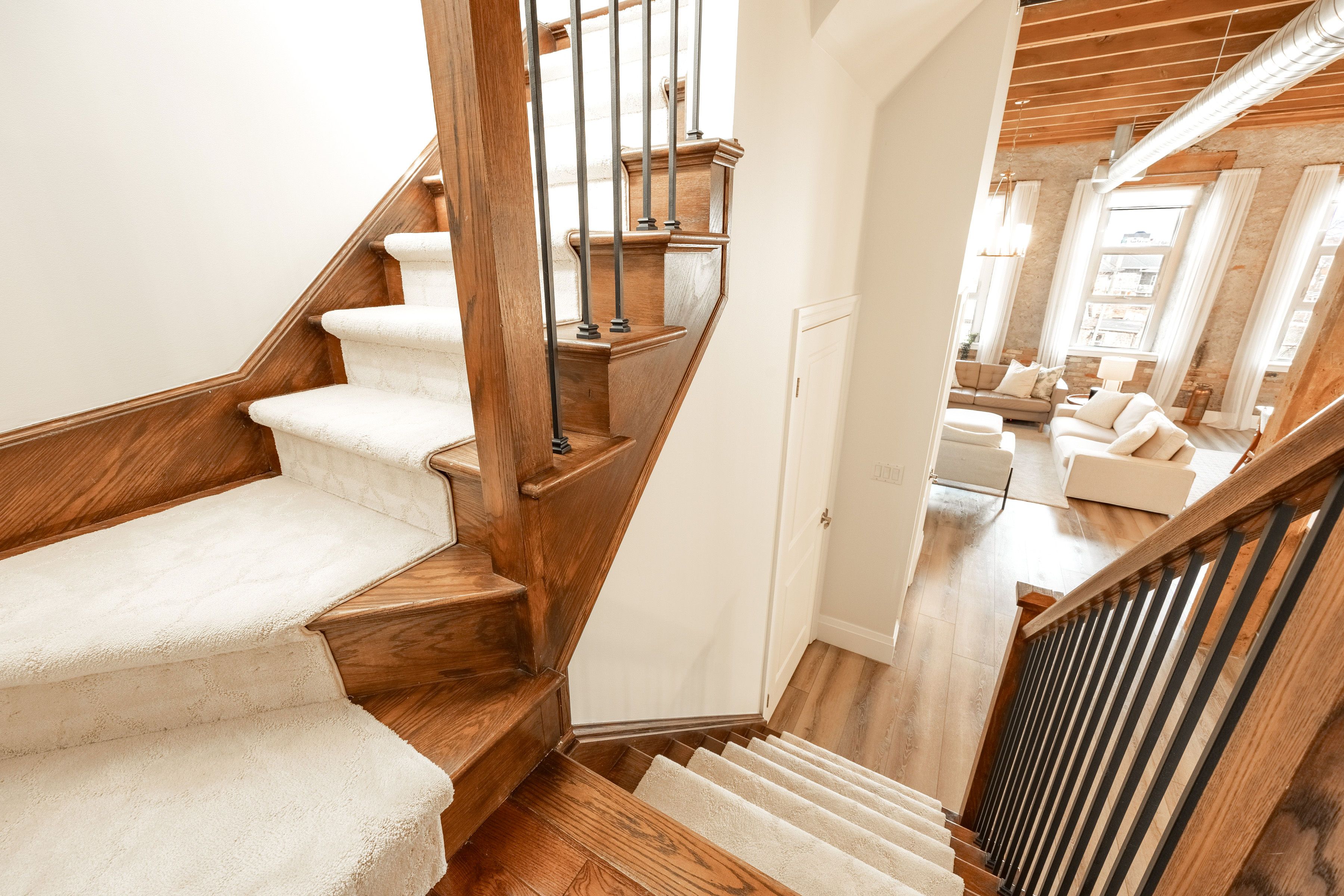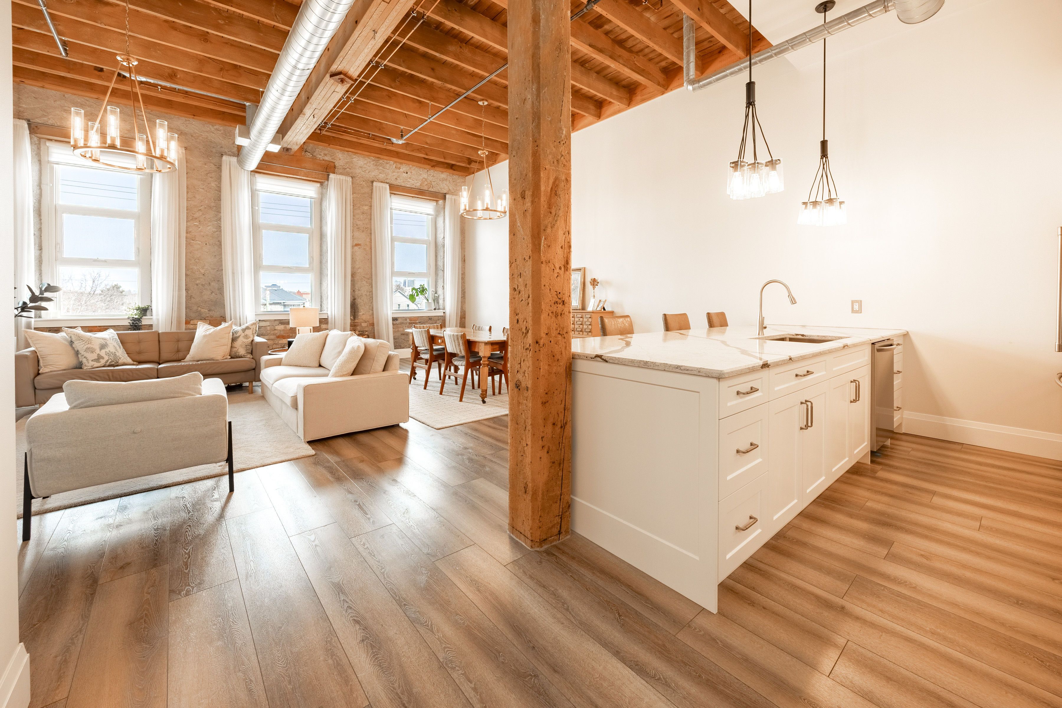 • Spacious two-storey penthouse with large windows and high ceilings.