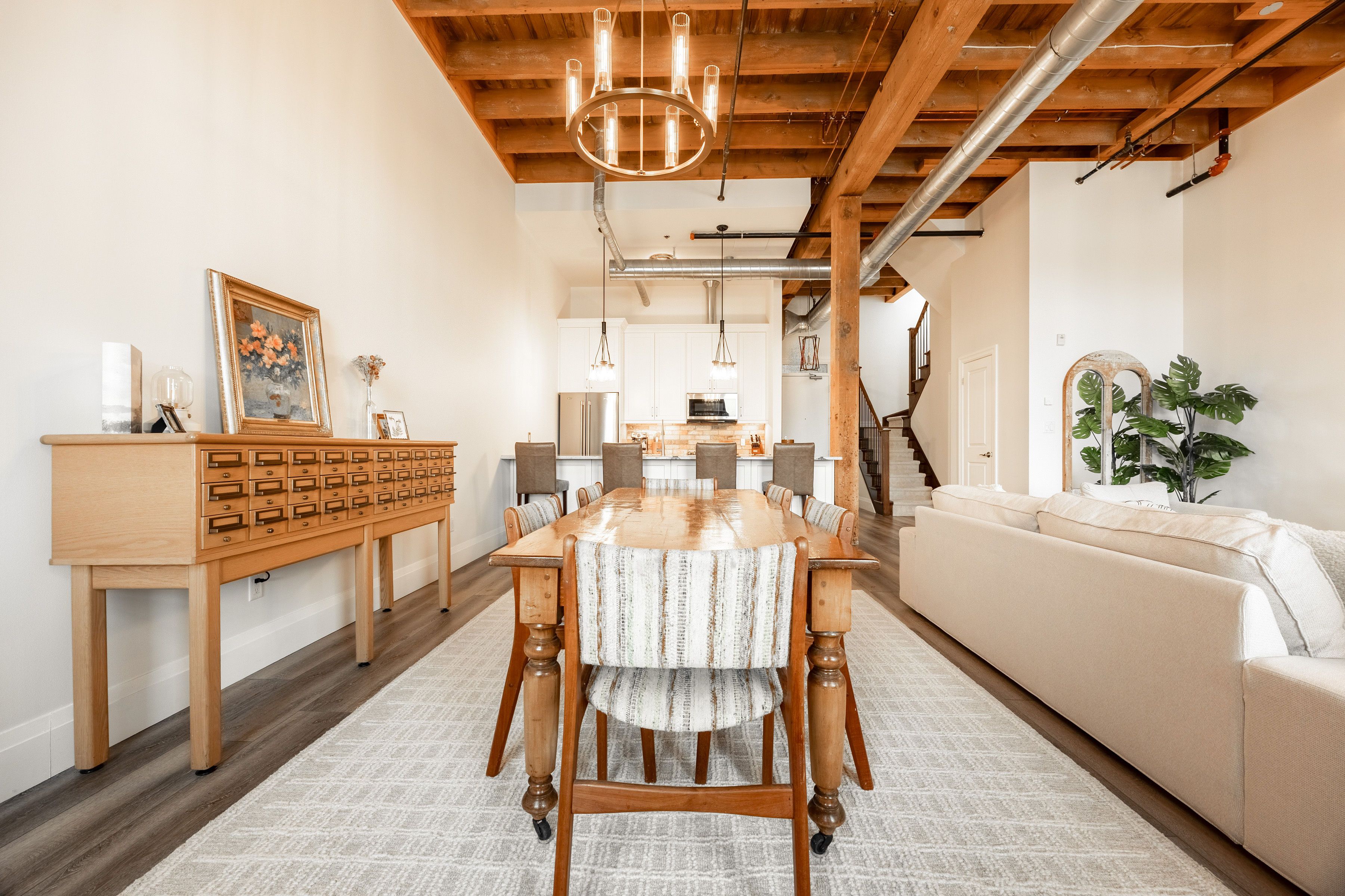 Welcome to 25 concession street, suite 215 in historic galt of cambridge. This stunning 1,599 sq. Ft. Two storey penthouse suite features beautiful large windows, high ceilings, original wood beams, stone walls and exceptional views of the downtown core and riverfront. The open concept main level creates a grand space for the kitchen, dining and living room- perfect entertaining and hosting areas to enjoy with family and friends. The kitchen features quartz counters, loads of cabinetry for storage and a walk-in pantry. You will also find a two piece powder room and in-suite laundry for your added convenience. The upper level boasts a spacious primary bedroom with extra space for a reading nook and a walk-in closet. Find a secondary bedroom, a full four piece bathroom and den that could work well for an office space or additional living area to complete this floor. This suite offers two side-by-side outdoor parking spaces for you to park your vehicles and walk downtown to the gaslight district, the grand river pedestrian bridge, and hamilton family theatre, along with the farmers market and charming restaurants and boutiques. Picture perfect views from all rooms, loads of natural light, within a highly desirable location, this suite is completely move-in ready for those who love nearby city amenities.