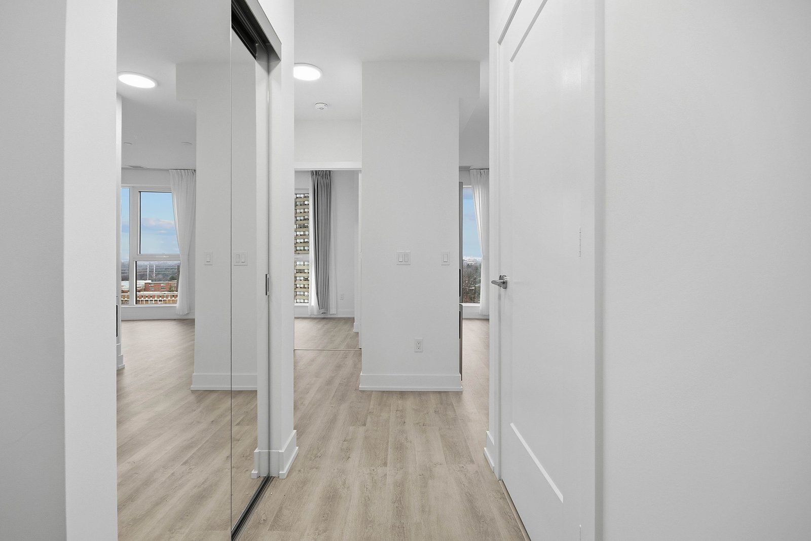 *parking & locker included* rarely offered corner unit with balcony at islington subway! Welcome to westerly i condos by tridel! This stunning 2 bedroom unit is available asap and provides south east views with tons of windows! This unit features a large foyer with a nook that could be perfect for as a mini mudroom, a laundry centre, coat closet & a 4 pc bathroom. The split bedroom layout offers privacy - primary bedroom offers south views with a large walk in closet and upgraded 3 pc ensuite with frameless shower with hand shower attachment while the 2nd bedroom offers east views of the courtyard and community. Large open concept living dining area provides large sized appliances and allows for enough space to place a dining table, l shape couch and a larger sized tv. Westerly i is more of a boutique style building that offers a cozy lobby in the city, a good sized gym, grand party room. This building is perfect for commuters and those who work from home. There's ample of visitor parking offered in the building. Come be one of the first residents in the building today!