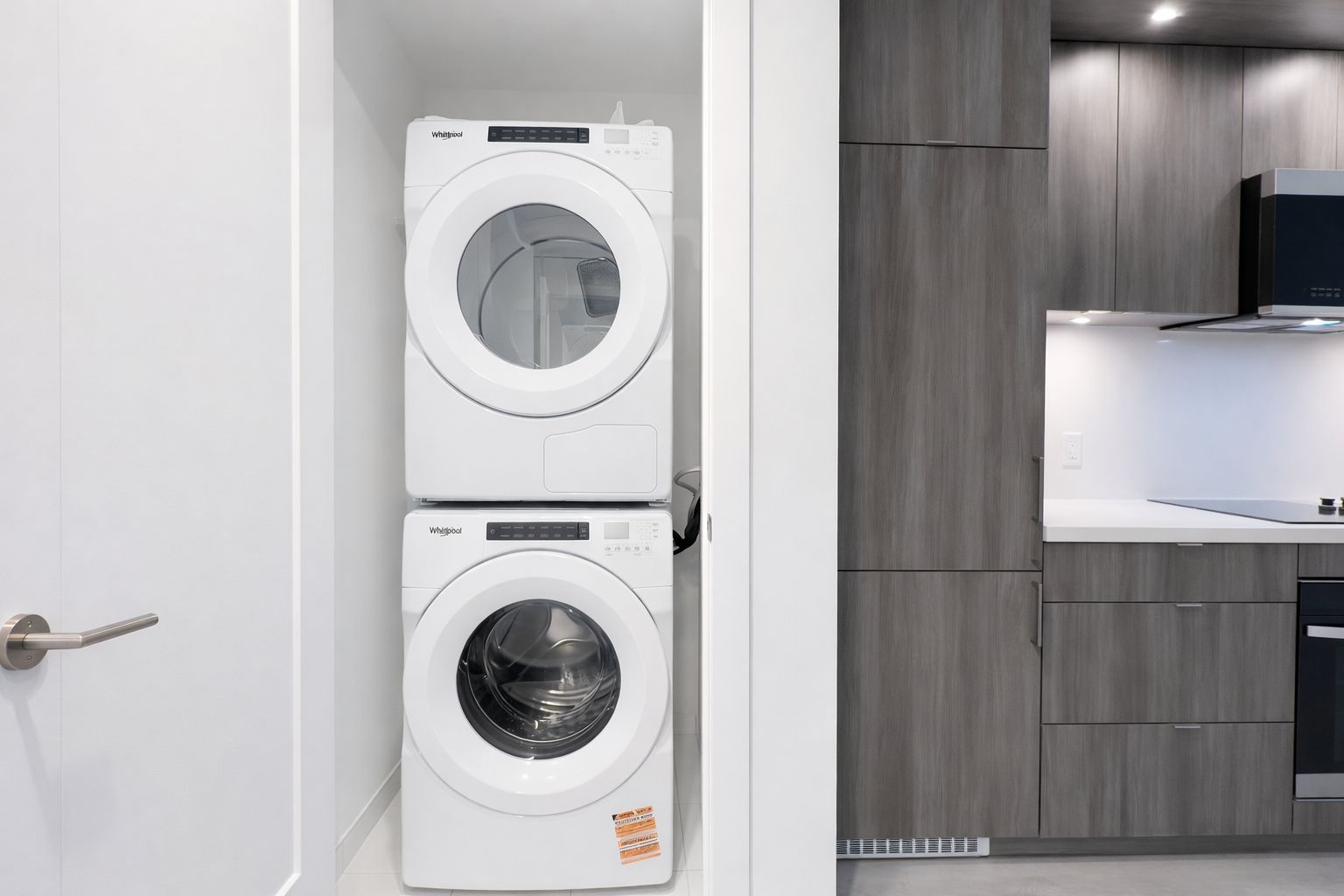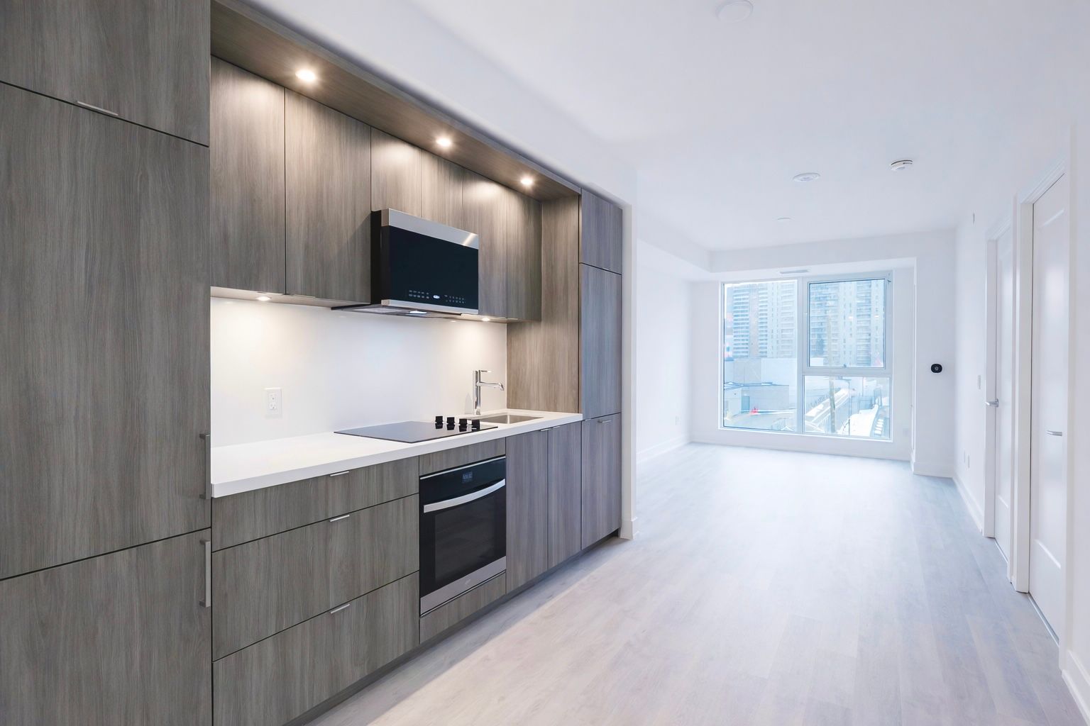 • Modern kitchen with integrated appliances for convenient cooking.