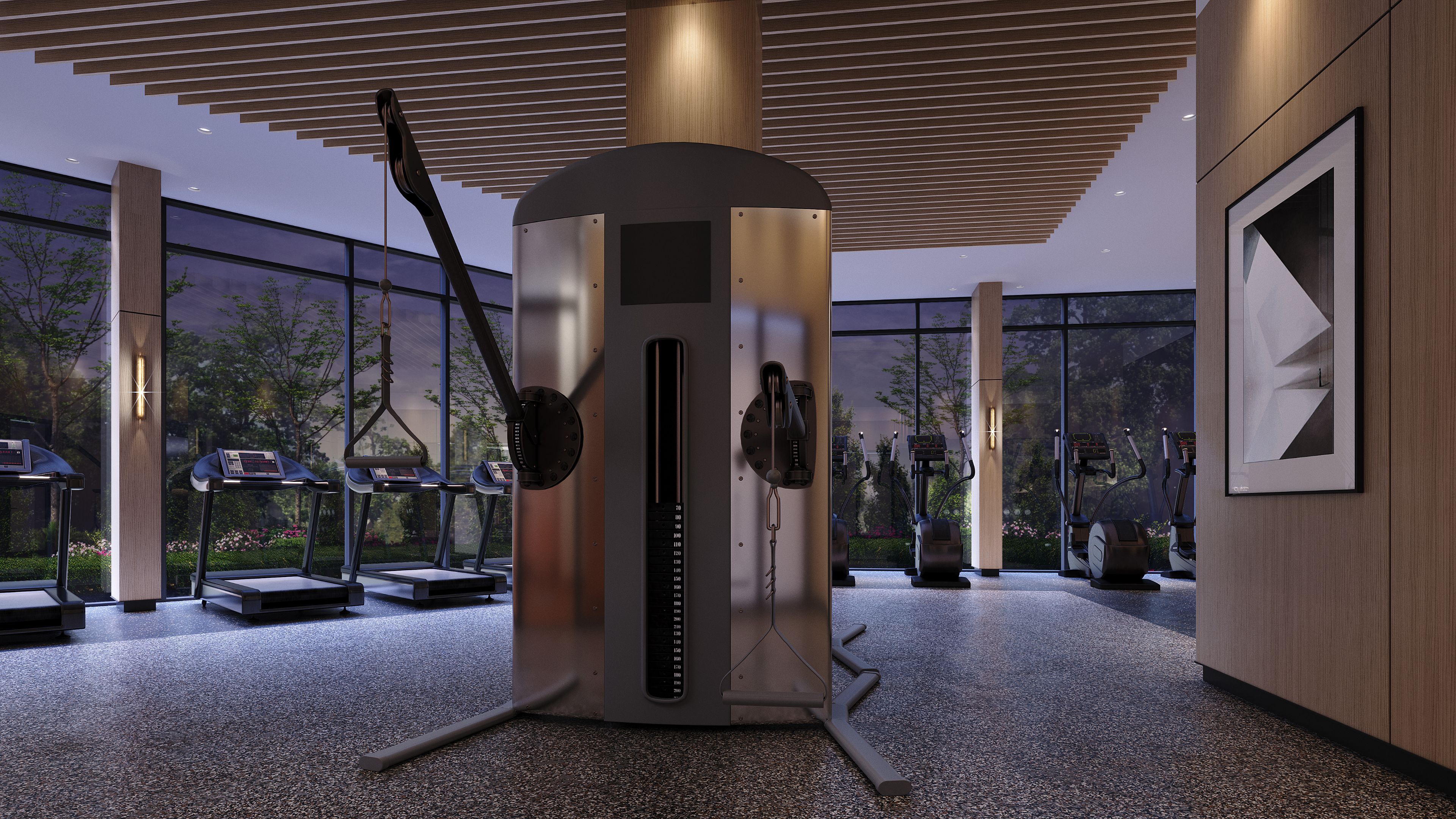 • Amenities include fitness center, lounge, BBQ area, and kids' play space.
