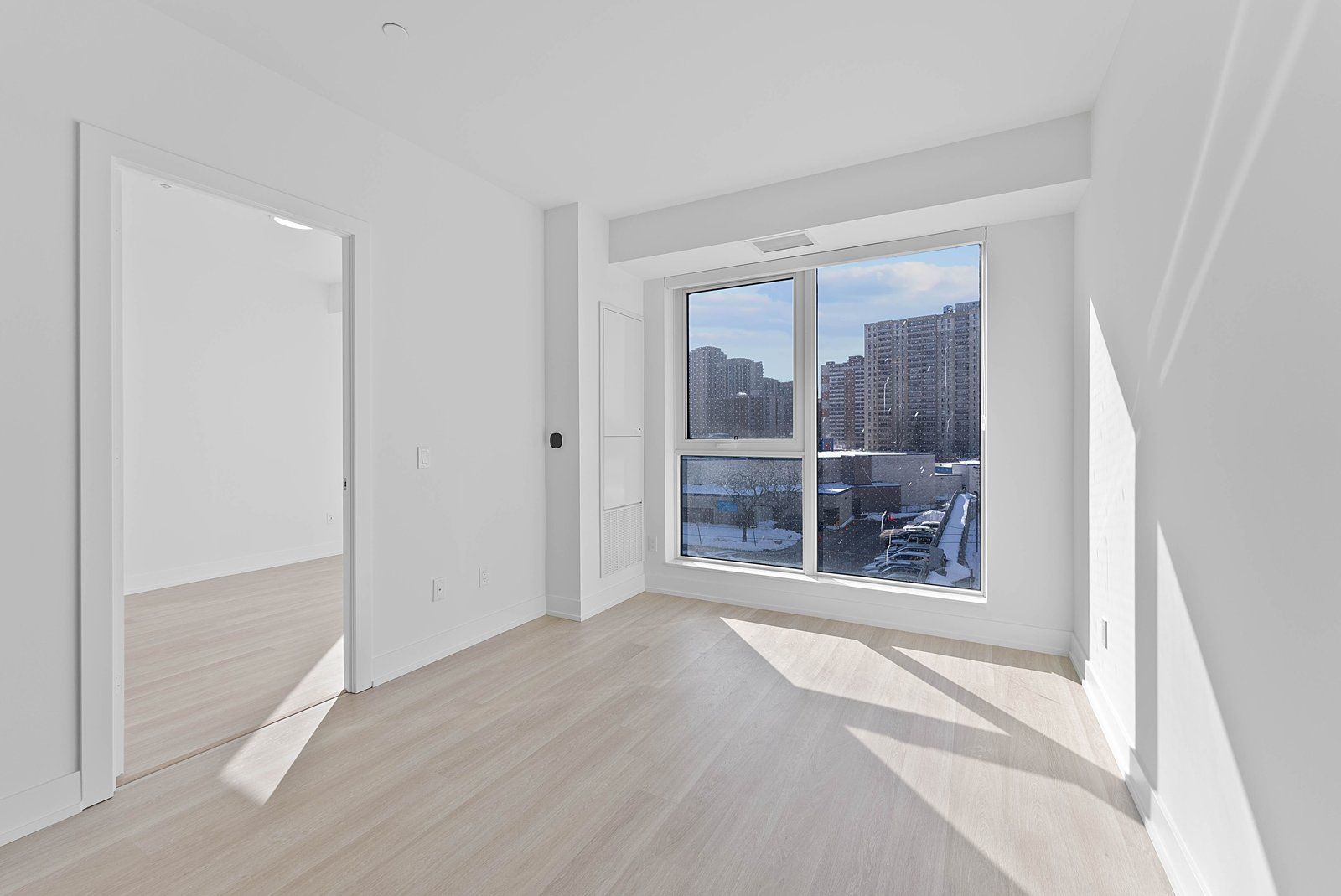 Welcome to westerly i by tridel! Large 1+den/2 bathroom condo available with parking available immediately. This sunfilled west facing unit will remain bright throughout the day! No waste of space! Walk into an open concept kitchen/dining area with lots of storage, built in stainless steel appliances and under the cabinet lighting. Large living room offers clear west views of the school while the den is large enough to fit a single bed. Large 4 pc bathroom offers a linen shelf. Primary bedroom offers a closet and 4 pc ensuite with clear west views. Westerly i is more of a boutique style building that offers a cozy lobby in the city, a good sized gym, grand party room. This building is perfect for commuters and those who work from home. There's ample of visitor parking offered in the building. Come be one of the first residents in the building today!