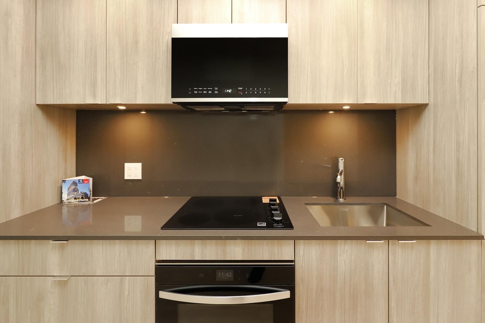 • Sleek kitchen featuring contemporary finishes and quality appliances.