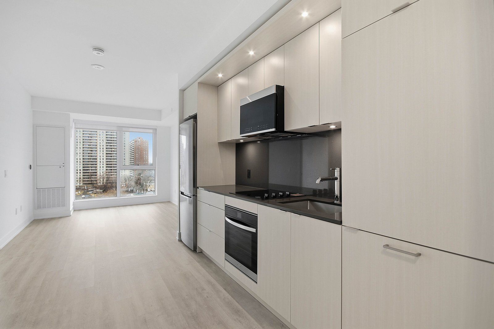 Welcome to westerly i by tridel! Large 1+den unit available with parking available immediately. This sunfilled west facing unit will remain bright throughout the day! No waste of space! Walk into an open concept kitchen/dining area with lots of storage, built in stainless steel appliances and under the cabinet lighting. Large living room offers clear west views of the school while the den is large enough to fit a single bed. Large 4 pc bathroom offers a linen shelf. Westerly i is more of a botique style building that offers a cozy lobby in the city, a good sized gym, grand party room. This building is perfect for commuters and those who work from home. There's ample of visitor parking offered in the building. Come be one of the first residents in the building today! $75. 00 discount on monthly rent if tenant moves in before april 10, 2026 making the net rent of $2150. 00.