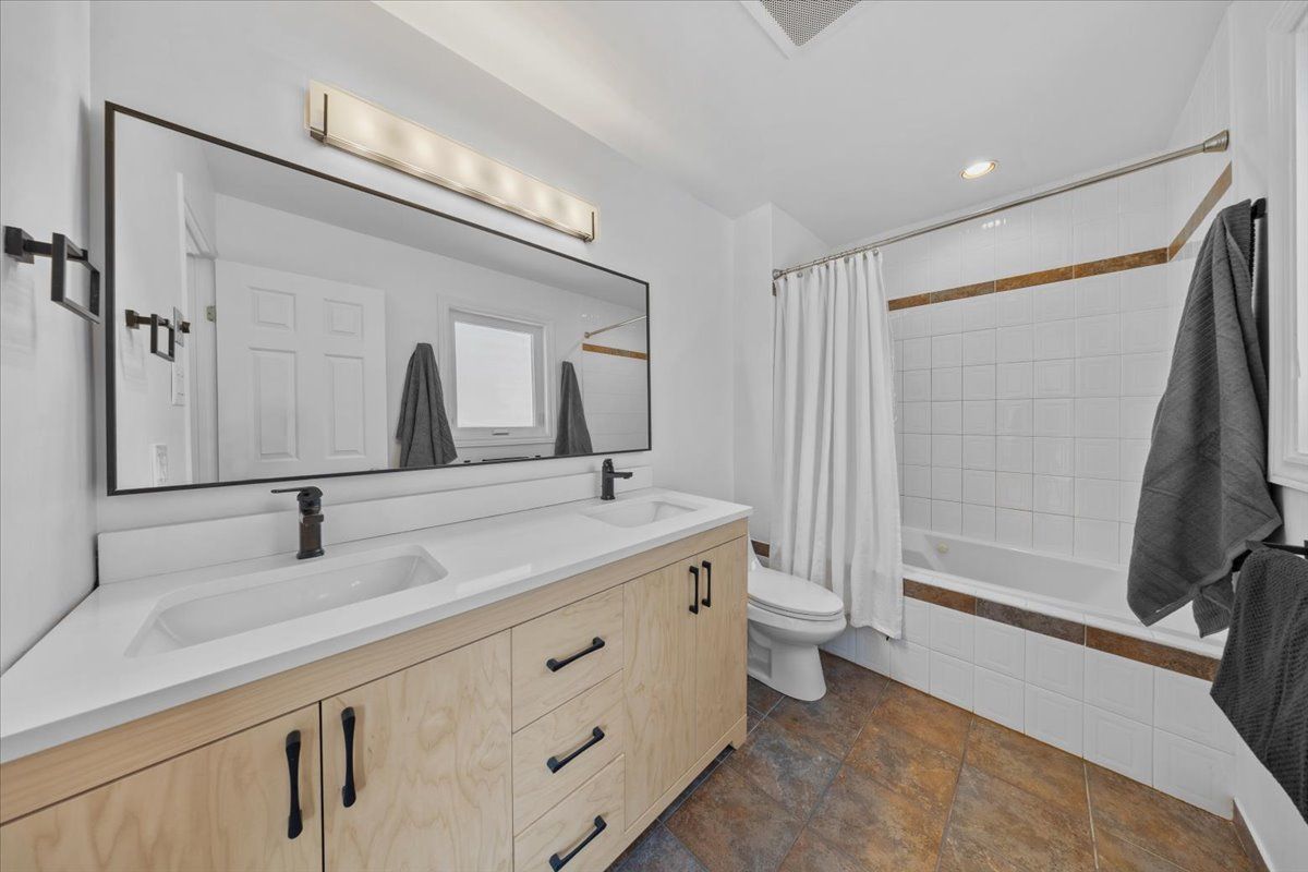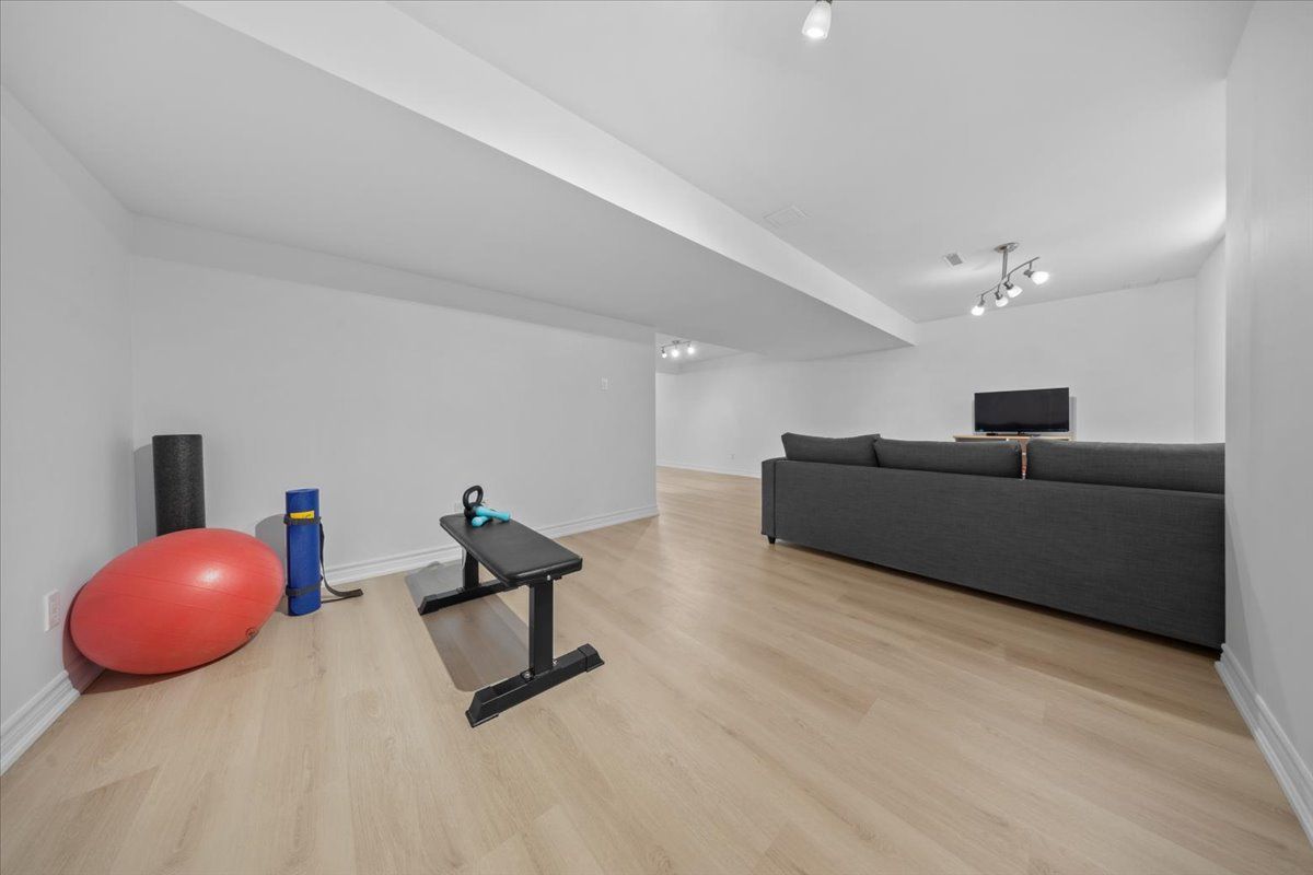 • Fully finished basement includes space for recreation, office, and gym activities.