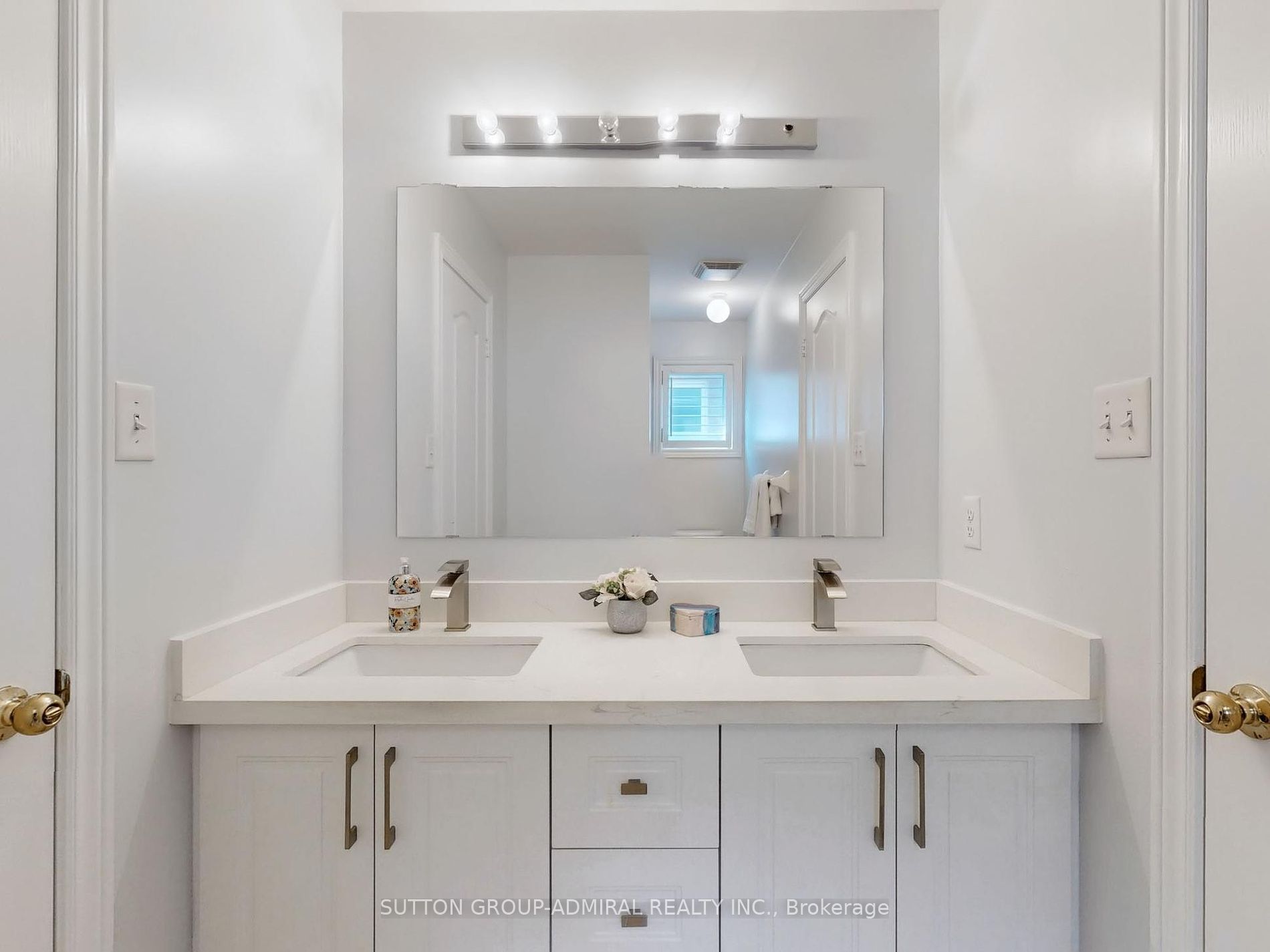 Beautifully renovated, bright and modern family home in prime thornhill woods. Located on a quiet, child-friendly street, this home features 4 bedrooms, 5 bathrooms, and a finished basement. Highlights include hardwood floors, pot lights, porcelain tiles, quartz countertops, built-ins, and california shutters throughout. Outside, enjoy the extended interlock driveway , no sidewalk, interlocked backyard, and custom front door.. A must-see-book your priate showing today1