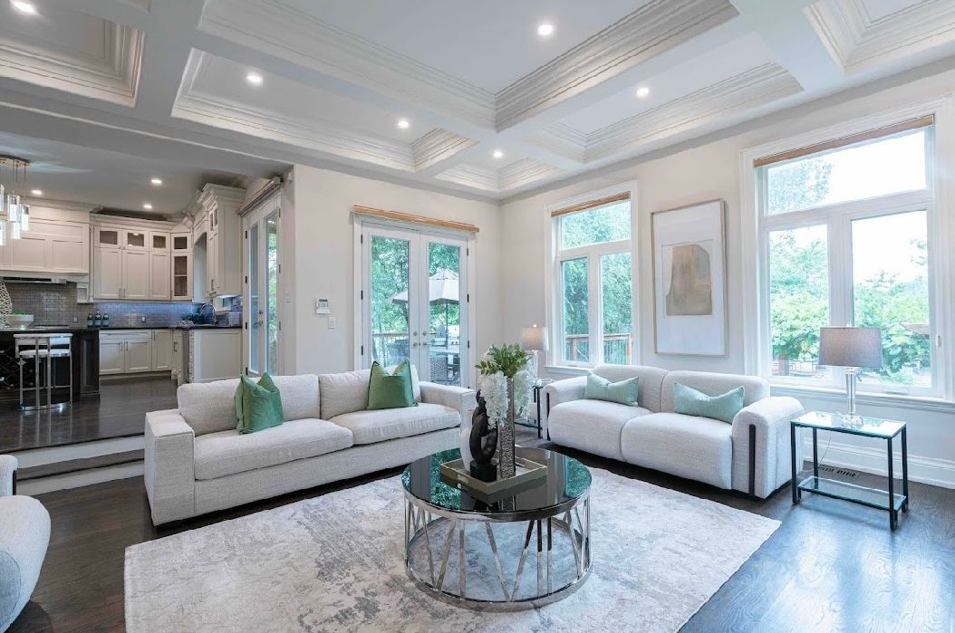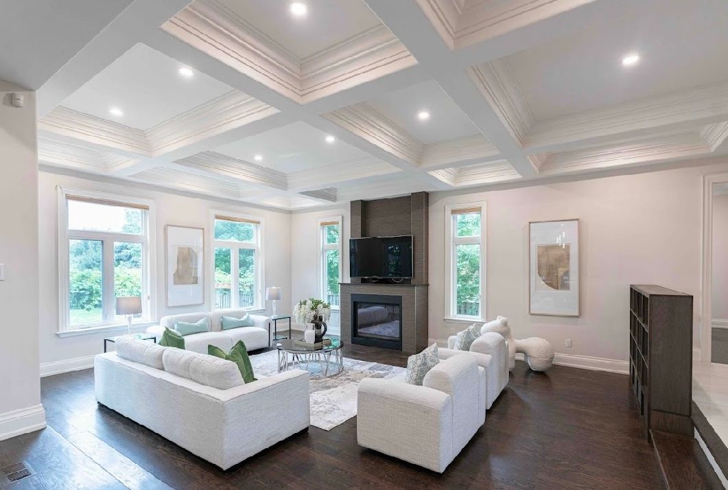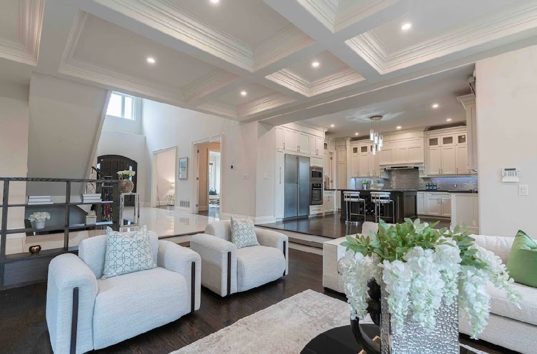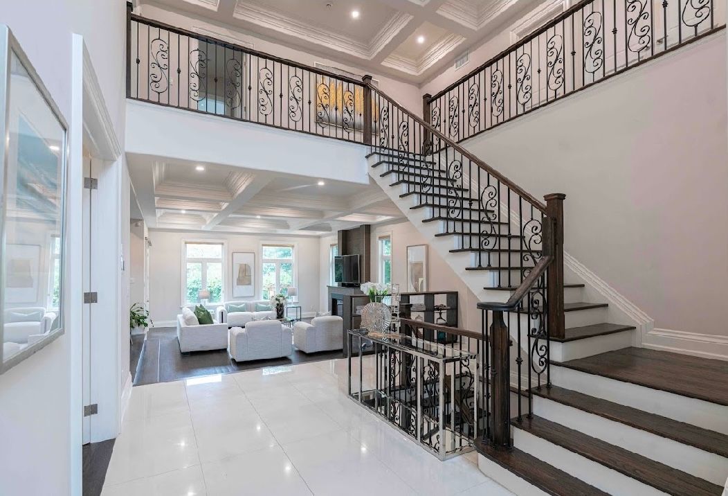 • Elegant entrance with a stunning coffered ceiling and stone foyer.
