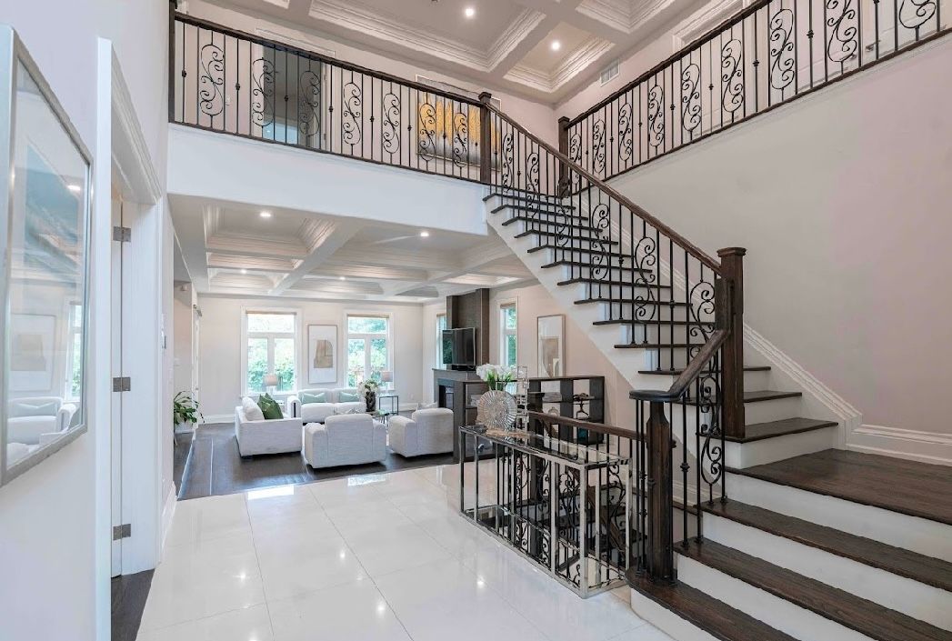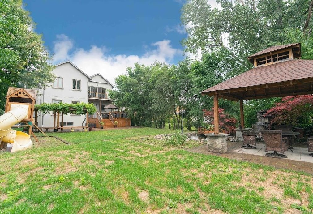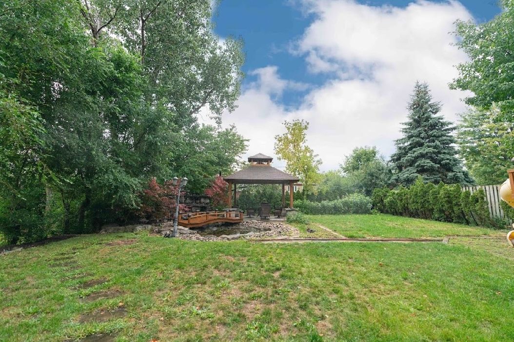 Elegant & exquisite custom home nestled on a choice street, 4322sf+fins bsmt. White oak solid wood entrance door, 20 feet coffered ceiling with plaster moulding & stone ground floor foyer, oak hardwood floor main&2nd floor ,pot lights through whole building, oak staircase + wrought iron railing, 11 feet great room, 10 feet master&2nd master, 2 fireplaces, 2 en-suite bathroom with water jet& rain shower, terrace... The homeowner spent $120,000 upgrading the backyard pavilion, artificial rockery, pond, and slide.