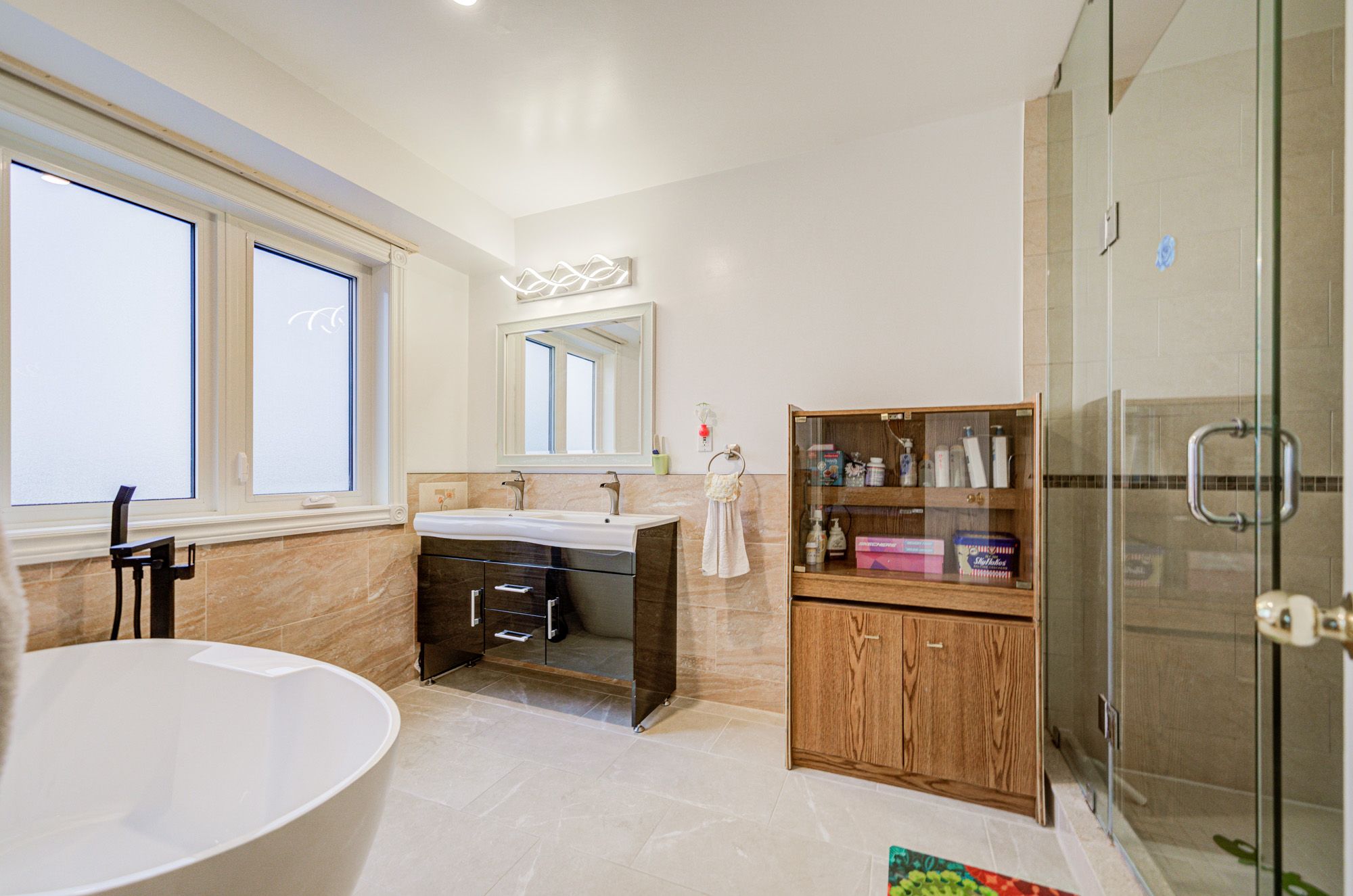 Welcome to this immaculate and beautifully maintained 5 bedrooms all-brick home. Featuring soaring 9-ft ceilings with abundant windows that fill the home with natural light all day long. This home offers an exceptional sense of space and brightness. Total of 2416 sq ft above-grade space (excluding basement). Recently renovated with extensive upgrades throughout. The main floor showcases new oversized porcelain floors, refinished cabinetry, elegant crown moulding, and modern light fixtures. Designed for both comfort and entertaining, the home features a warm and cozy functional layout where the living room, dining room, and family room are seamlessly combined, creating a spacious yet inviting setting for everyday living and gatherings. Enjoy the hardwood flooring, fresh painting and updated windows (3-4 years) throughout. A city-approved custom-built sunroom adds valuable additional living space and enhances the home's functionality and enjoyment. The chef-style kitchen is thoughtfully designed with granite countertops, a matching backsplash, breakfast bar, and serving hatch, ideal for family meals and hosting guests. The second floor offers five generously sized bedrooms, including two bedrooms with walk-in closets. Upgraded bathrooms featuring sleek frameless glass showers, standalone shower tub and double sink countertop. The fully finished basement includes a separate entrance, two ensuite bedrooms, a full kitchen, a separate laundry and a large recreation room, providing excellent rental potential. All in walking distance to pacific mall, top ranked milliken mills high school w/ ib program, highgate ps, library, ttc, yrt, supermarkets. Most convenient location in markham and absolutely move in ready condition! Show with confidence!