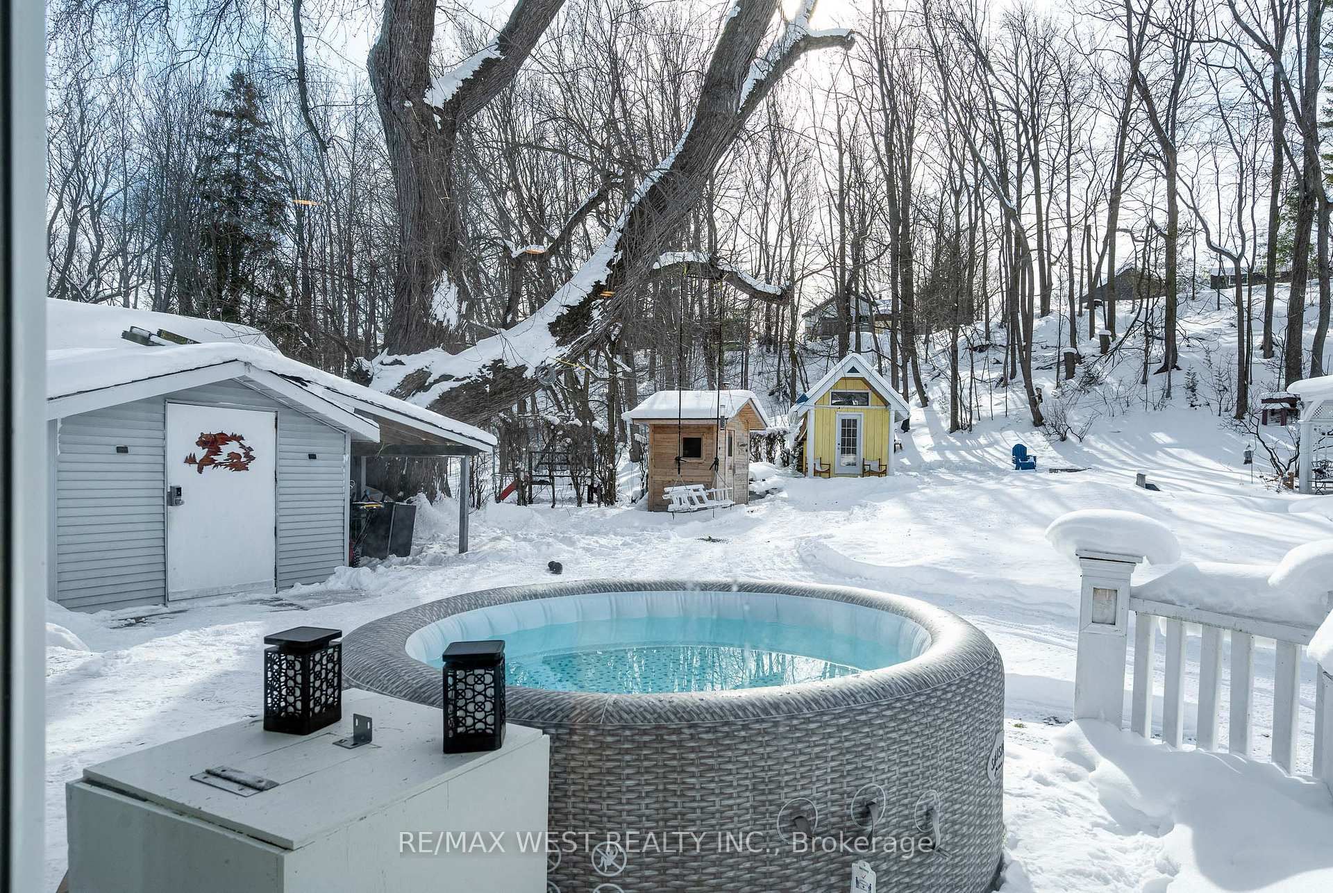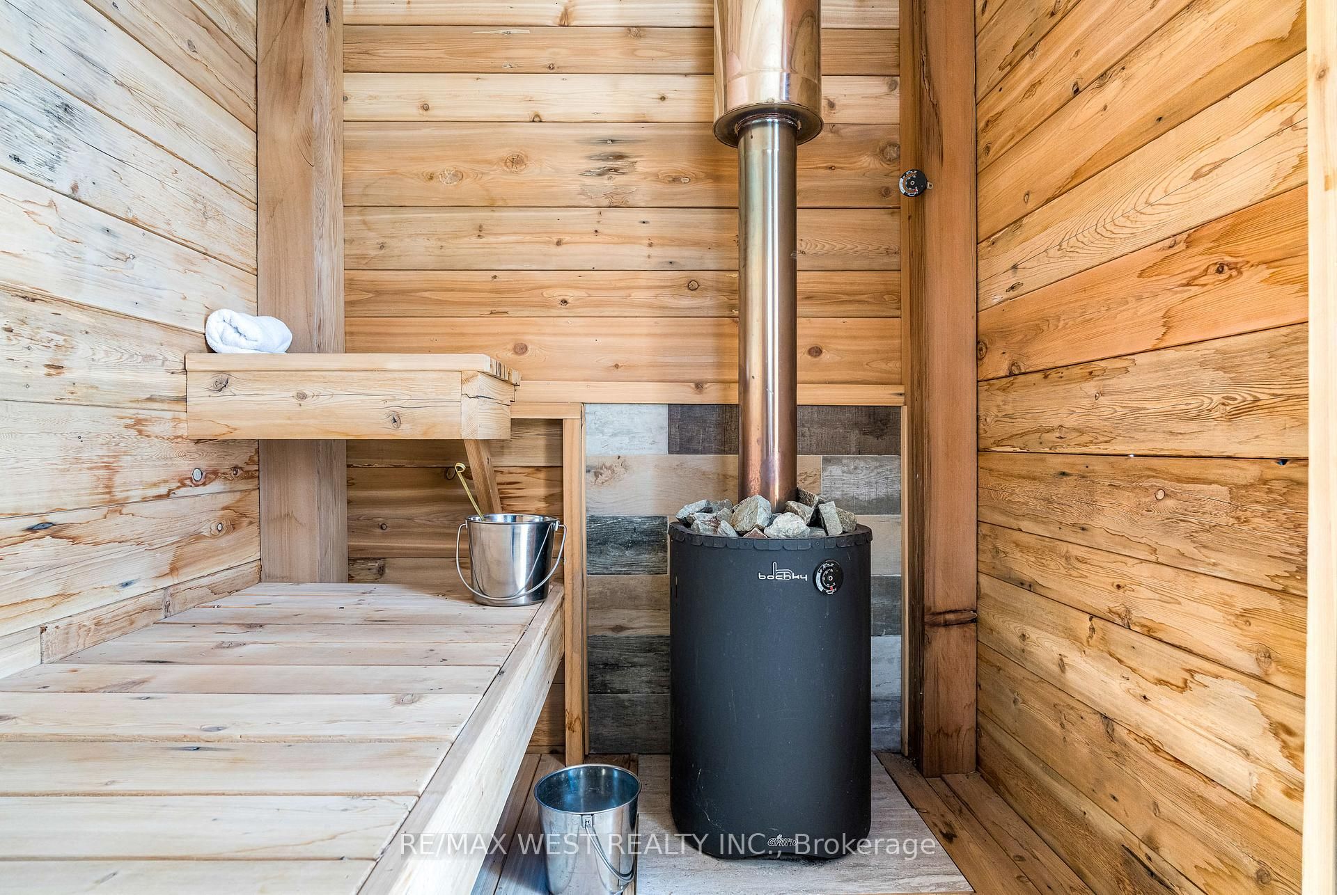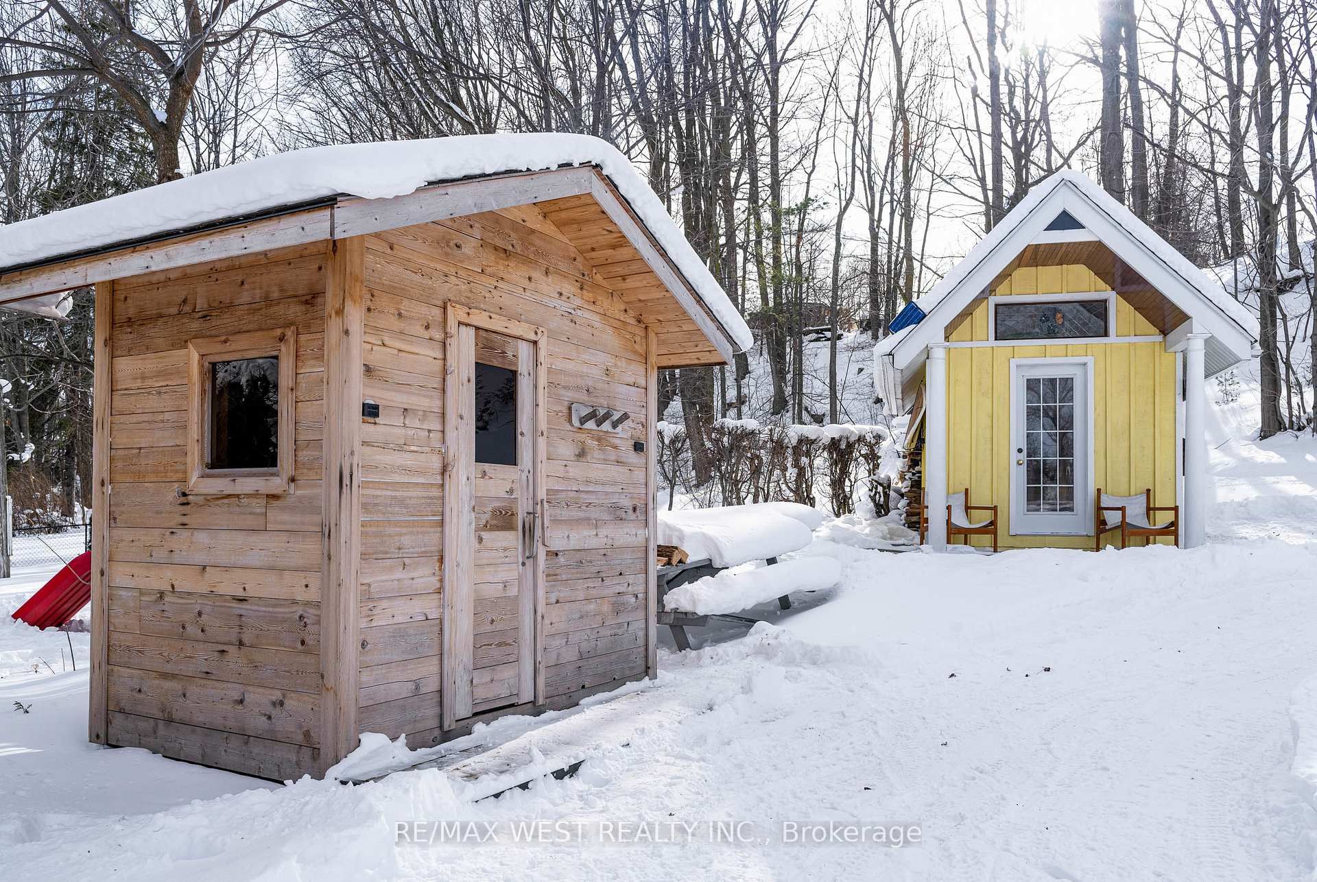 • Private outdoor retreat featuring a wood-burning sauna and custom playhouse.