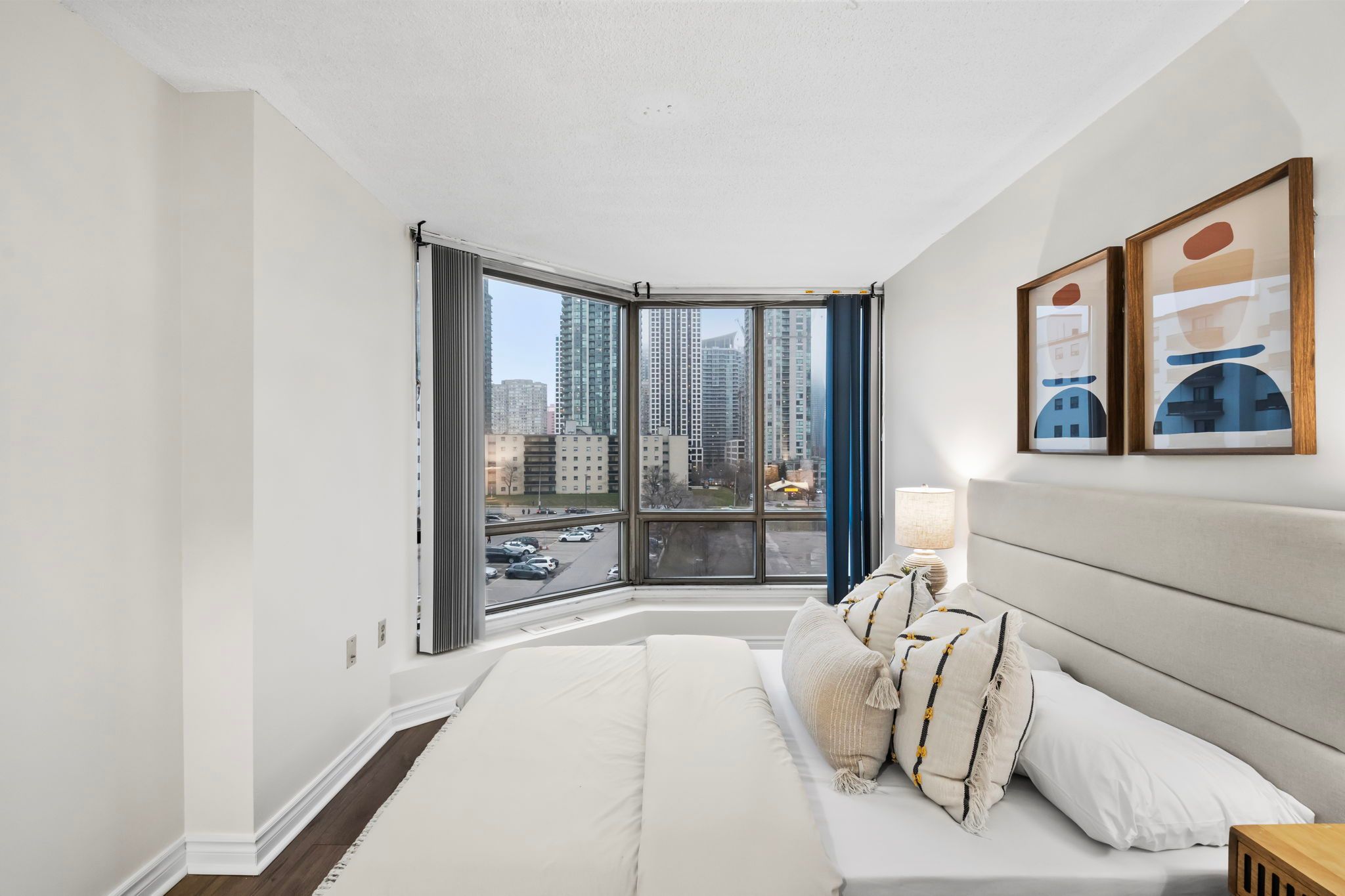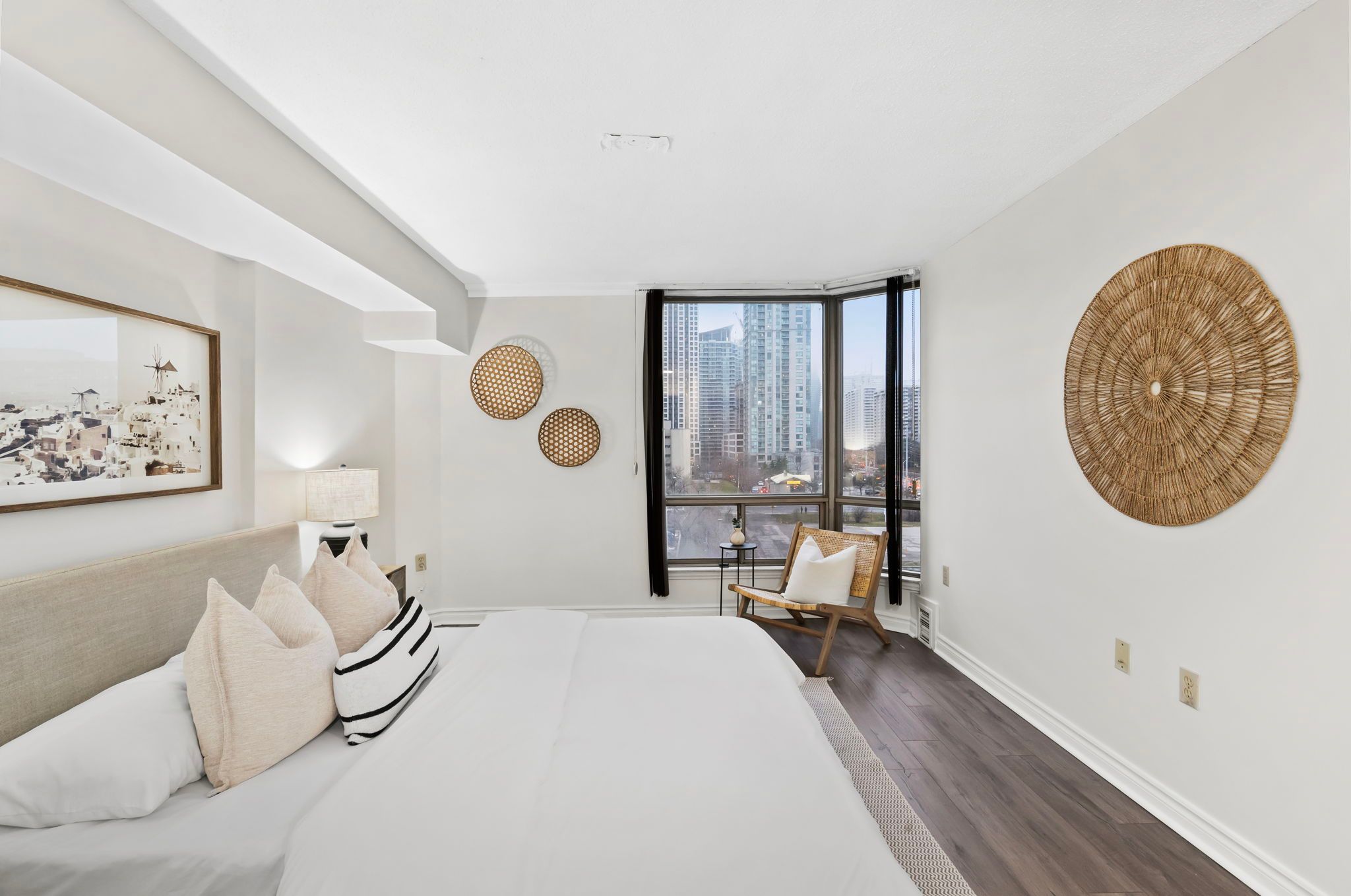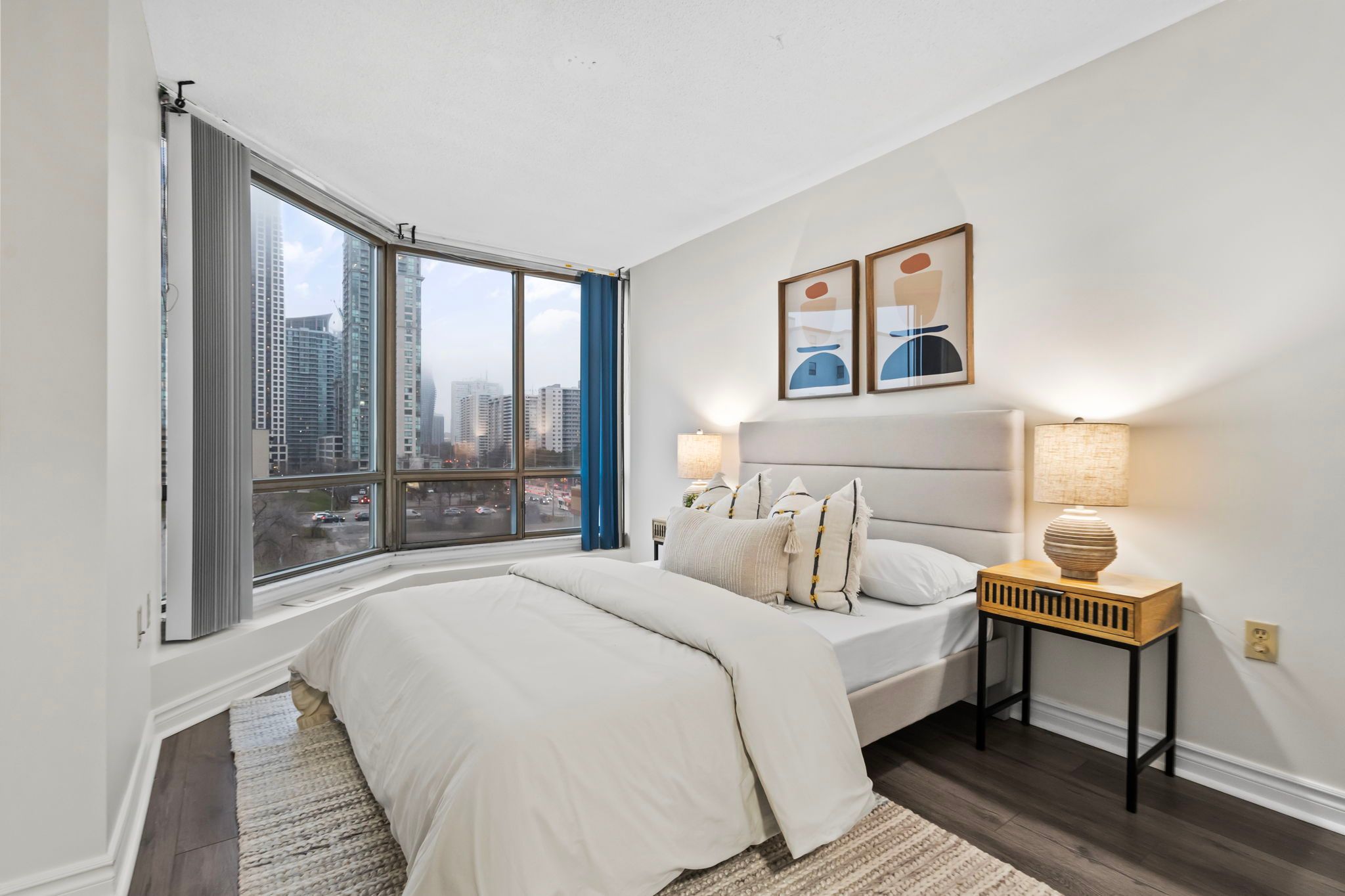 Bright and spacious condo with 2-bedrooms, 2 full bathrooms and 2 underground parking spots in a prime mississauga location, offering a functional open-concept layout designed for comfortable urban living. The sun-filled living and dining area features floor-to-ceiling windows that bring in abundant natural light and scenic views, while the modern kitchen offers ample cabinetry and a cozy breakfast nook for everyday dining. The primary bedroom includes a walk-in closet and private 3-piece ensuite, complemented by a generously sized second bedroom and an additional full bathroom, ideal for guests, family, or a home office. In-suite laundry adds everyday convenience, while residents enjoy access to premium building amenities including a fitness centre, indoor pool, sauna, party room, and 24-hour concierge service. Ideally located just steps from square one shopping centre, public transit, parks, and major highways, this condo offers an excellent blend of comfort, convenience, and lifestyle in the heart of mississauga.