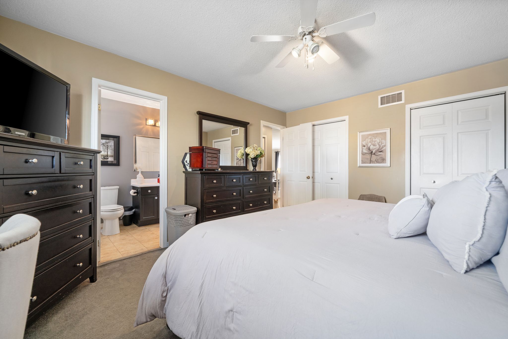 • Spacious primary bedroom with cheater door to main bath for convenience.