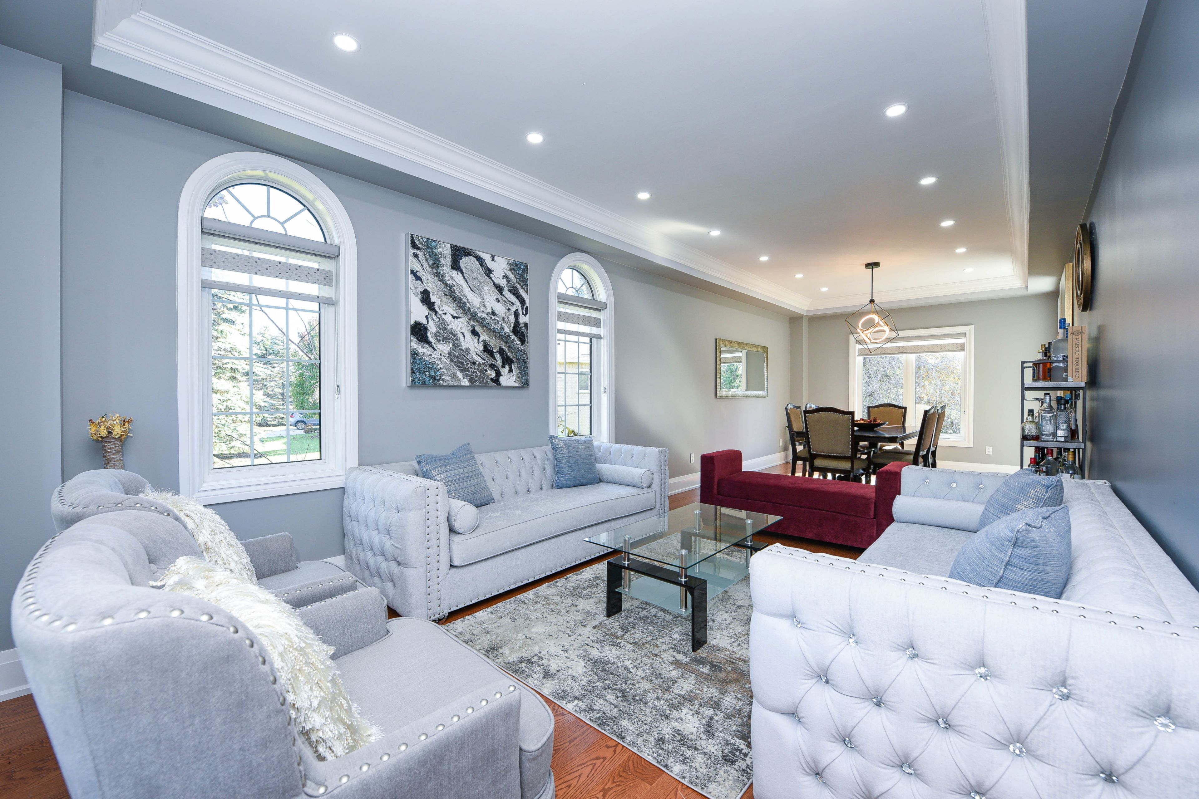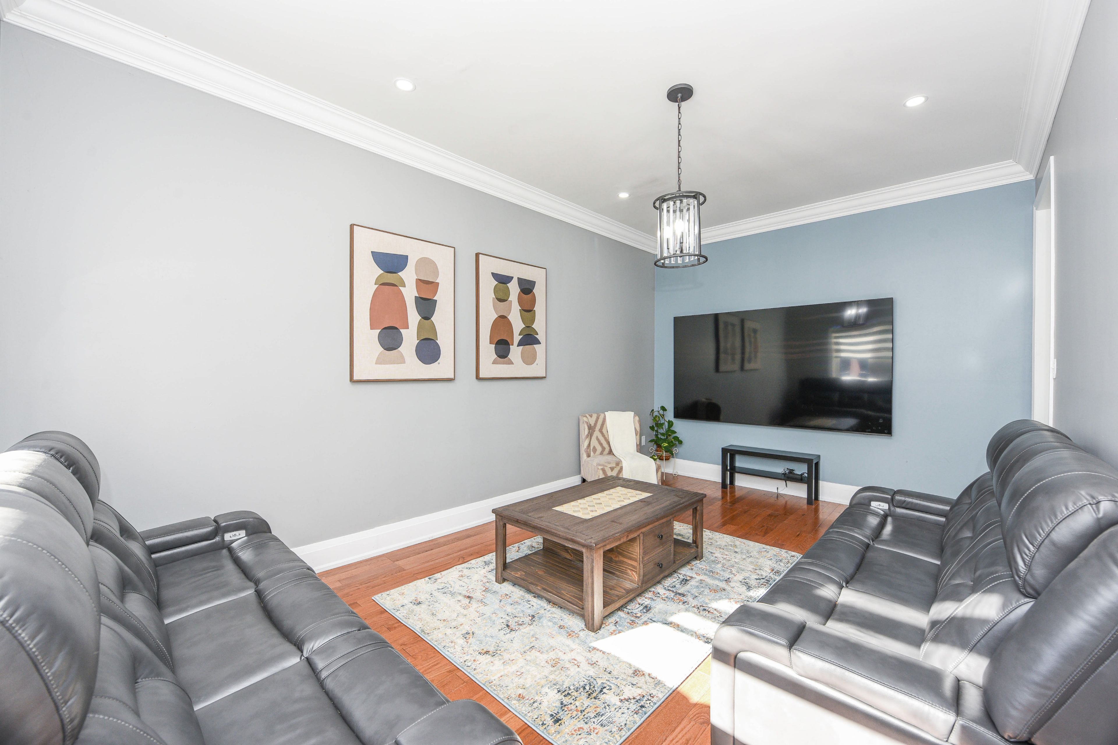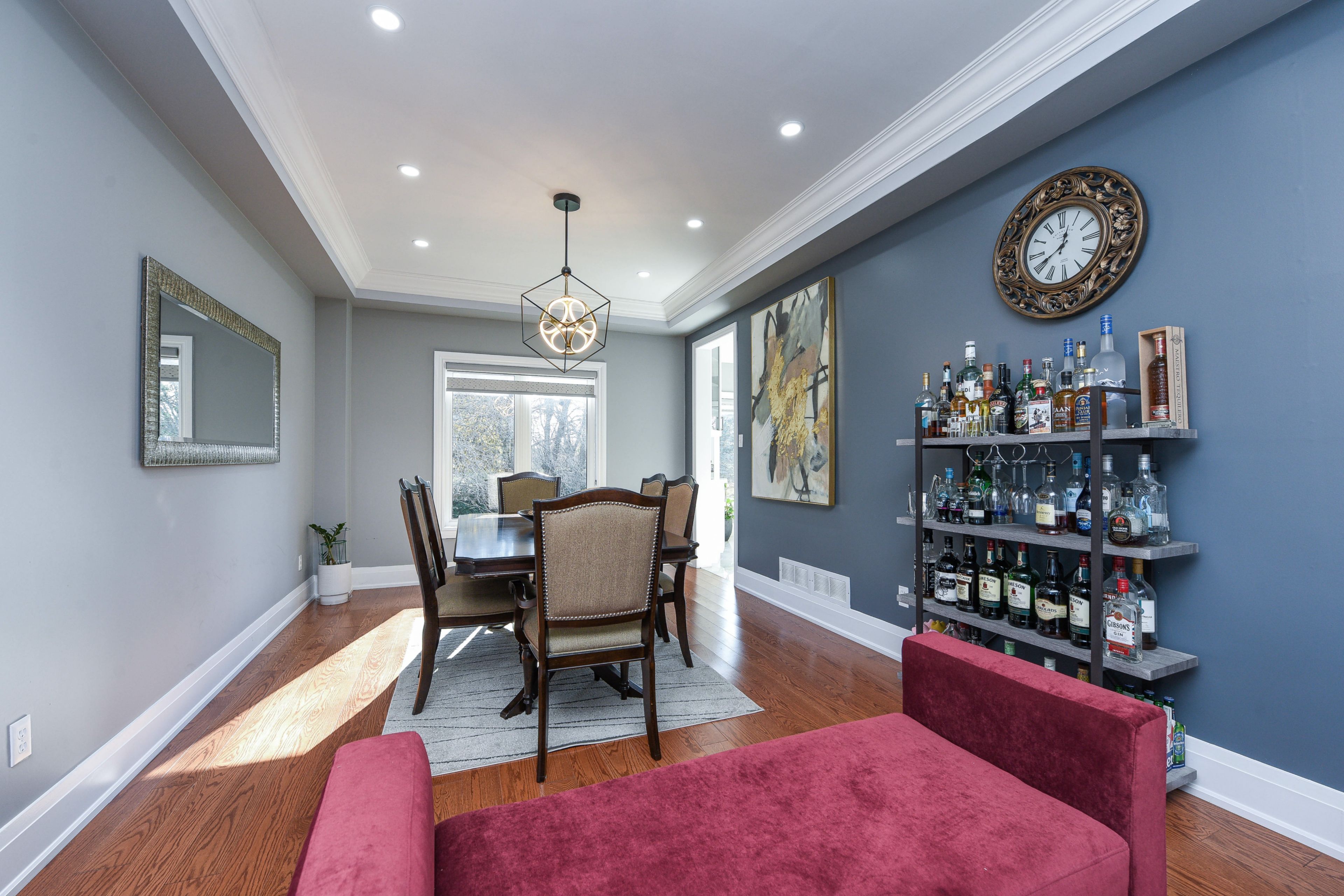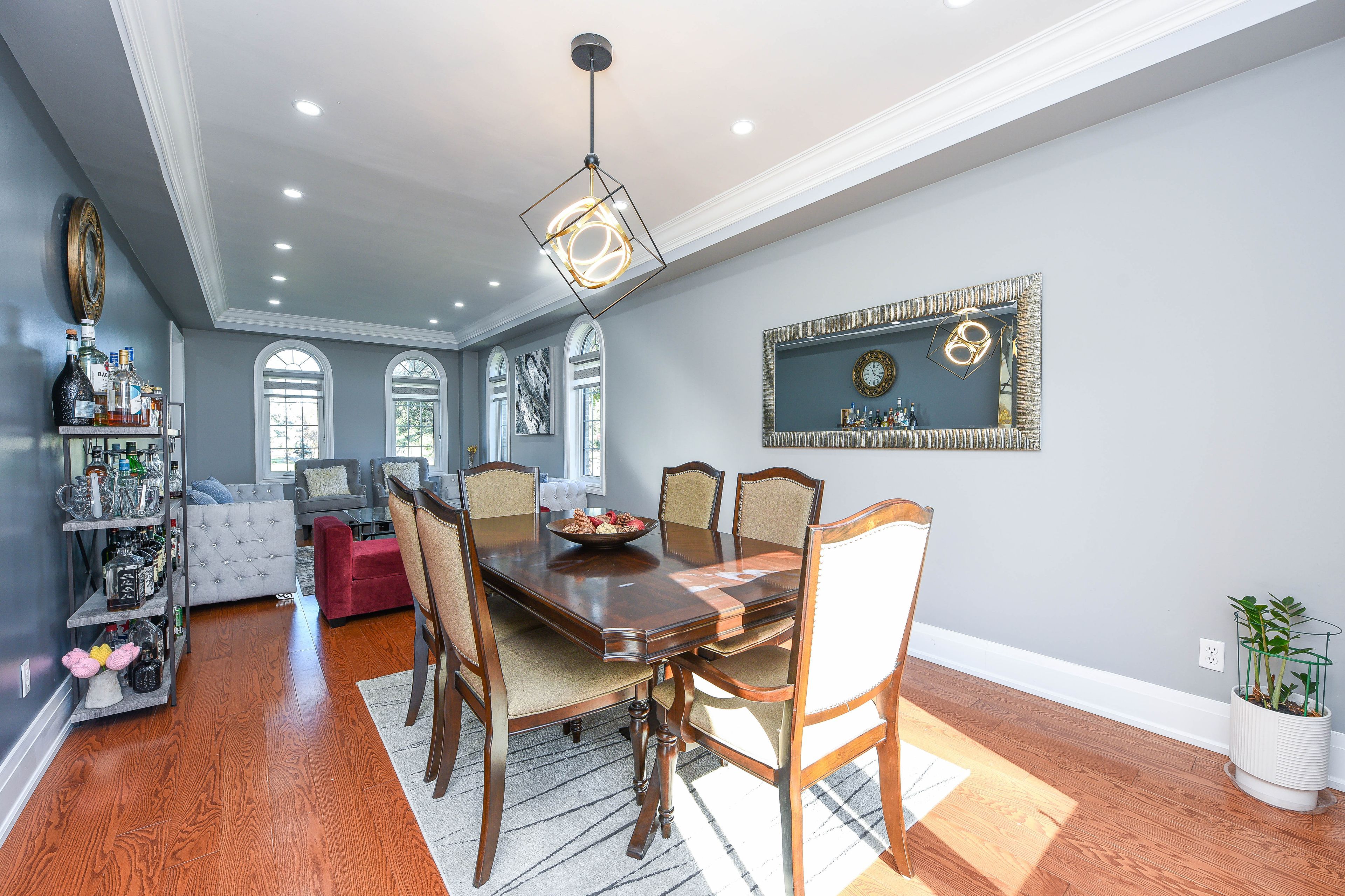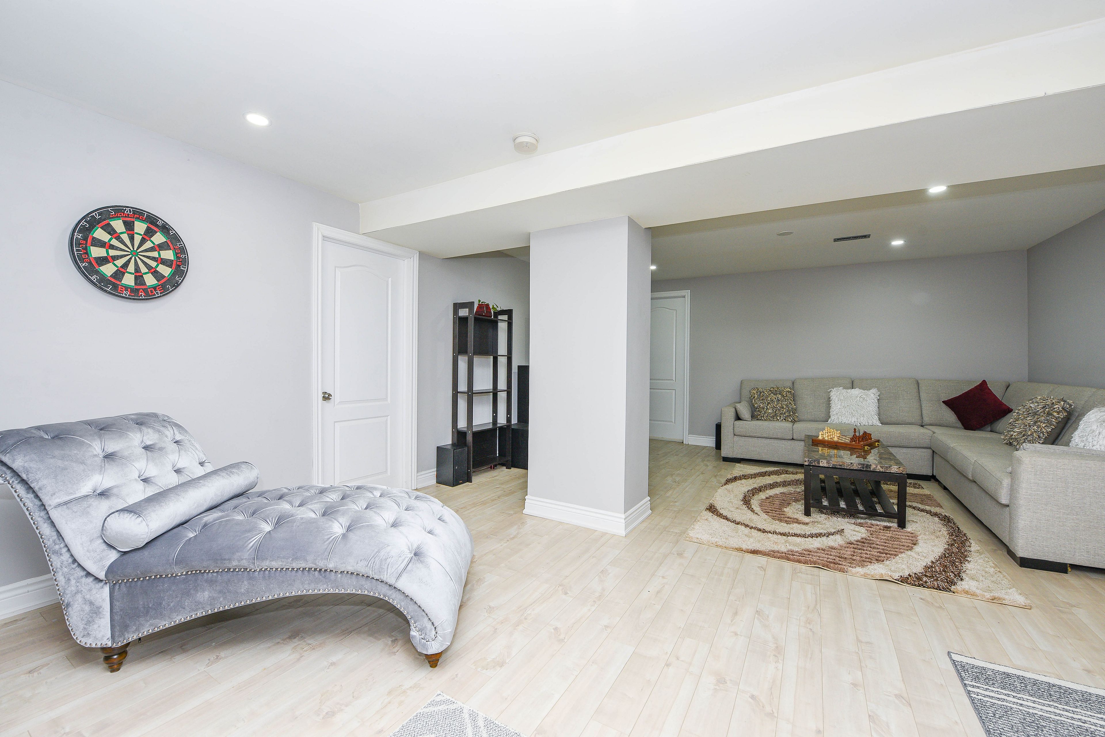 • Finished basement featuring a second kitchen and rec room for family gatherings.