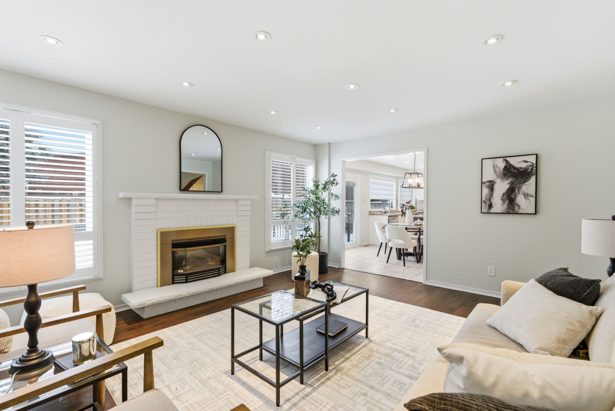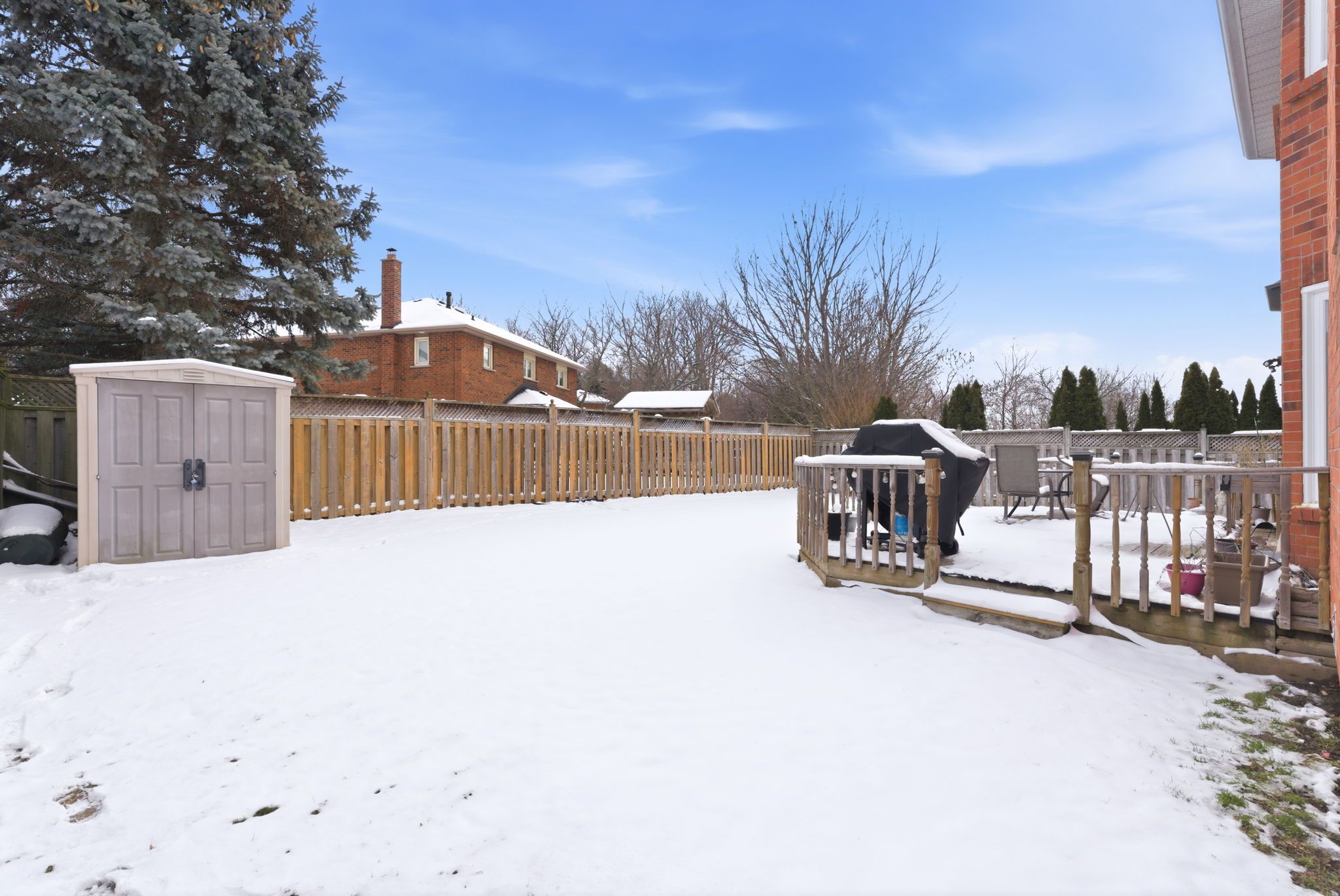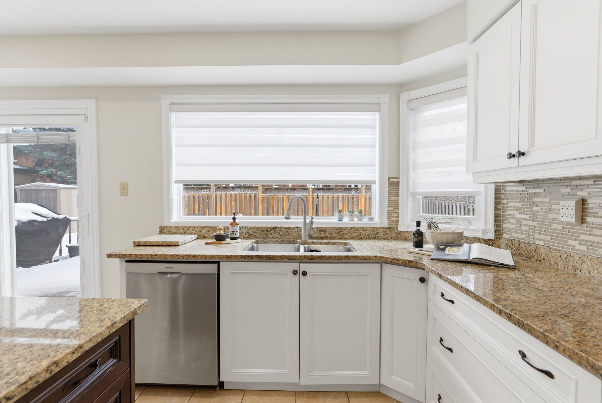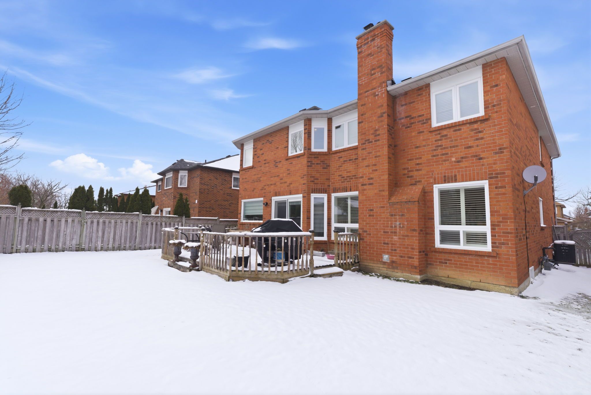 Step into this beautifully updated home featuring an incredible foyer with soaring ceilings that create a grand first impression. Freshly painted throughout and enhanced with custom blinds, the home offers a bright, clean, and modern feel from top to bottom. Tiled flooring runs through the main high-traffic areas, complemented by elegant pot lights both inside and along the front exterior, set on a timer for added convenience. The main level offers a thoughtful and functional layout, including spacious living and dining rooms with hardwood flooring, crown moulding, and stunning bay windows that fill the space with natural light. The well-appointed kitchen features granite countertops, a centre island, a custom backsplash and stainless steel appliances, seamlessly connecting to a generous breakfast area with a walkout to the deck, perfect for everyday living and entertaining. The cozy family room showcases hardwood flooring, a gas fireplace, and pot lights, creating a warm and inviting atmosphere. A large main floor office with french doors provides an ideal work-from-home space, while the convenient main floor laundry room offers a separate side entrance for added functionality. Upstairs, the expansive primary bedroom retreat features a walk-in closet and a luxurious 5-piece ensuite with a jacuzzi tub, walk-in shower and his and hers vanities. Three additional well-sized bedrooms offer comfortable accommodations for family or guests. The fully finished basement extends the living space with a spacious recreation area complete with a custom bar. It also includes a 3-piece bathroom and a separate room with a closet that can easily function as an additional bedroom. Additional highlights include a staircase that extends all the way to the basement, two garage door openers, a freshly painted driveway for a refreshed exterior finish and a spacious fenced-in backyard. This move-in ready home blends style, comfort, and practicality in every detail.