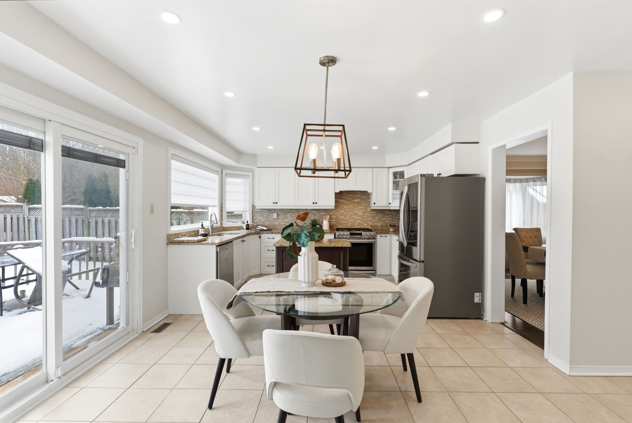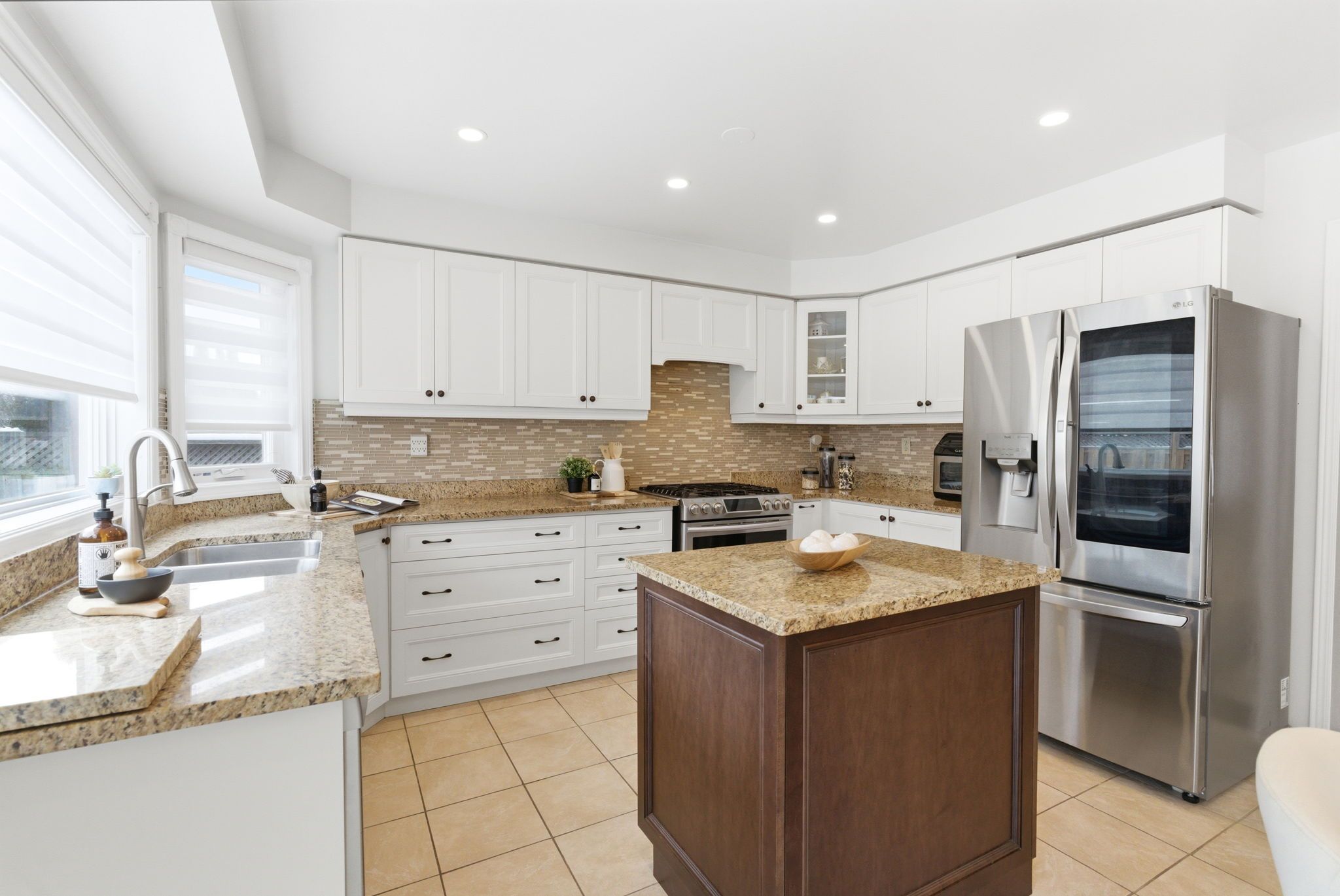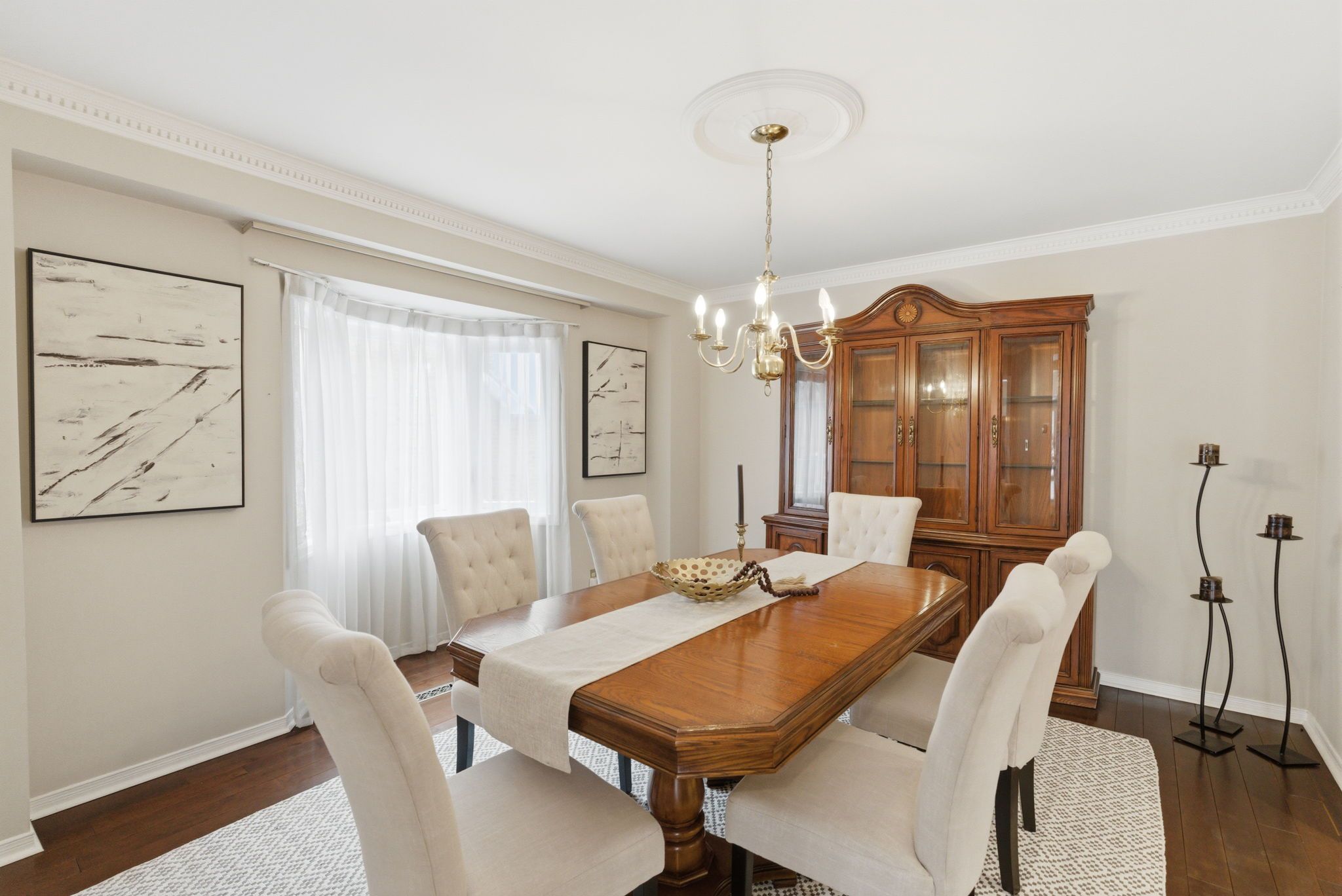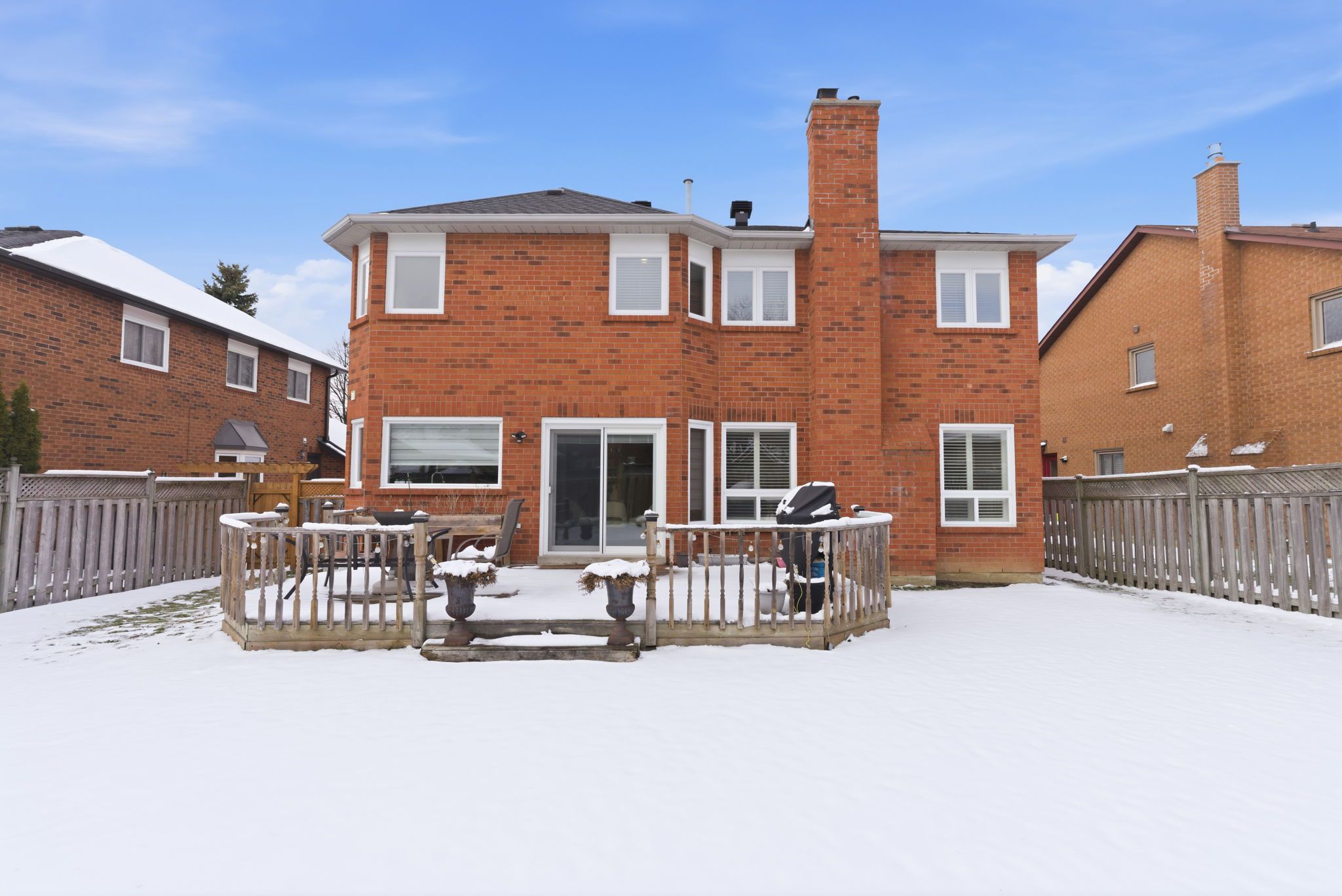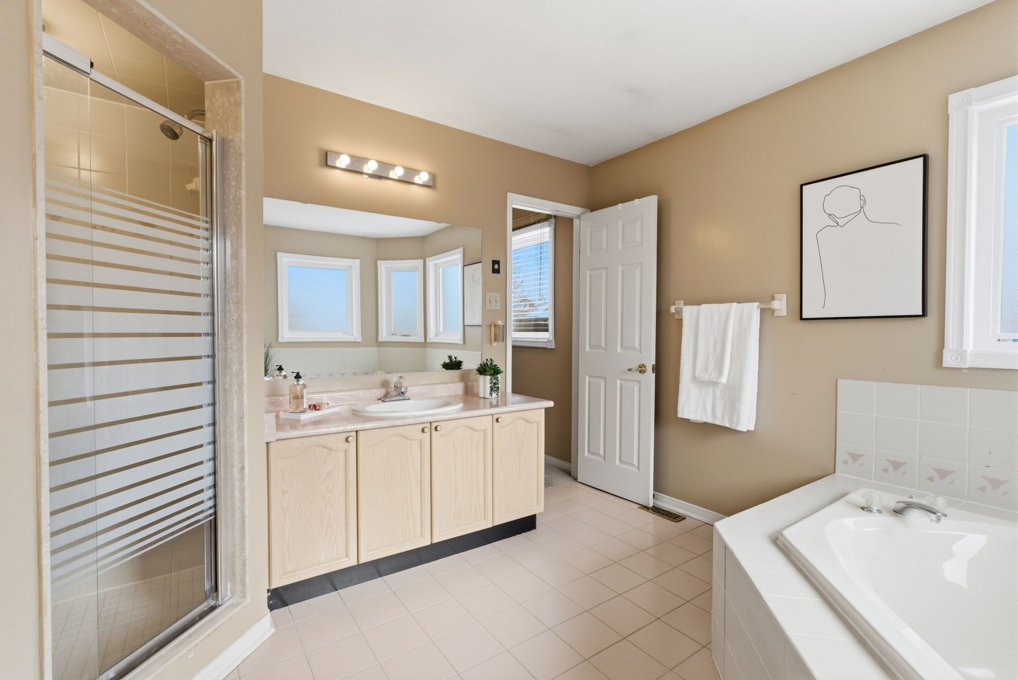 Step into this beautifully updated home featuring an incredible foyer with soaring ceilings that create a grand first impression. Freshly painted throughout and enhanced with custom blinds, the home offers a bright, clean, and modern feel from top to bottom. Tiled flooring runs through the main high-traffic areas, complemented by elegant pot lights both inside and along the front exterior, set on a timer for added convenience. The main level offers a thoughtful and functional layout, including spacious living and dining rooms with hardwood flooring, crown moulding, and stunning bay windows that fill the space with natural light. The well-appointed kitchen features granite countertops, a centre island, a custom backsplash and stainless steel appliances, seamlessly connecting to a generous breakfast area with a walkout to the deck, perfect for everyday living and entertaining. The cozy family room showcases hardwood flooring, a gas fireplace, and pot lights, creating a warm and inviting atmosphere. A large main floor office with french doors provides an ideal work-from-home space, while the convenient main floor laundry room offers a separate side entrance for added functionality. Upstairs, the expansive primary bedroom retreat features a walk-in closet and a luxurious 5-piece ensuite with a jacuzzi tub, walk-in shower and his and hers vanities. Three additional well-sized bedrooms offer comfortable accommodations for family or guests. The fully finished basement extends the living space with a spacious recreation area complete with a custom bar. It also includes a 3-piece bathroom and a separate room with a closet that can easily function as an additional bedroom. Additional highlights include a staircase that extends all the way to the basement, two garage door openers, a freshly painted driveway for a refreshed exterior finish and a spacious fenced-in backyard. This move-in ready home blends style, comfort, and practicality in every detail.