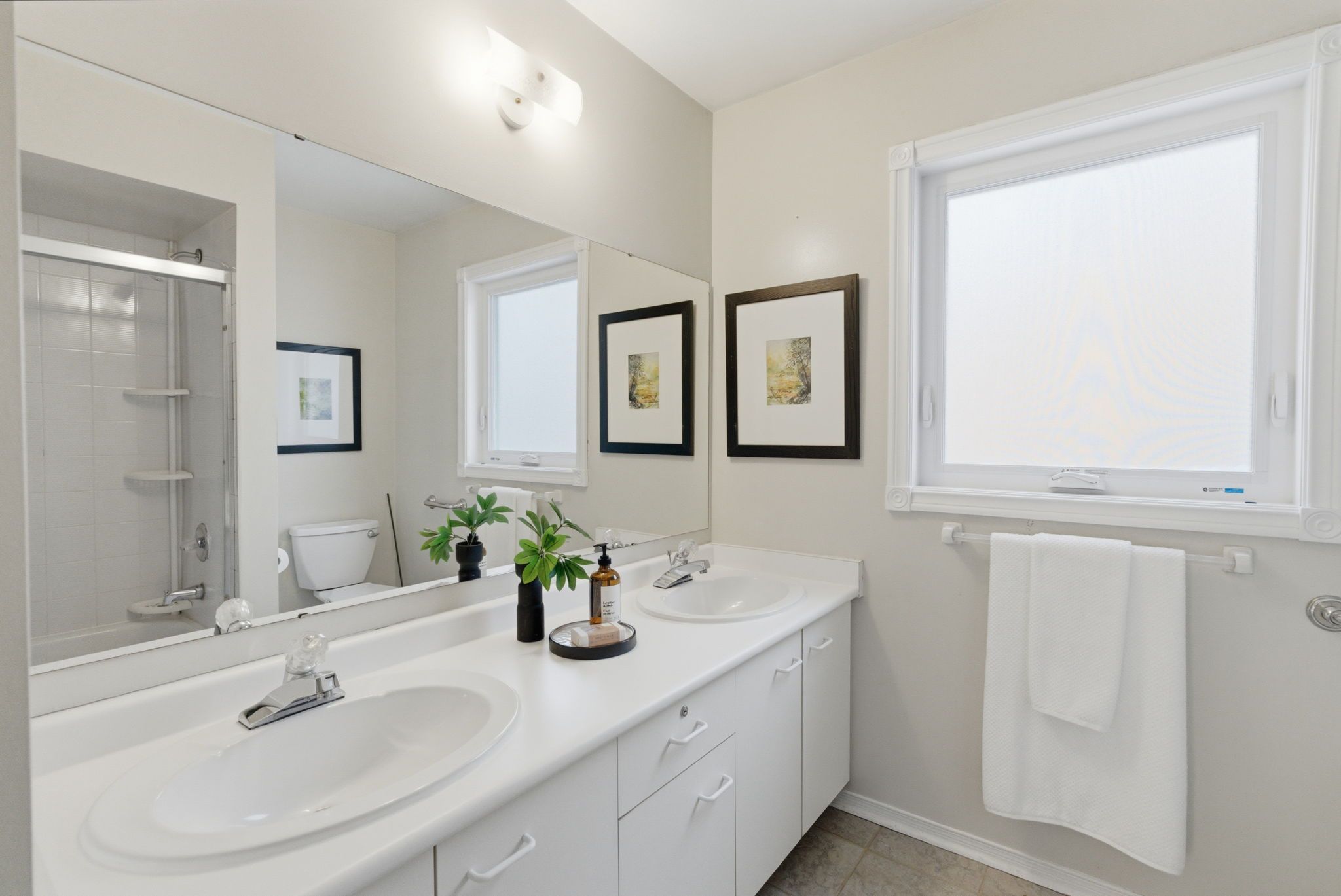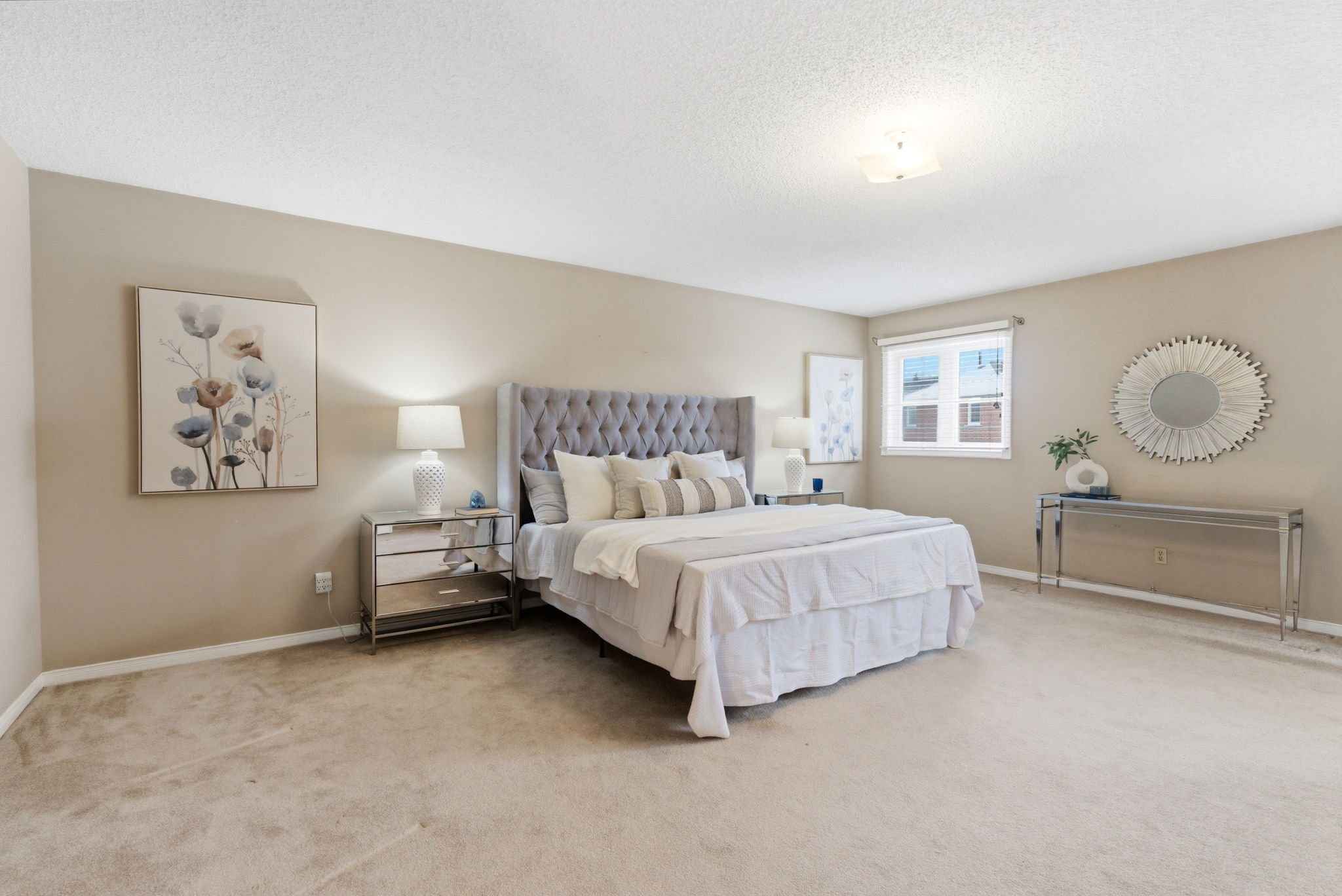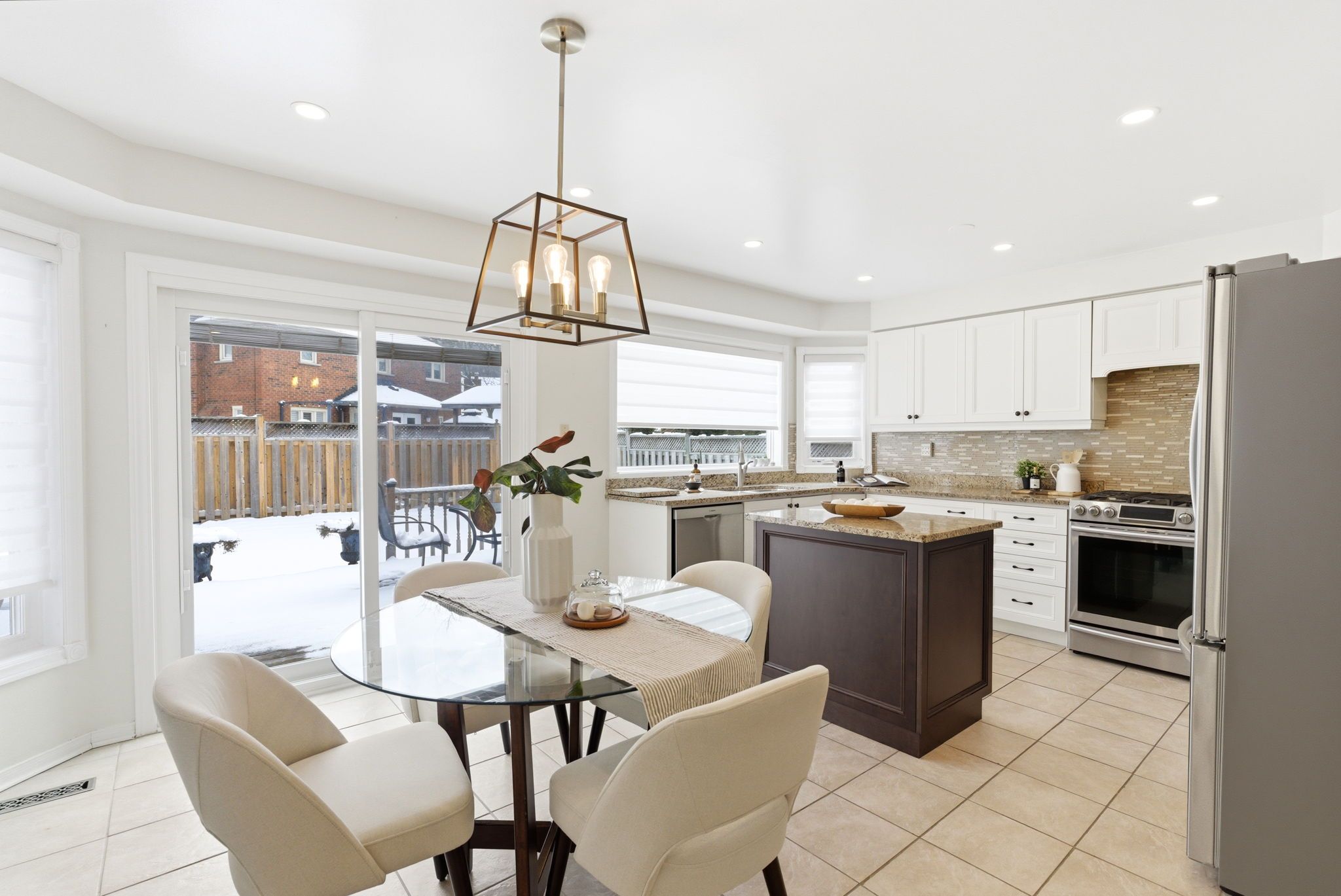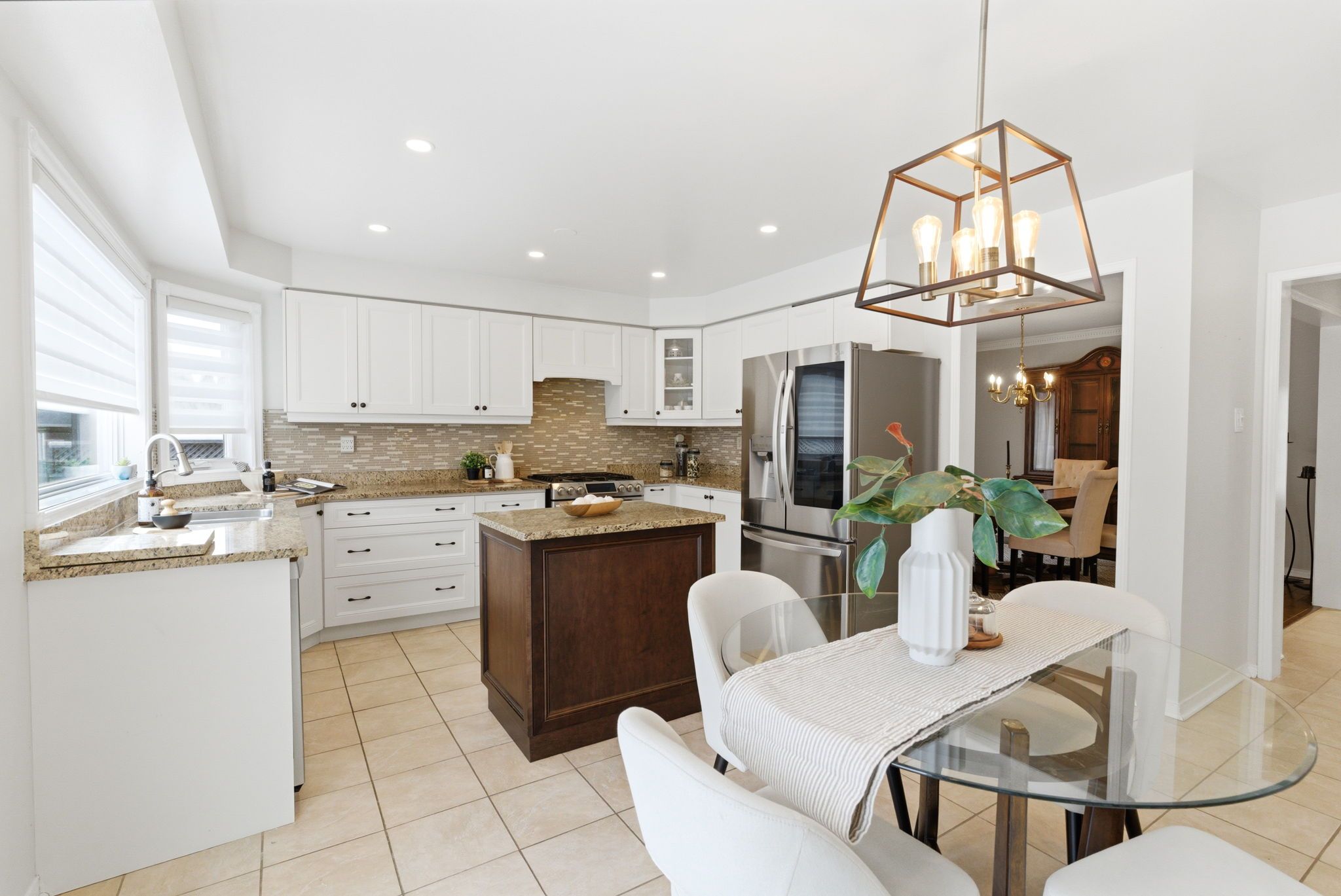 Step into this beautifully updated home featuring an incredible foyer with soaring ceilings that create a grand first impression. Freshly painted throughout and enhanced with custom blinds, the home offers a bright, clean, and modern feel from top to bottom. Tiled flooring runs through the main high-traffic areas, complemented by elegant pot lights both inside and along the front exterior, set on a timer for added convenience. The main level offers a thoughtful and functional layout, including spacious living and dining rooms with hardwood flooring, crown moulding, and stunning bay windows that fill the space with natural light. The well-appointed kitchen features granite countertops, a centre island, a custom backsplash and stainless steel appliances, seamlessly connecting to a generous breakfast area with a walkout to the deck, perfect for everyday living and entertaining. The cozy family room showcases hardwood flooring, a gas fireplace, and pot lights, creating a warm and inviting atmosphere. A large main floor office with french doors provides an ideal work-from-home space, while the convenient main floor laundry room offers a separate side entrance for added functionality. Upstairs, the expansive primary bedroom retreat features a walk-in closet and a luxurious 5-piece ensuite with a jacuzzi tub, walk-in shower and his and hers vanities. Three additional well-sized bedrooms offer comfortable accommodations for family or guests. The fully finished basement extends the living space with a spacious recreation area complete with a custom bar. It also includes a 3-piece bathroom and a separate room with a closet that can easily function as an additional bedroom. Additional highlights include a staircase that extends all the way to the basement, two garage door openers, a freshly painted driveway for a refreshed exterior finish and a spacious fenced-in backyard. This move-in ready home blends style, comfort, and practicality in every detail.