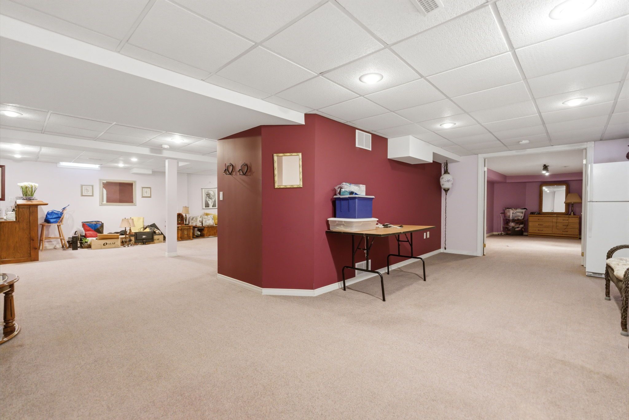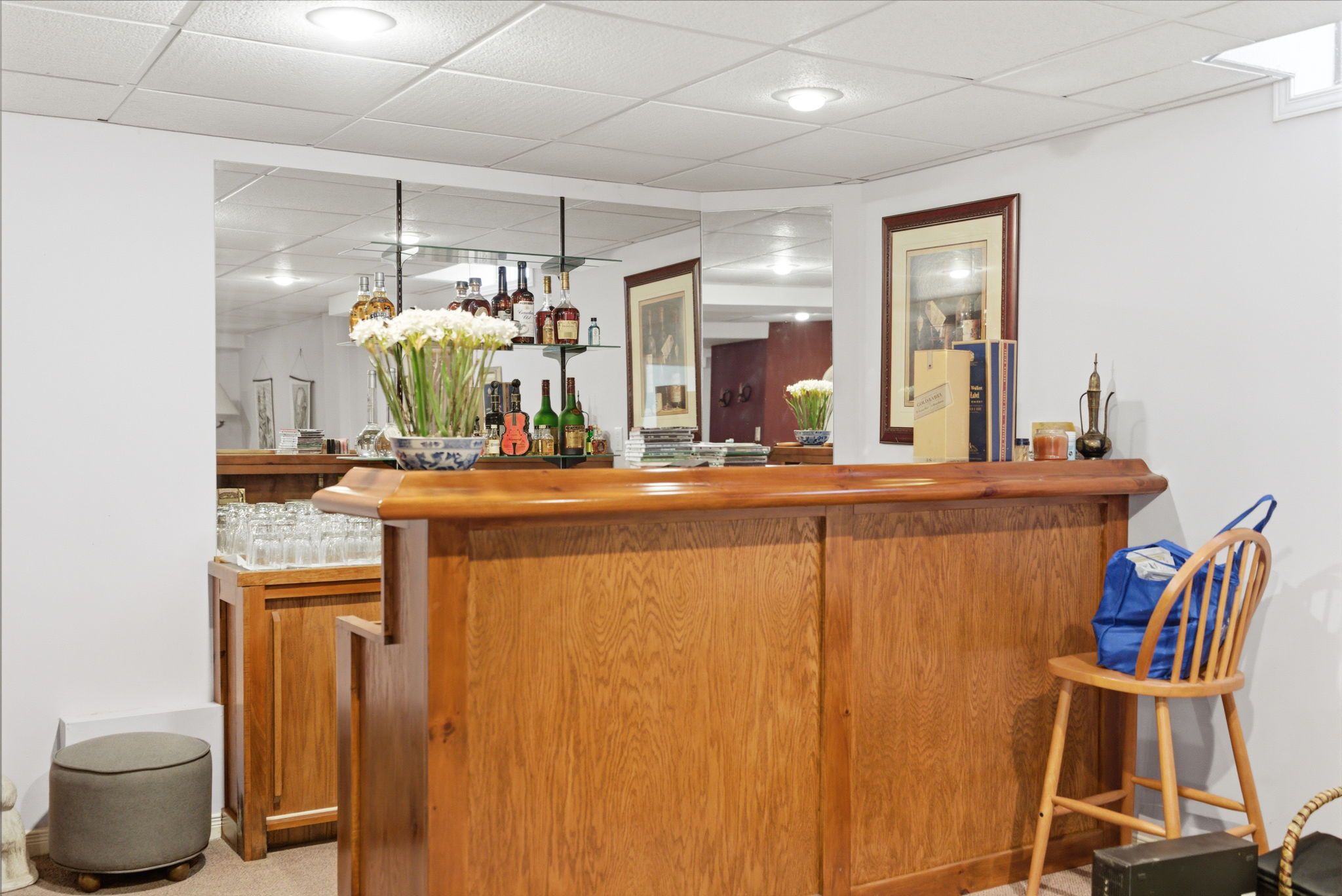 • Fully finished basement with recreation area, custom bar, and additional bedroom option.