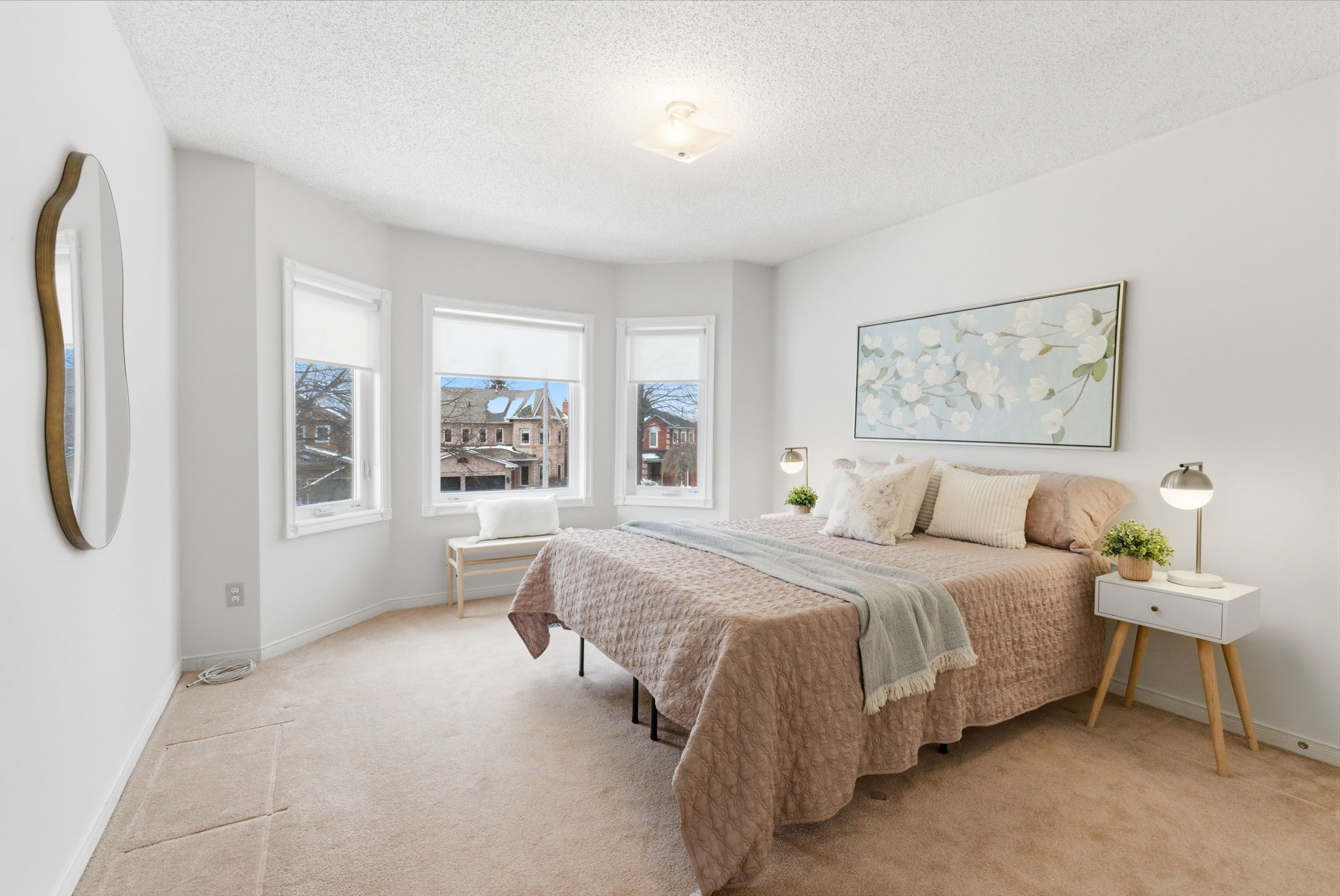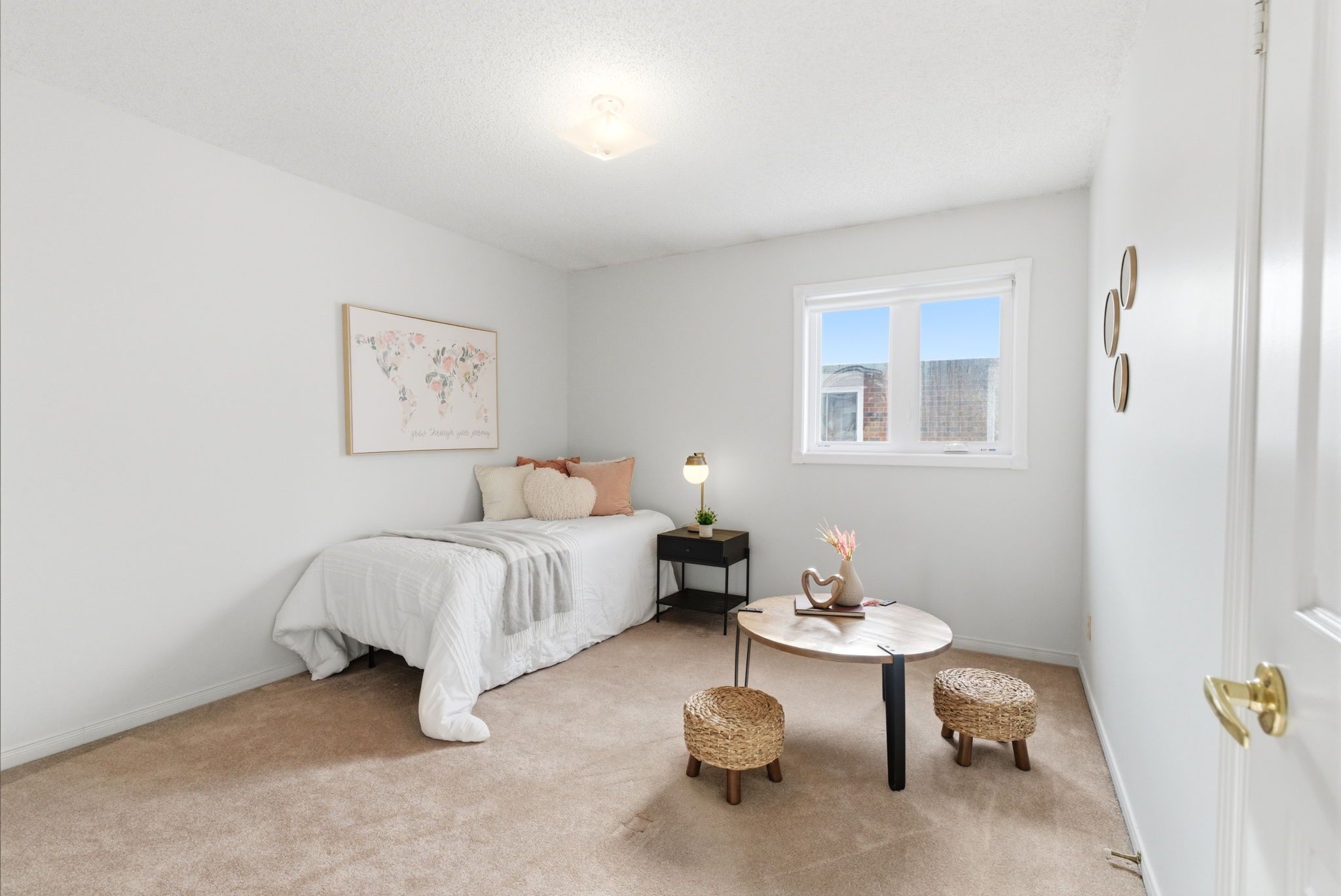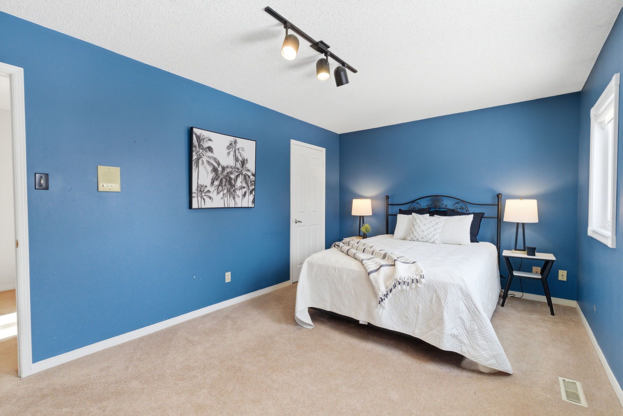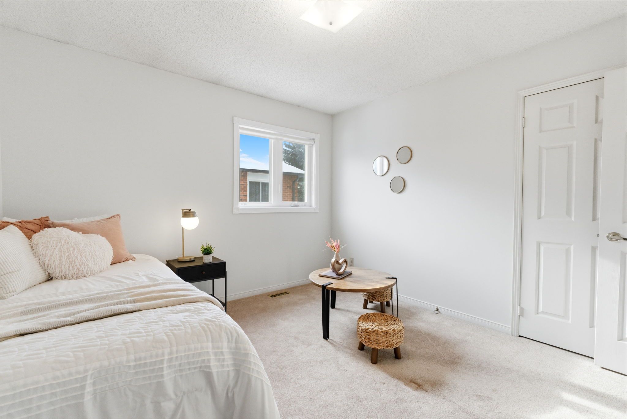 • Bright, modern interior with freshly painted walls and custom blinds.