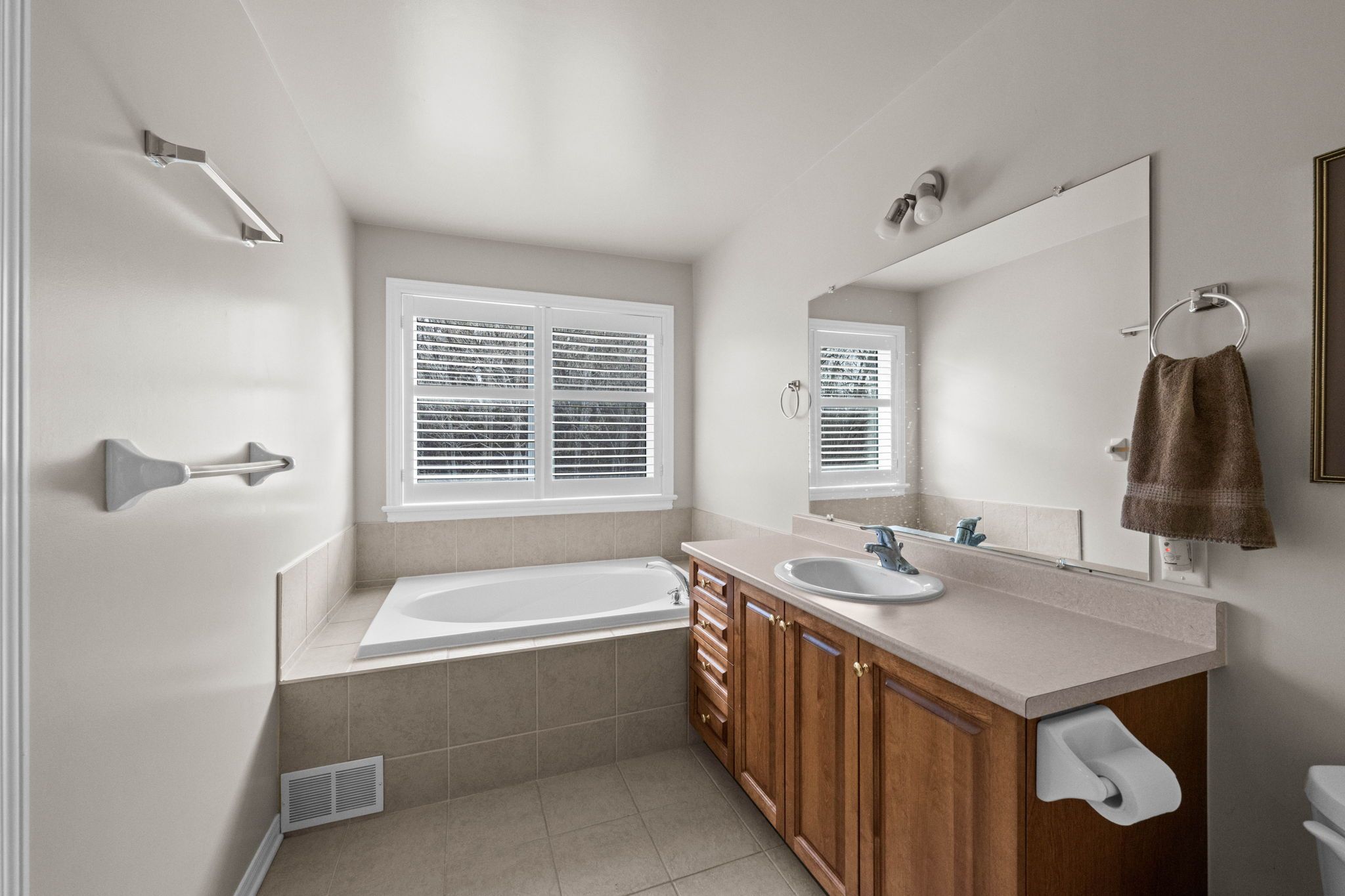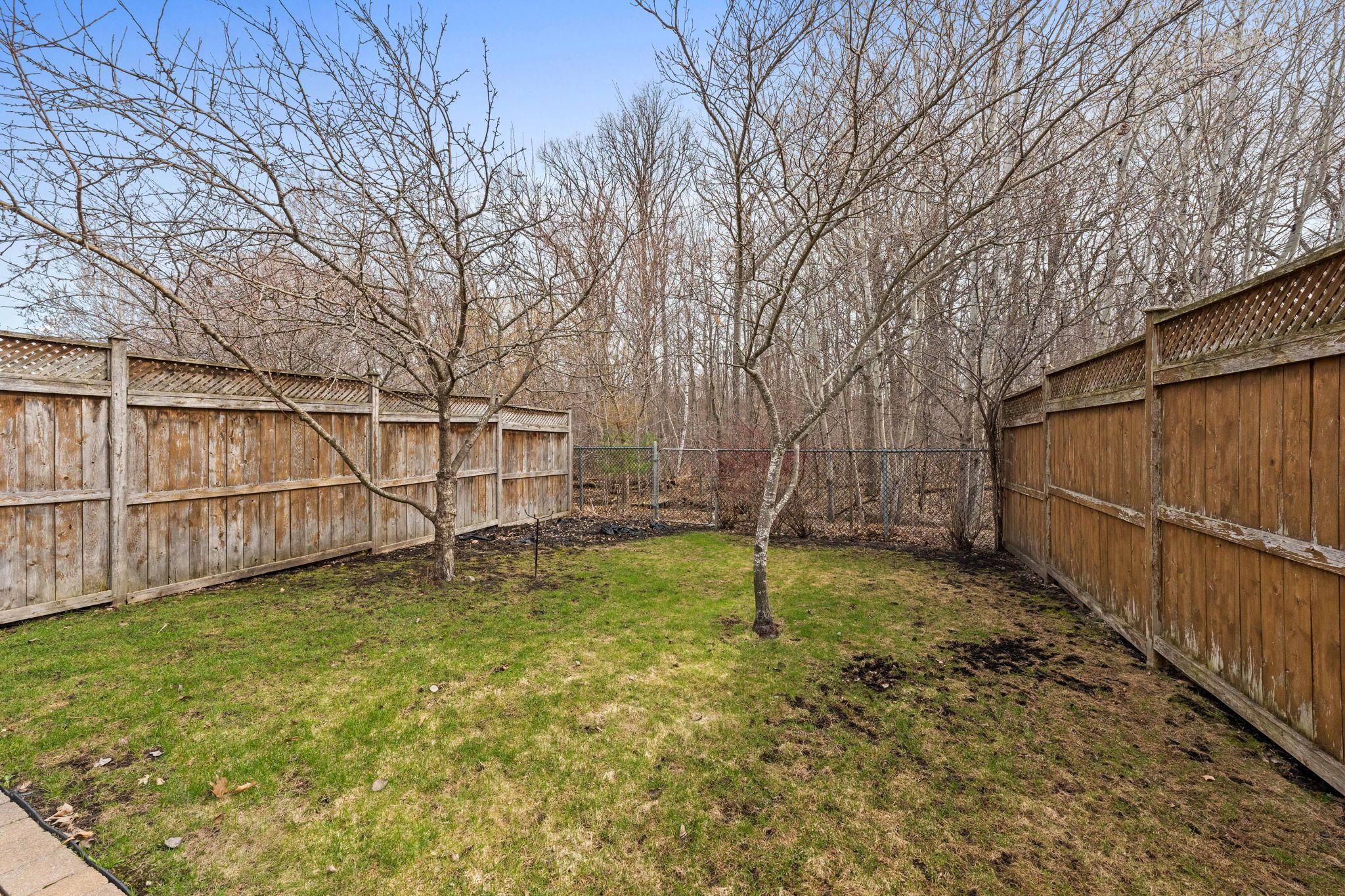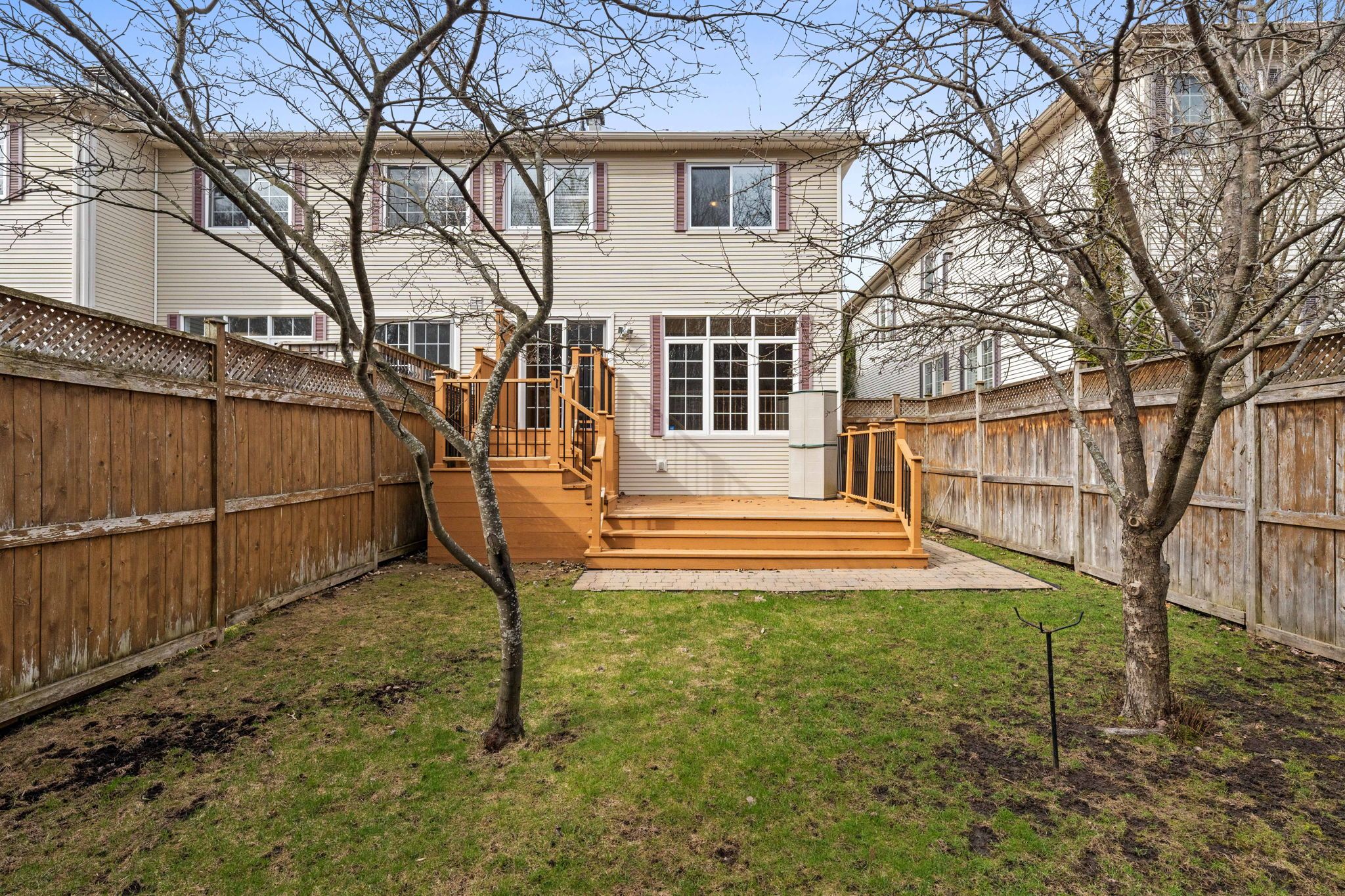 • Fully fenced backyard with a two-tiered deck and access to green space.