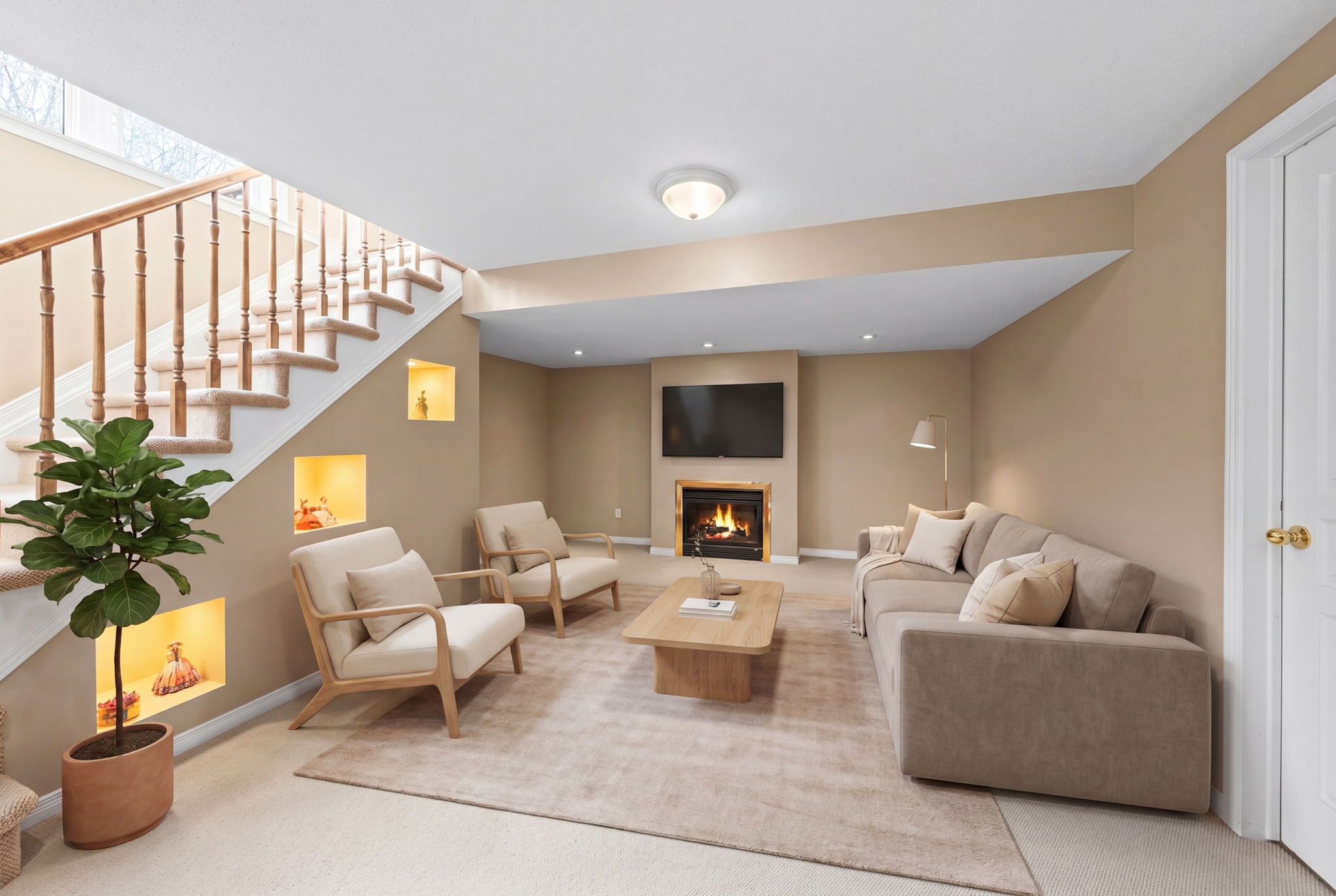 • Finished lower level with a large recreation room and a gas fireplace.