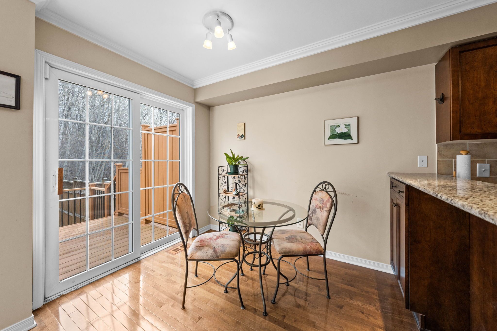 • Eat-in kitchen with granite countertops and direct access to the backyard.