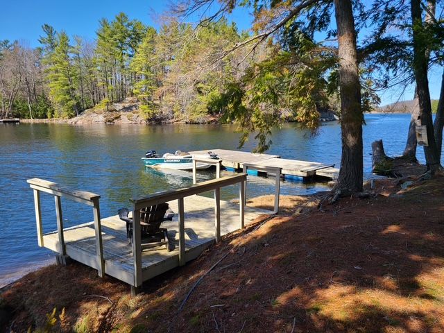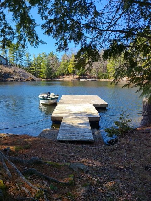 This 4-season cottage on picturesque goods island offers a peaceful waterfront setting on bob's lake, just a quick one-minute boat ride from marina lane. Built in 2009, the property features approximately 165 feet of clean shoreline and open west-facing views that deliver beautiful sunset skies right from the dock. The cottage spans 576 square feet and includes a comfortable main bedroom plus a loft sleeping area, making smart use of space for family and guests. A separate 10x10 bunkie provides extra accommodation, while a new 8x10 shed adds practical storage. Inside, the cottage is equipped for extended stays with a washer and dryer, electric heat, and a pellet stove to take the edge off cooler evenings. Modern essentials are covered with strong internet and cell service, along with a lake water system featuring uv filtration. A composting toilet offers an environmentally conscious solution for island living. Bob's lake is well known for its fishing, with bass, walleye, and lake trout, and offers over 160 islands and roughly 740 km of shoreline to explore. The location strikes a great balance between seclusion and accessibility, about an hour north of kingston, southwest of ottawa, and only 20 minutes to westport for shops, dining, and essentials. This is a water-access property with no road access. A deeded right of way leads to the marina boat launch, where convenient parking is available.