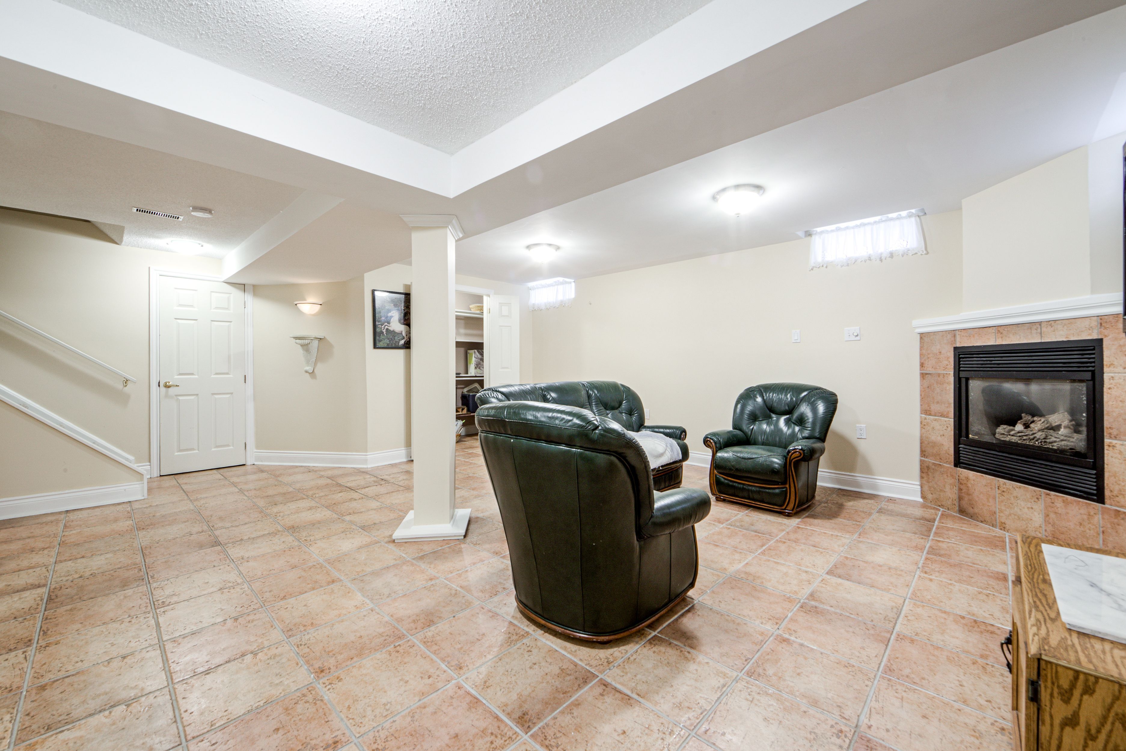 • Finished basement with a family room and its own fireplace.