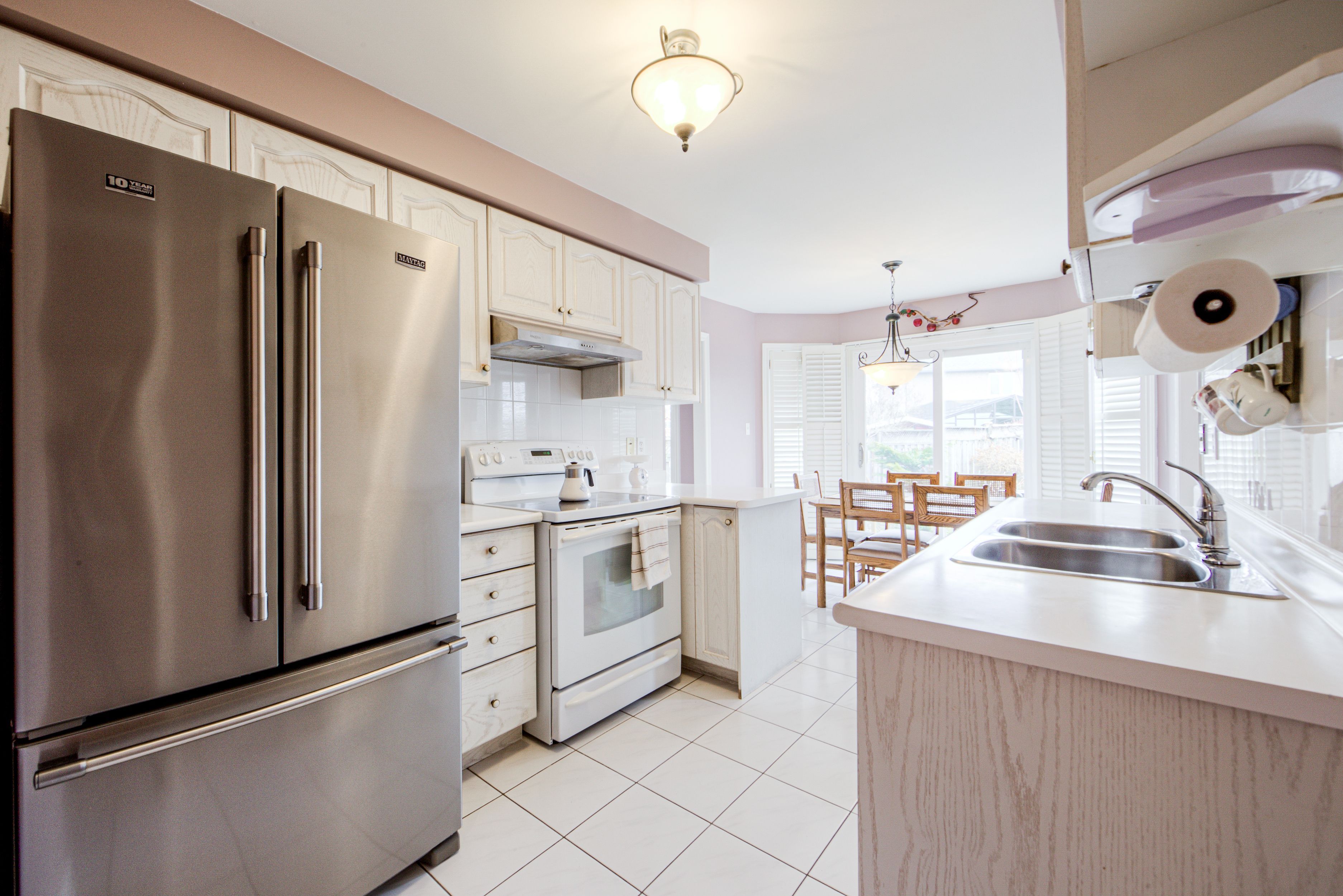 • Good-sized kitchen with breakfast area and backyard access.
