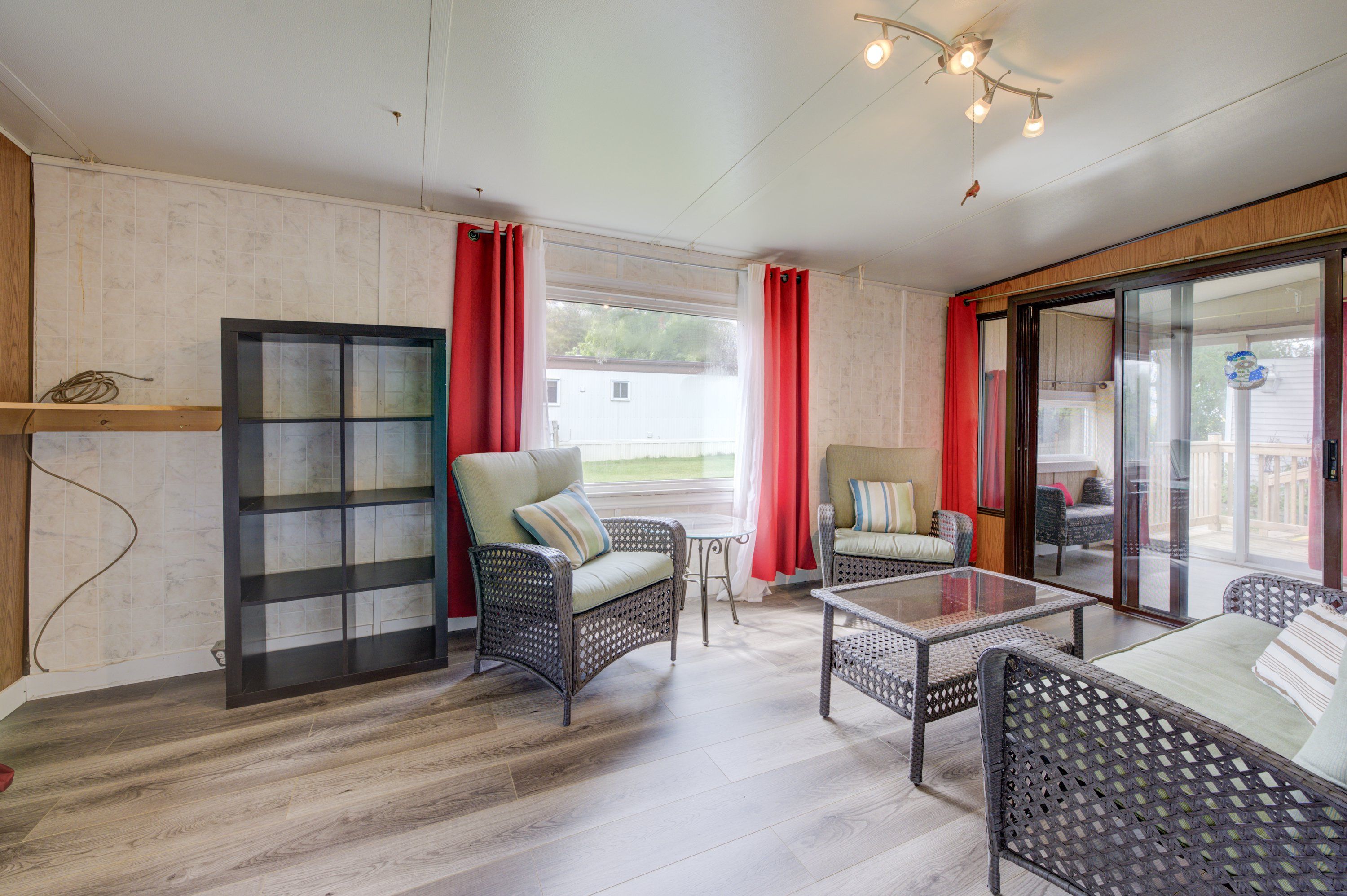 Enjoy easy, affordable year-round living in the welcoming spring valley parkbridge community. This well-cared-for 2-bedroom mobile home offers a bright, open-concept layout that feels comfortable and inviting from the moment you step inside. A standout feature is the two versatile 3-season rooms-ideal for morning coffee, casual entertaining, or creating your own hobby space-plus a handy garden shed for additional storage. Life at spring valley is about more than just the home-it's about the lifestyle. With a friendly, community-focused atmosphere, you'll appreciate the social connections and shared amenities that make it easy to stay active and engaged. Surrounded by peaceful countryside yet just minutes to mount forest, this location offers the best of both worlds. Seasonal, resort-style amenities include a non-motorized lake, heated pools, mini golf, and a sandy beach-perfect for enjoying the warmer months close to home. If you're looking for low-maintenance living in a relaxed, community setting, this is a great opportunity to settle in and enjoy all that spring valley has to offer.