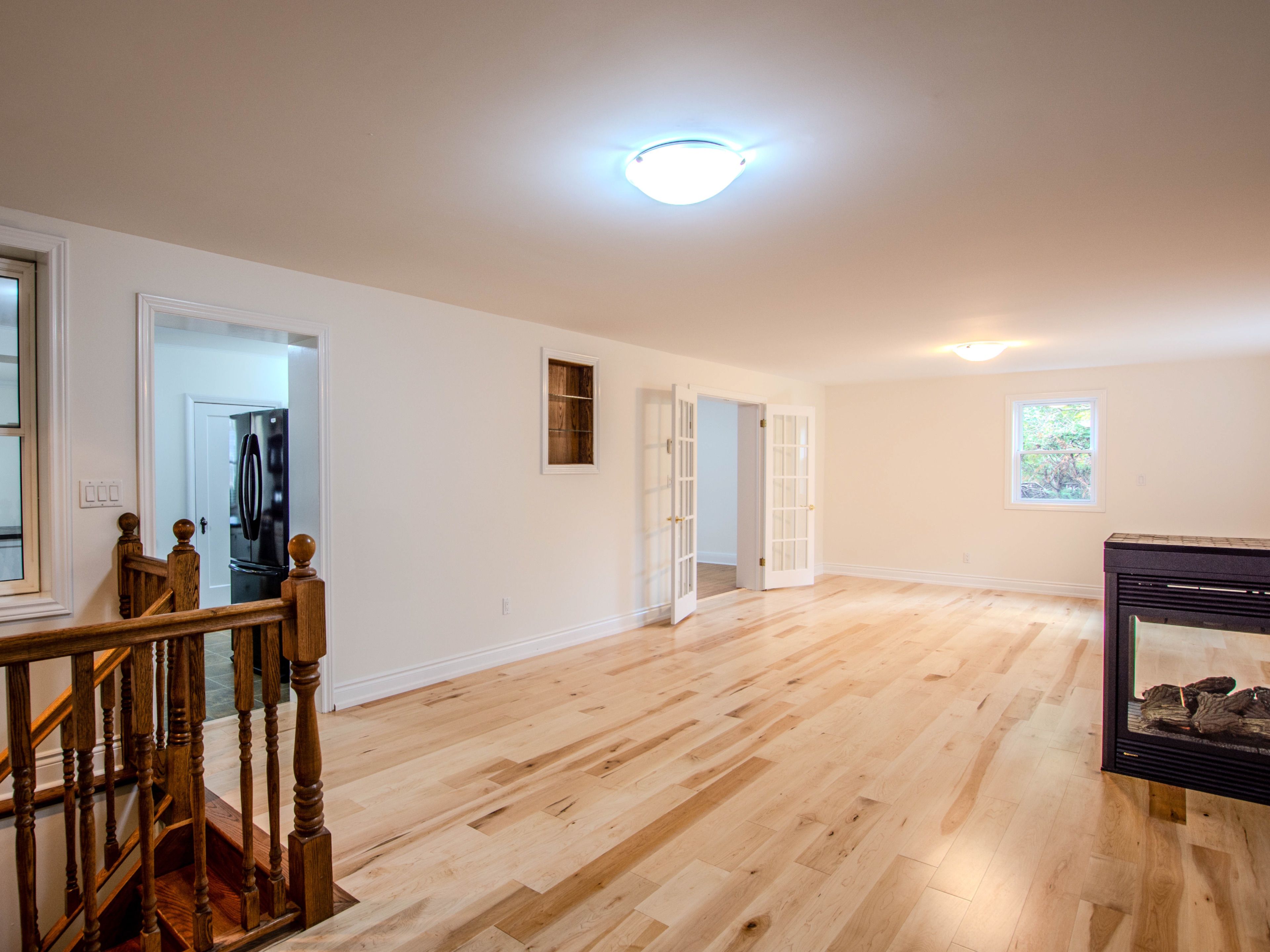 • Bright family room with a unique three-sided gas fireplace for warmth.