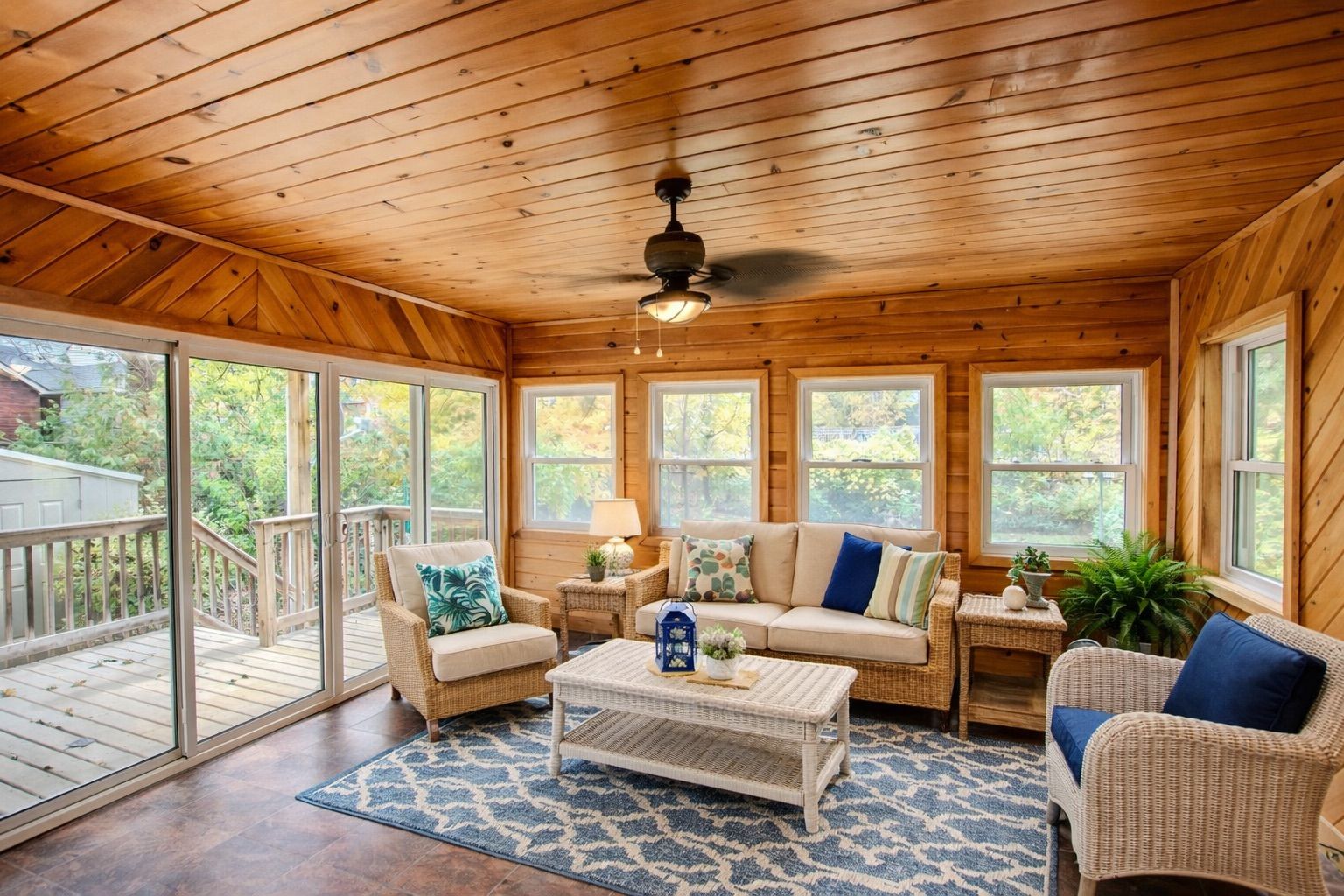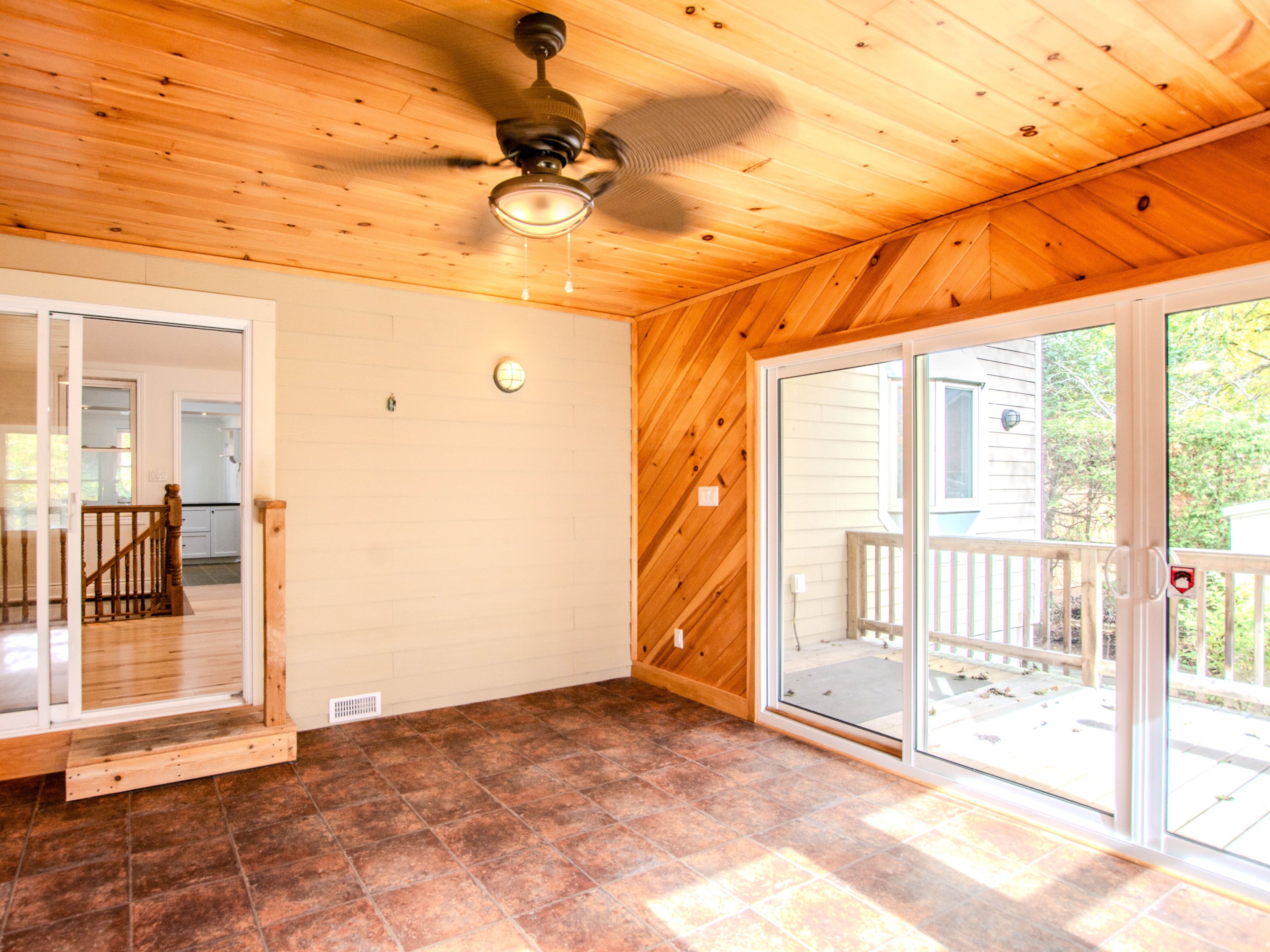 • Heated sunroom offers year-round enjoyment and views of the backyard.
